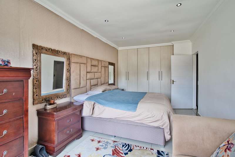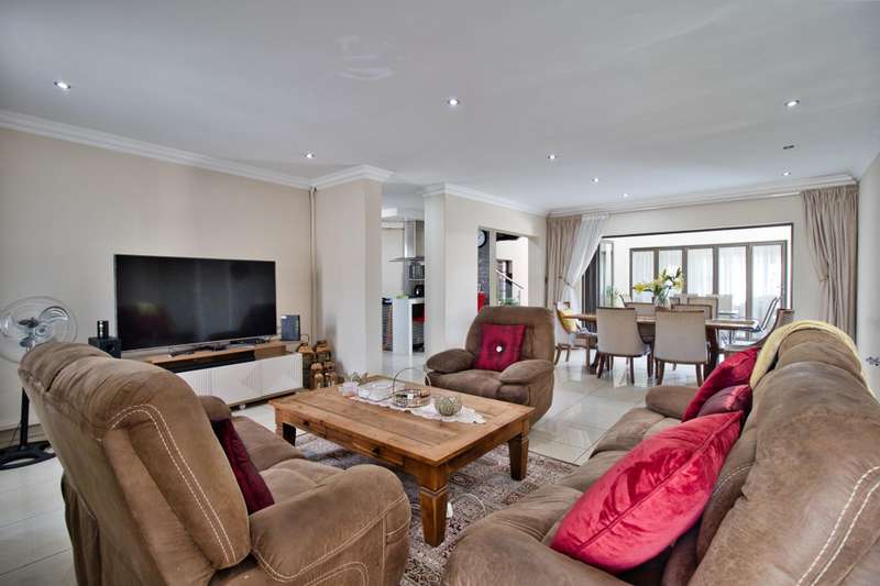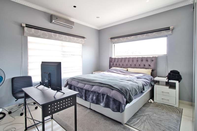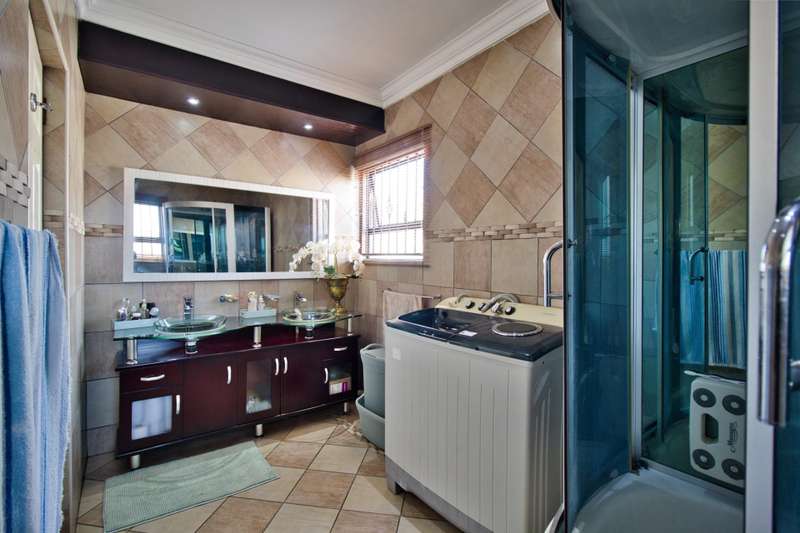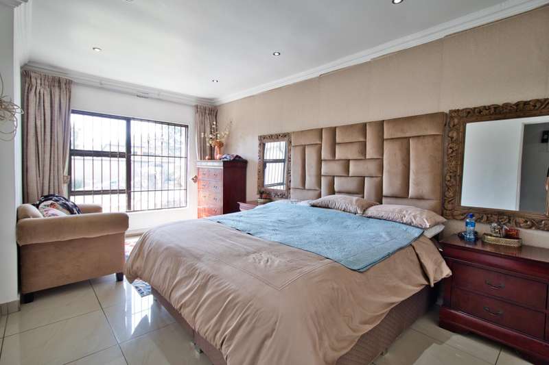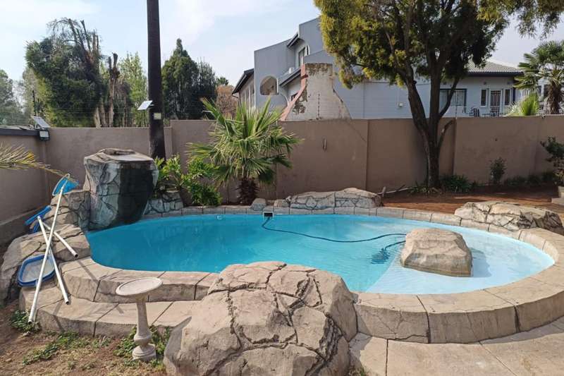 CHARMING EXQUISITE AND ELEGANT 5 BEDROOM DOUBLE STOREY HOME FOR SALE IN LAKEFIELD Situated in the boomed-off area of Lakefield Ext 21, this magnificent, modern home offers it all : - 5 Modern, spacious bedrooms, of which 2 are situated on the ground floor and 3 upstairs. The main bedroom is upstairs, with walk-in -closet, private balcony, beautiful en-suite bathroom, etc, etc. One of the bedrooms can be utilized in a gym (which is currently the case) with large windows providing natural light. - 4 Modern bathrooms, of which 2 are en-suite. - As you enter you are greeted by a small entrance hall with large windows, flooding the home with light. - The lounge has stacker doors and a coffee station leading out onto an established garden and rock-featured pool. - Open plan dining room, family room and Gourmet Mastercheff kitchen, with scullery, also forms part of this stunning property. - 4 Car garage with stacker doors inside and a glass garage door is also available. - Solar. - Underfloor heating. - The property is extremely well protected by automated gate, electric fencing, alarm system, etc, etc. Close to all amenities, such as Shopping Malls, Schools, Highways, Hospital, OR Tambo airport, Sports fields, etc, etc. A once in a lifetime opportunity !! Don?ÇÖt Miss Out !!! Phone NOW for a viewing !!