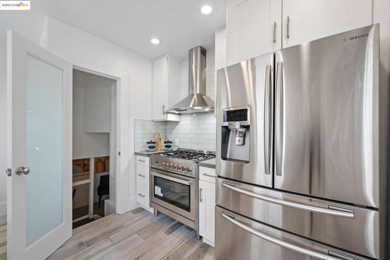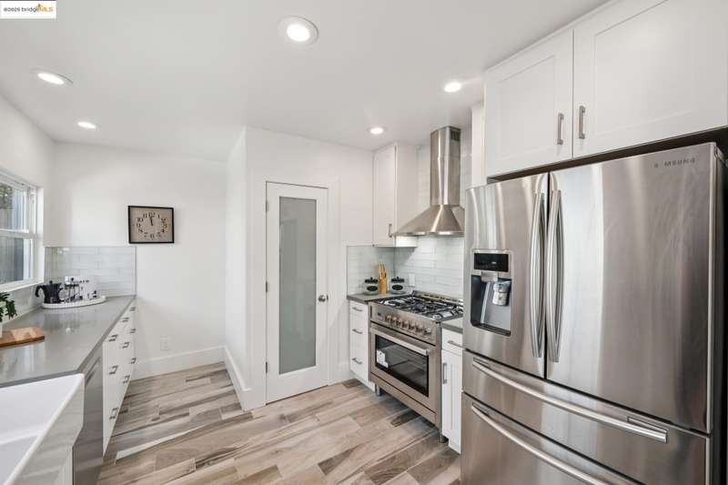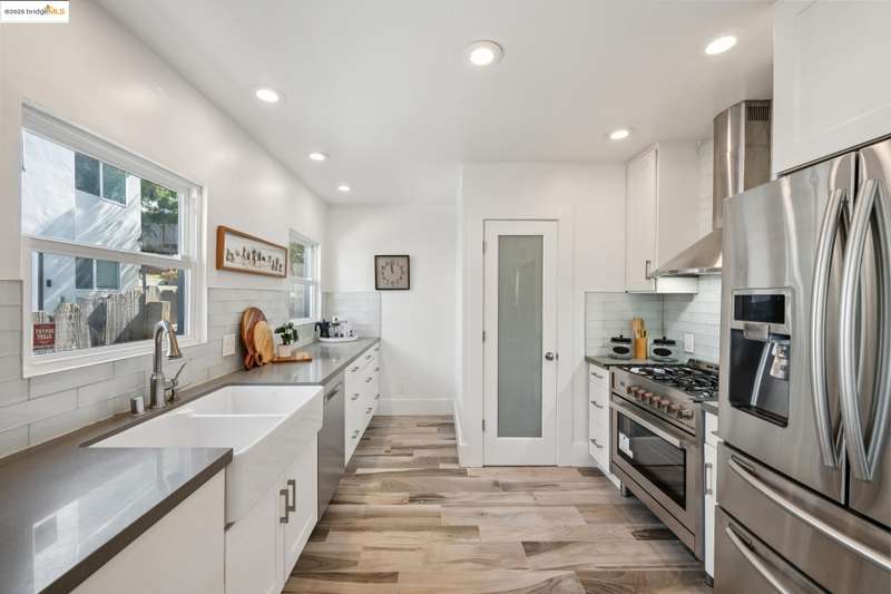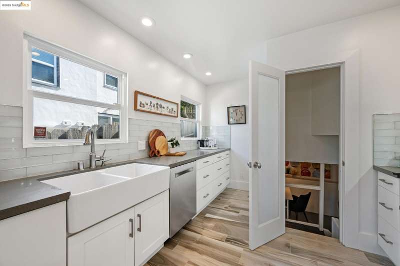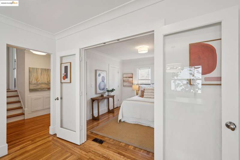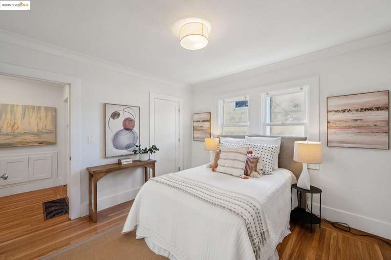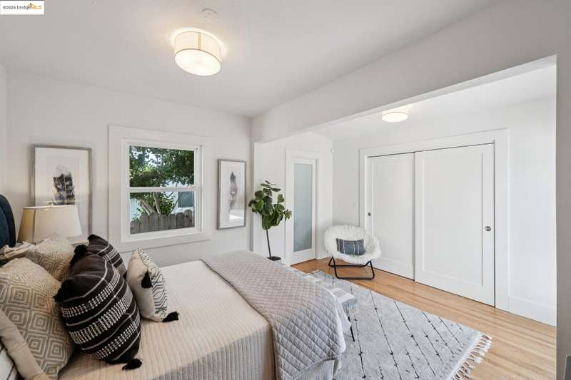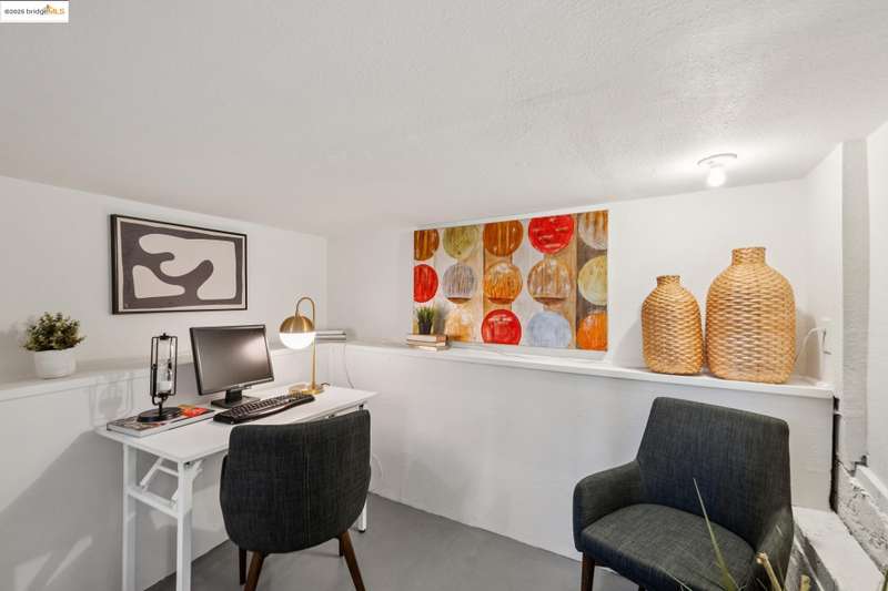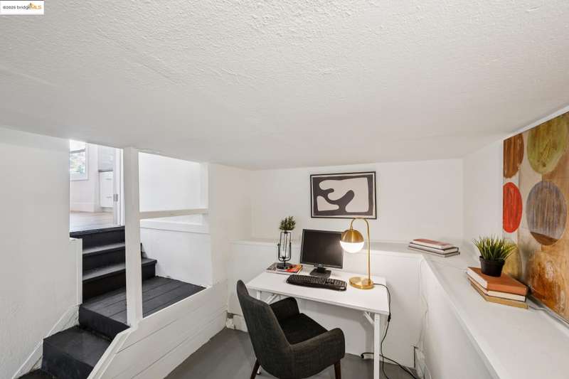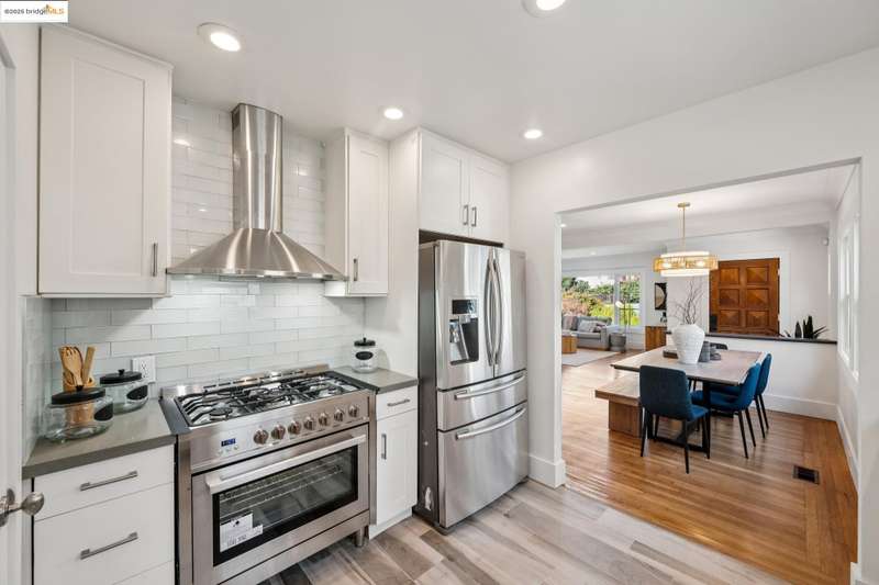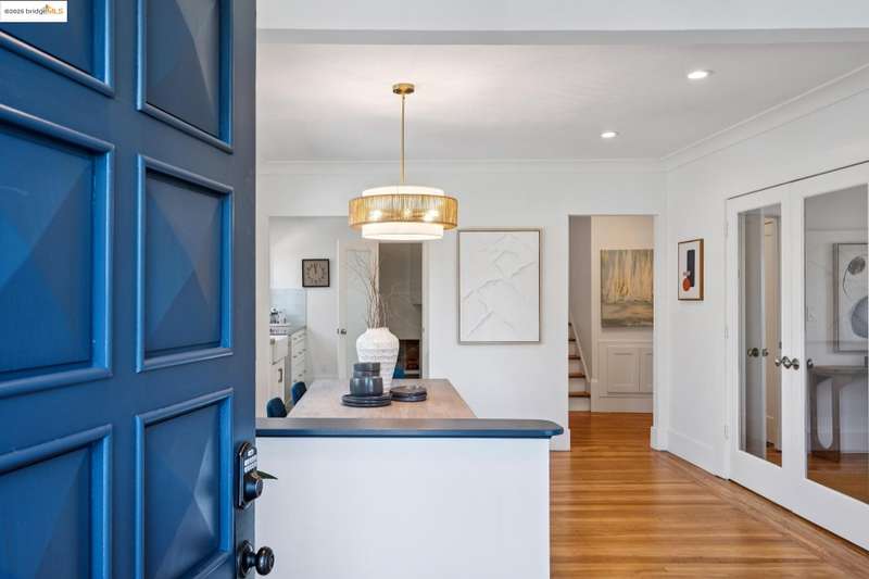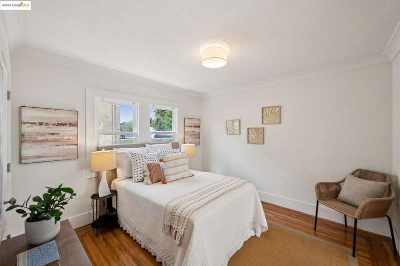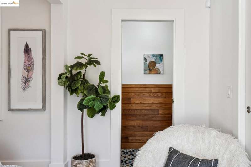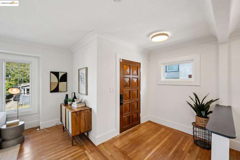 Nestled among the serenity of Oakland’s Maxwell Park neighborhood, you’ll find a charming, updated, split-level c.1925 home at 3136 Kingsland Avenue. Three bedrooms and 1.5 bathrooms grace this home. Add to that a sunny, updated kitchen, opening to a dining and living room, with brick fireplace and a front window overlooking the neighborhood. Hardwood floors glow throughout the home, while dual-pane windows add to the peacefulness within. Both renovated bathrooms feature cheerful tile work. A laundry room is tucked away on the ‘mezzanine’ level off the kitchen, opening to the side year, while another bedroom and the primary bedroom suite are located a few steps up, with French doors to the back deck. The backyard oasis features a redwood deck shaded by a pergola with retractable awning, with loads of space for hosting family gatherings and guests… or peaceful moments of morning coffee and yoga, or evening meals. Step from that into an urban garden, with mature fruit trees and raised bed gardens. So unexpected, and lovely for indoor/outdoor entertaining! A one-car garage with loads of storage completes the picture. Move-in ready and minutes away local shops, restaurants, parks, theaters, art galleries and convenient access to 580, 13, and public transportation. Home sweet home!