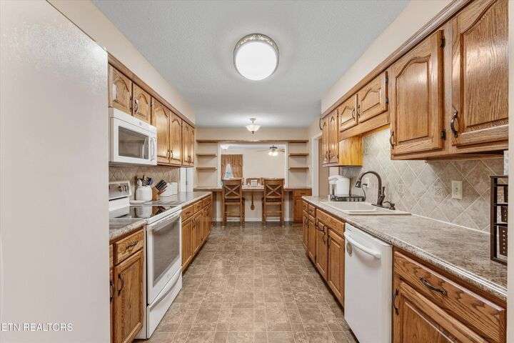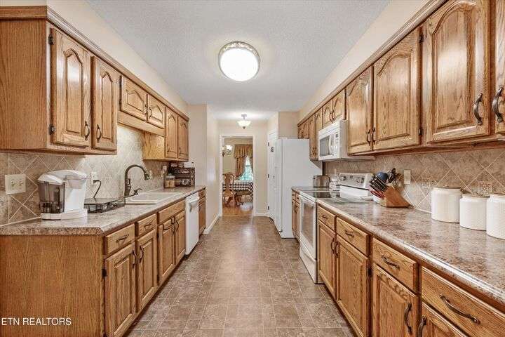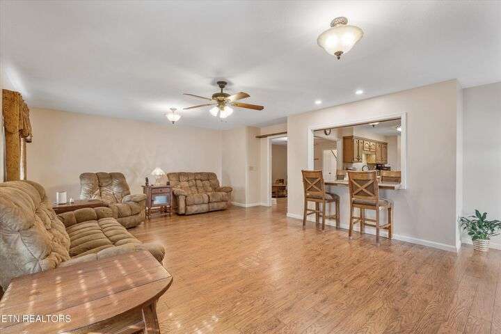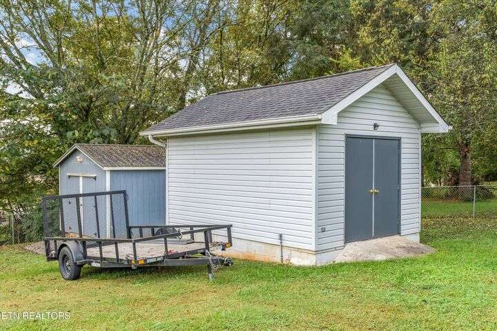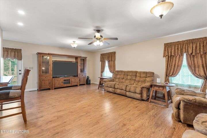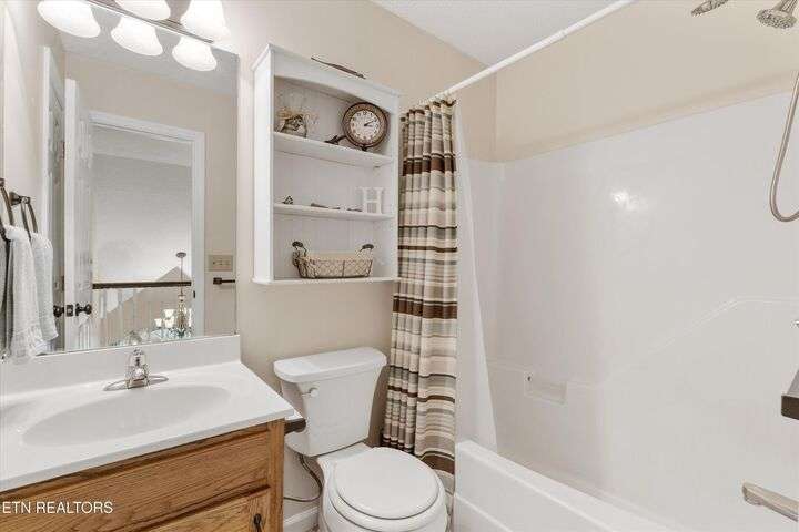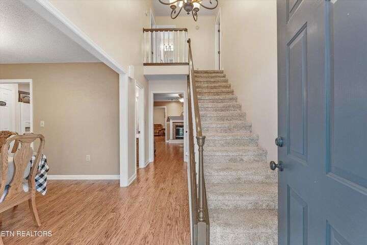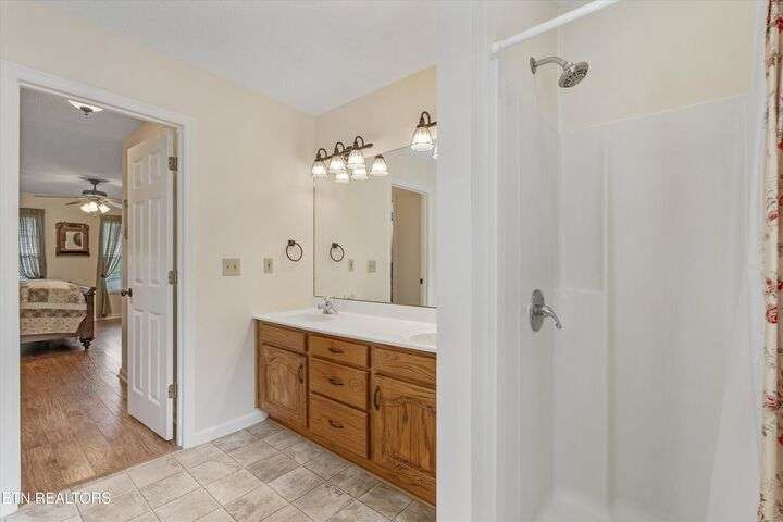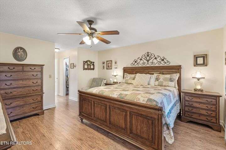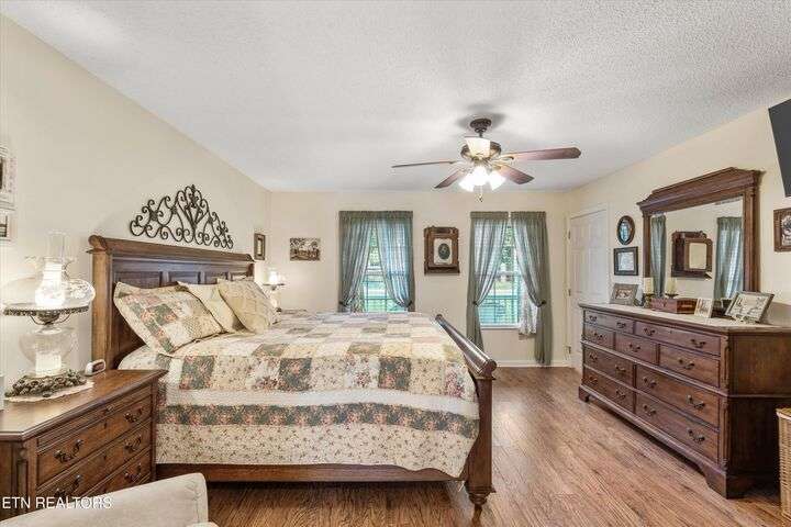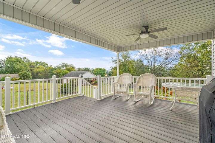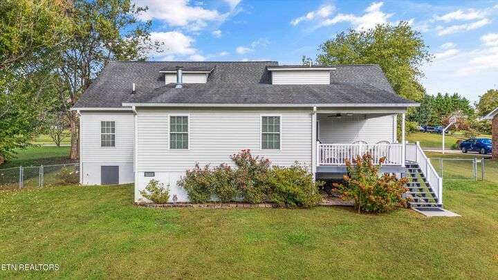 Welcome home to this beautifully maintained property in Lenoir City, offering exceptional curb appeal on a level, half-acre lot. Built in 1995 and showcasing approximately 3,000 square feet of thoughtfully designed living space, this home has been meticulously cared for from top to bottom. The exterior charm is enhanced by a welcoming front entry, mature landscaping, and a classic design that feels both timeless and inviting. Step inside to discover an immaculate main level featuring engineered hardwood flooring and a spacious layout that includes two separate living areas, a cozy gas log fireplace, a formal dining room, and a powder bath. The kitchen offers warm oak cabinetry and plenty of counter space for meal prep and entertaining. The main-level primary suite provides comfort and convenience, complete with a jetted tub, walk-in shower, and double vanity. Upstairs, you'll find two generously sized bedrooms and a full bath, offering ample space for family or guests. A secondary staircase leads to the upper-level bonus room—perfect as a fourth bedroom, media space, or home office—featuring its own full en suite for added flexibility. Step out back to enjoy a covered Trex deck with dual ceiling fans, ideal for relaxing or hosting gatherings year-round. The fully fenced backyard is beautifully maintained and includes a large storage shed for all your lawn and garden needs. B-Dry system in crawlspace. The two-car garage offers extra depth, providing plenty of room for storage or hobbies. Located in a peaceful Lenoir City neighborhood, this home offers a blend of comfort and convenience with nearby access to schools, shopping, and commuting routes. With its pristine condition and flexible floor plan, this home truly has something for everyone.