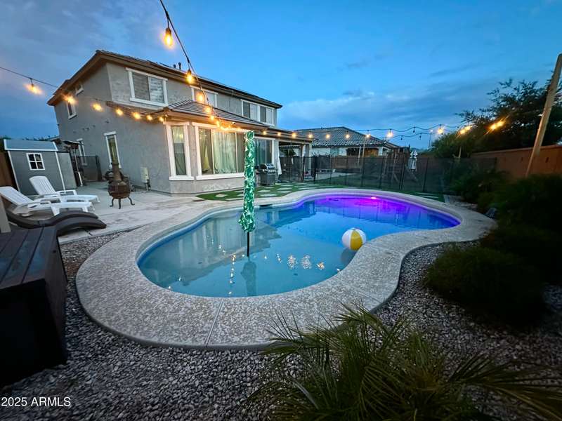 ASSUMABLE INTEREST RATE OF 2.75%! SEE PVT REMARKS This is the one!! Stunning 5-bedroom, 4.5-bathroom home featuring two spacious master suites, perfect for extended families or guests. The main level showcases real wood flooring, while the upper level offers comfortable carpeting. The kitchen is designed for both beauty and function, with stone countertops and custom cabinetry throughout. Additional features include a bonus room, a dedicated office, and a cozy lodge area, providing flexibility for work and relaxation. Outside, enjoy a private backyard oasis complete with a pool, real grass, and beautiful mountain views. This home blends comfort, quality, and space in a serene and scenic setting. A must-see for those seeking both luxury and practicality.