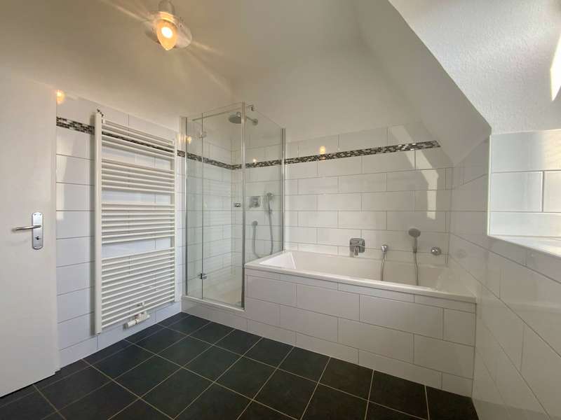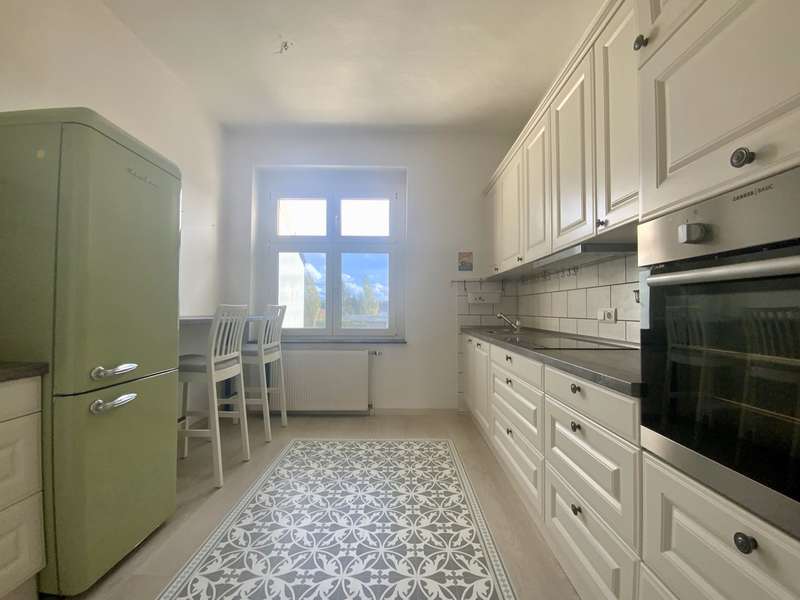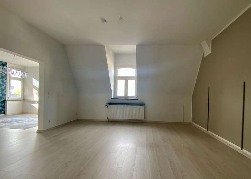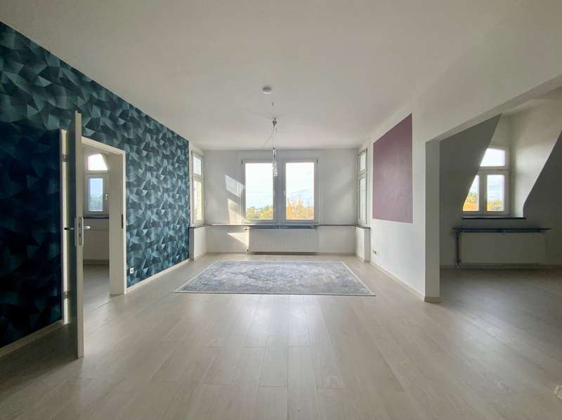 This spacious top-floor apartment is located in a building constructed in 1903 and offers you approx. 117 m² of living space spread over four rooms. It has been extensively modernized in recent years and thus combines the charm of an old building with modern living comfort. The apartment is ideal for families or couples who need additional space for a study or guest room. Two bedrooms offer enough space for individual design. High ceilings and few sloping ceilings create an open feeling of space and offer plenty of room for furniture. The bathroom was renovated in 2014 and has a contemporary design. It is equipped with a bathtub, a separate shower, a large window and a modern towel radiator. The high-quality fitted kitchen by Alma, which was also installed in 2014, invites you to cook and linger. The electrical appliances, free-standing fridge and breakfast bar are included in the price. The gas heating system installed in 2023 ensures efficient heating. The top floor ceiling was insulated in 2022, resulting in a lasting reduction in heating costs. This measure is not yet included in the current energy performance certificate from March 2022. The apartment has an outdoor parking space and a cellar room for exclusive use. Another advantage is the washing machine space halfway up the stairs, which is also for your exclusive use. You will find additional storage space in the attic, which serves as a storage area. There is also the option of adding a balcony to the inner courtyard to further increase living comfort. The apartment's location allows you to reach all everyday facilities quickly. Stores, schools and public transport are in the immediate vicinity, making everyday life pleasant and uncomplicated. You can also enjoy a sweeping view over the city and leave the hustle and bustle of everyday life behind in the quiet top floor. The apartment is part of a pleasant community of owners with a total of four parties and is professionally managed. As at 31.12.2024, the maintenance reserve amounted to around € 11,300. There are no tenancies, the apartment is available immediately. Interested? Then arrange a viewing appointment now to see the quality and benefits of this apartment for yourself. We look forward to seeing you!