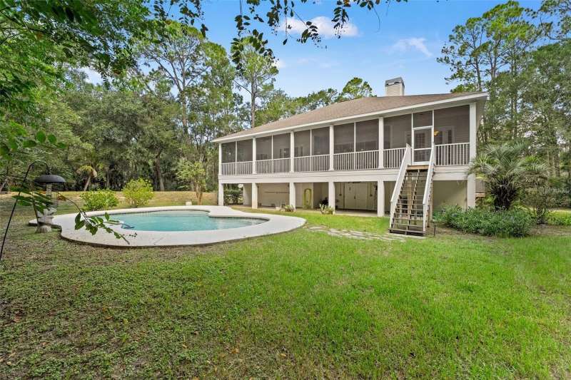 Welcome to this 3-bedroom, 2.5-bath pool home nestled on 6 private acres in the quaint little town of Yankeetown right across the street from Gulf Hammock Preserve. It offers quick access to the Withlacoochee River and the Gulf of America, this property is perfect blend of relaxation and adventure Step inside to an open floor plan with 10-foot ceilings upstairs and downstairs, rich hardwood floors, and a cozy fireplace. The functional kitchen is a chef’s delight, featuring a propane cooktop and plenty of room for gathering and entertaining. Enjoy Florida living at its finest on the expansive screened back porch, overlooking the sparkling pool and the abundance of wildlife that surround the property. Additional features include a 2-car garage with flexible space for hobbies or entertaining, two storage sheds, and a gated driveway offering both privacy and security. From your doorstep, embrace the outdoor lifestyle-spend your days boating, fishing, kayaking, or snorkeling with manatees. Explore the nearby state forest with miles of scenic trails or set out for a day on the Gulf waters. Easy access to 4 public boat launches to Withlacoochee River and A public dock and beach area with BBQ area right on the Guld of America within 2 miles from the home. This property is the perfect retreat- whether you’re relaxing at home or heading out for a day on the water.