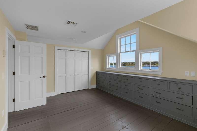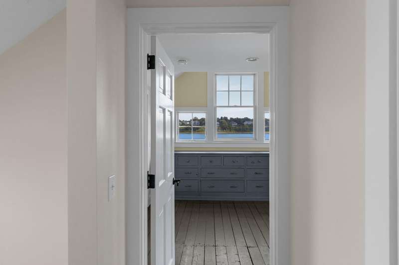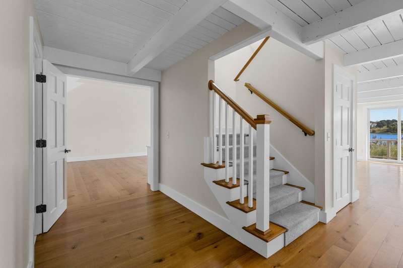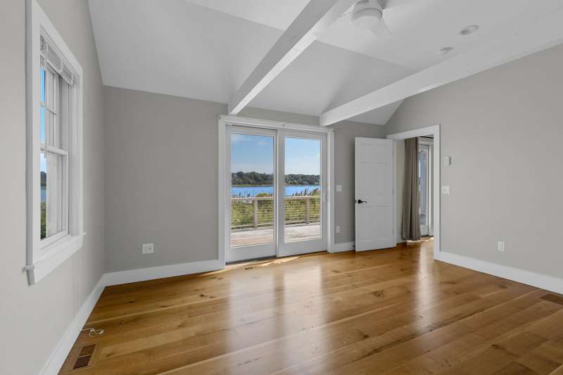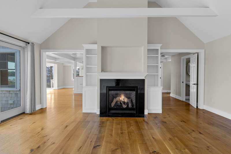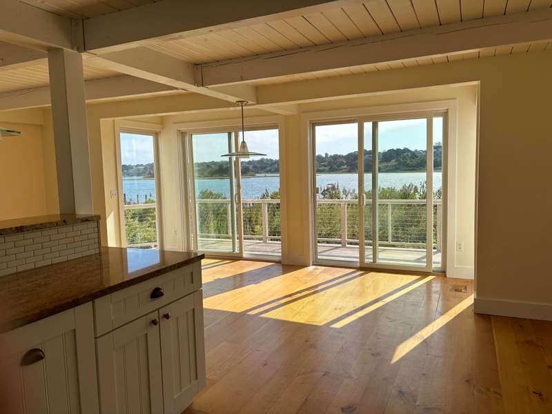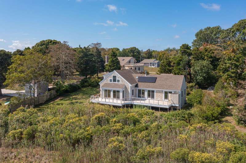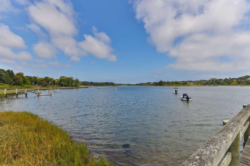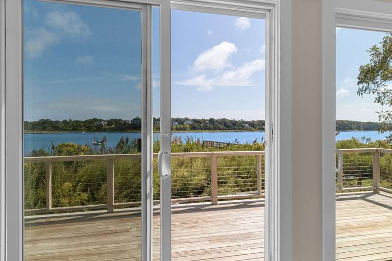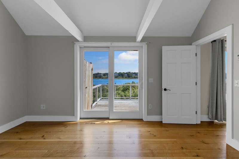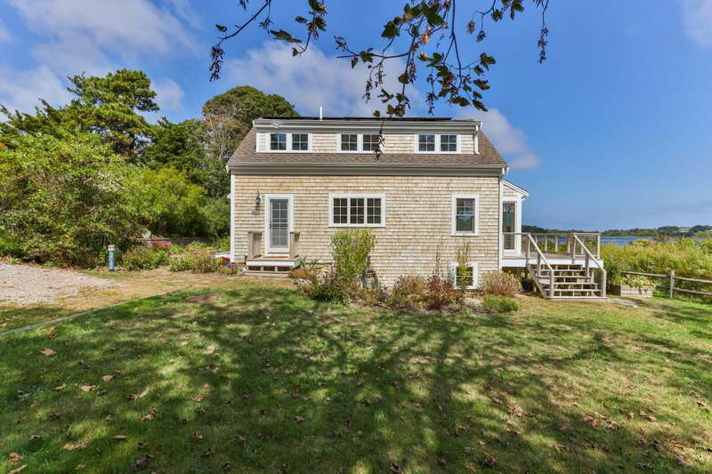 Embrace waterfront living, located on saltwater, this custom home offers a lifestyle defined by nature's beauty. Its relaxing, spacious and clean design features natural elements, an abundance of sunlight, and captivating water views from most every room. This home offers unrivaled access to a host of saltwater activities. Spend your days sailing, boating, kayaking, or paddleboarding right from your doorstep. Canoe over to Hopkins Island for various wildlife. 5 sliding glass doors span the back of the house, creating sun drenched natural light. Crisp white beamed ceilings, beautiful wood floors, a swanky kitchen is equipped with granite countertops, stainless appliances, a convenient pantry and space for your culinary pursuits. This is an eco-friendly yet efficient home with owned solar panels, heat pump hot water, and saltwater breezes all summer long. This exceptional property has natural gas heat and a gas fireplace, with central air providing effective climate control all year roun