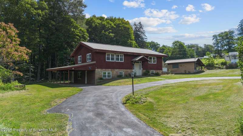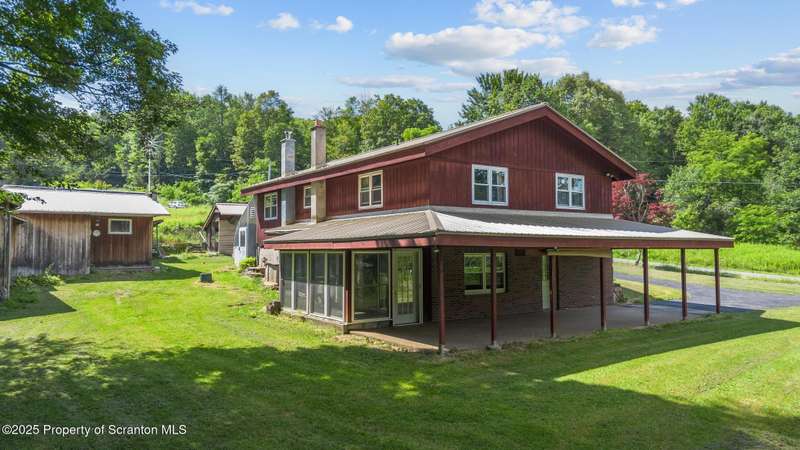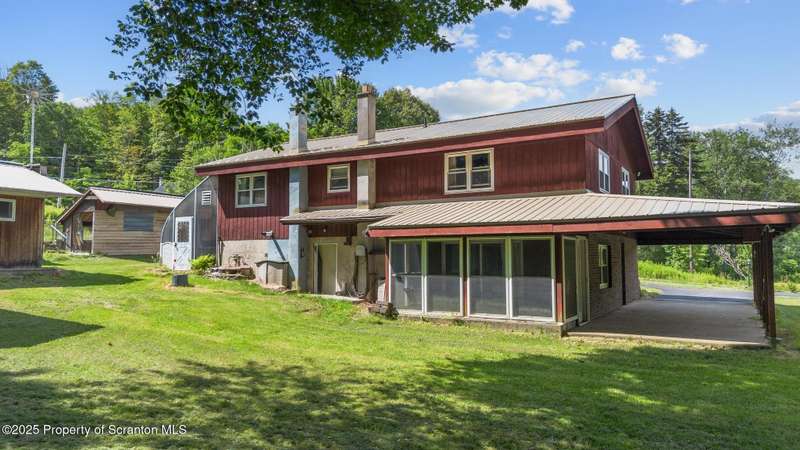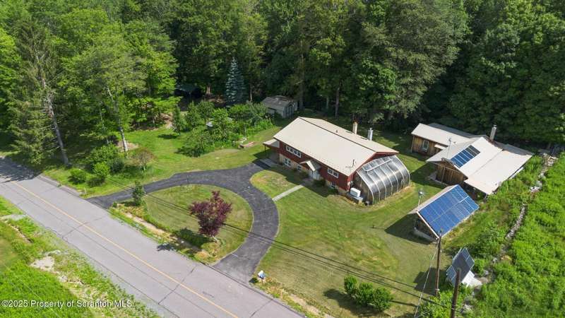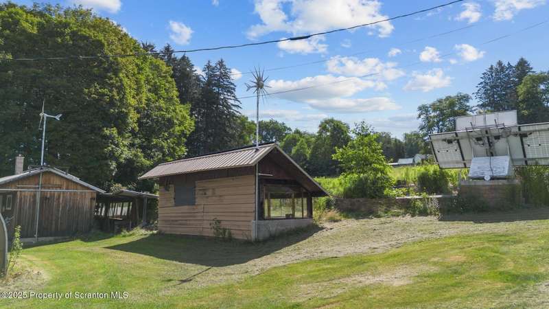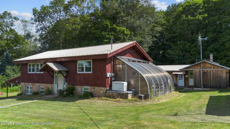 Two story offers contemporary lines with tongue and groove wood ceilings, eat-in cherry kitchen with abundant cabinets and pantry storage. Two full bathrooms and four bedrooms each with double closets. Inviting sunroom and a climate controlled greenhouse is perfect for the organic gardener. Covered patio. Numerous fruit trees and screened gazebo to spend summer evenings. Two car tandem carport, pole style and a paved circular driveway. Potential to live off the grid with green energy, wind turbines, solar panels, and Generac whole house generator. Calling contractors or woodworkers an out building is complete with workshop with a sawdust vacuum unit, office and a full bathroom. Possibility of converting to in-law suite unit. Very convenient location for commuting.
