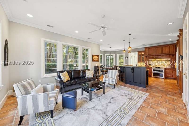 Step inside and feel instantly at home in this beautifully designed home offering the perfect blend of space, flexibility, and character that today's buyers are looking for. Featuring 4 bedrooms, 4.5 baths, a private office, bonus room, and a 3-car garage, this thoughtfully planned home delivers comfort and function in every corner. The spacious gourmet kitchen opens to a charming family room, creating an ideal setting for entertaining or everyday living. Impressive 20-foot ceilings in the living room, custom built-ins, expansive storage, multiple pantries, and walk-in closets showcase the meticulous attention to detail from the collaboration between the owner/designer and a premier local builder. Enjoy long, picturesque views of the 14th hole of The Indigo Run Golf Club with protected wooded vistas beyond. Updates include a new roof in 2023, fresh interior paint, new Café Series oven and dishwasher, custom built-ins in the primary closet, and a landscaping refresh for enhanced curb appeal. Nestled in the highly sought-after Golf Club community of Indigo Run, this home offers both privacy and convenience - 10 minutes to shopping, dining, and Hilton Head's beautiful beaches. Discover a home where craftsmanship, comfort, and location come together seamlessly.