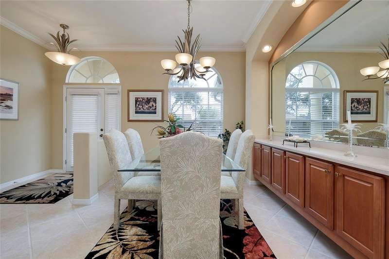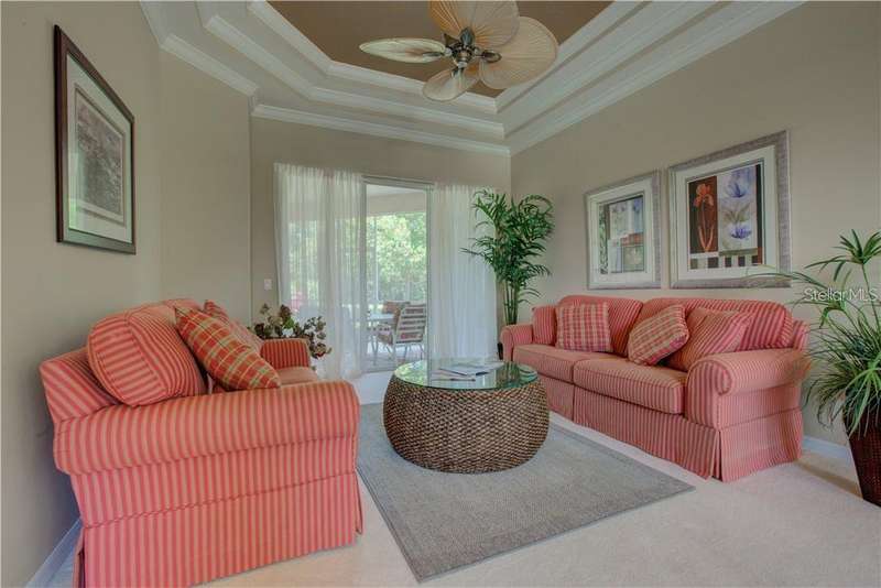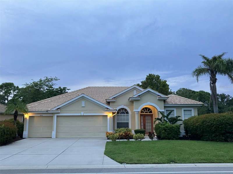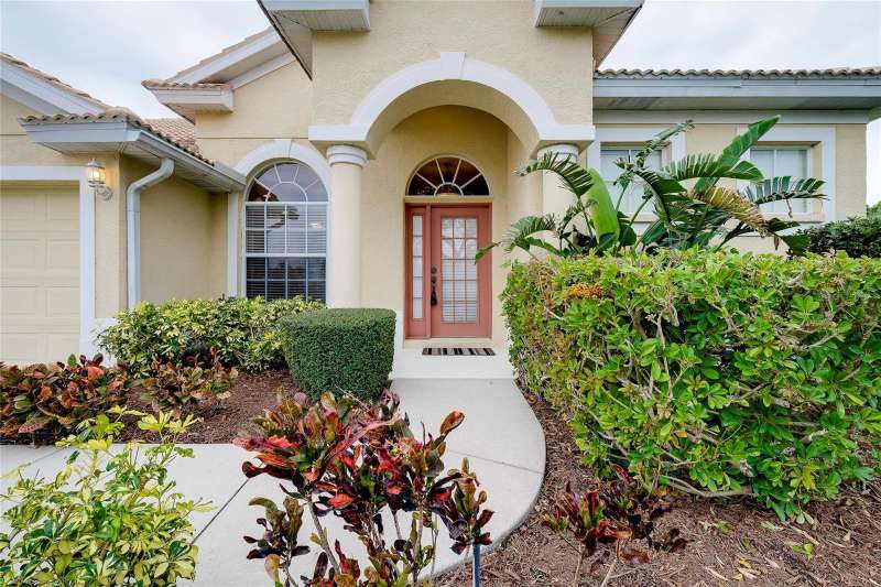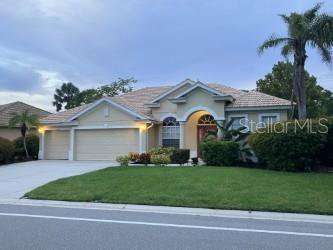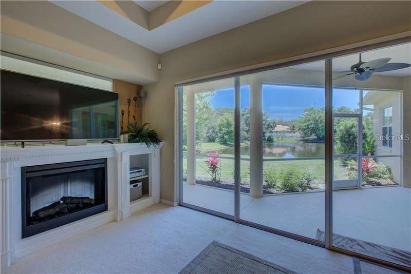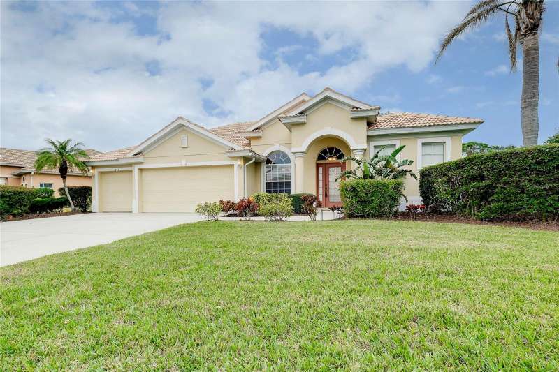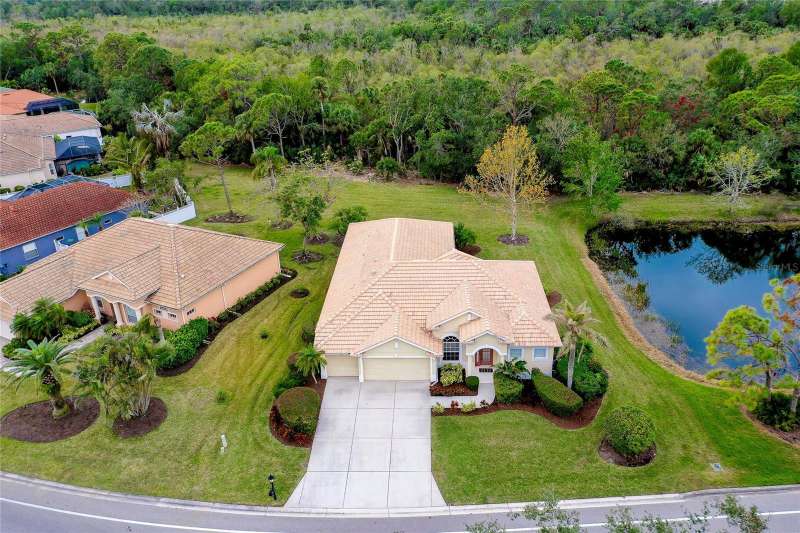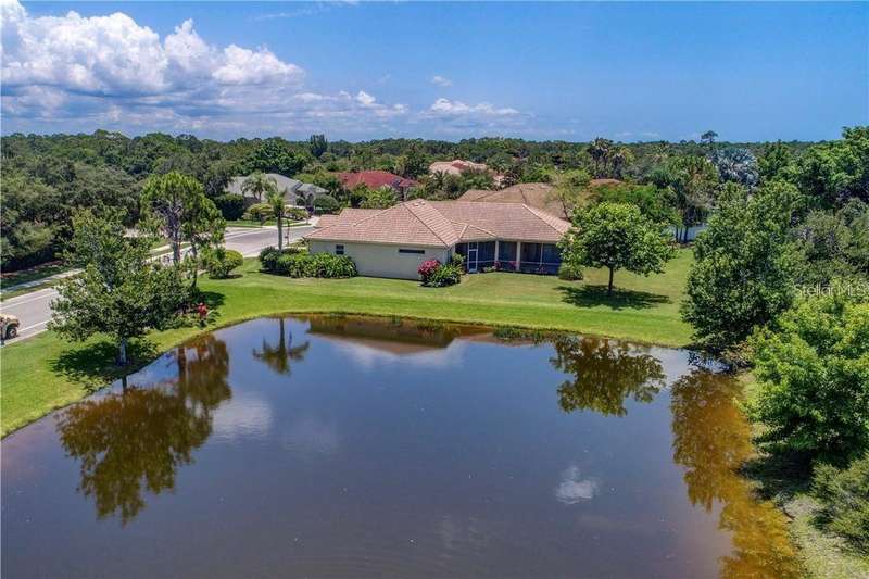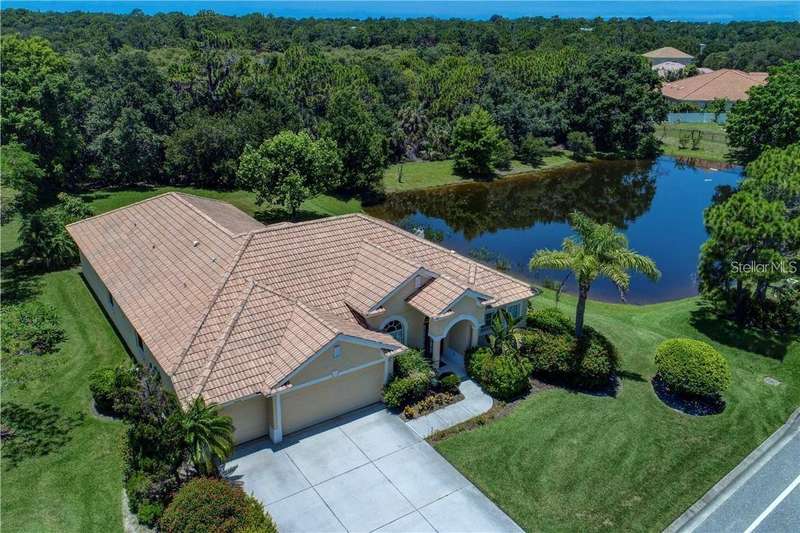 Under contract-accepting backup offers. Built by Rutenberg Homes, this residence offers high tray ceilings and a smart, open layout. The formal living and family rooms, along with the en-suite primary bedroom, open to the lanai. The dining room features custom built-ins, two guest bedrooms share a bath, and a private in-law suite/office includes its own bath and lanai access. The kitchen, with newer appliances, a breakfast bar, and an eat-in nook, connects to the family room with an electric fireplace. The lot backs to a wooded preserve with a pond on one side. A heated community pool is just a 3-minute walk away. Additional features include a drilled well for sprinklers, exterior taps, a three-car garage with EV charger, and new central heating/AC (March 2025). Walk to Pine View School for the Gifted, close to the Legacy Trail, Gulf beaches, Oscar Scherer State Park, and boating. Optional Turnkey. Seller will consider all offers.