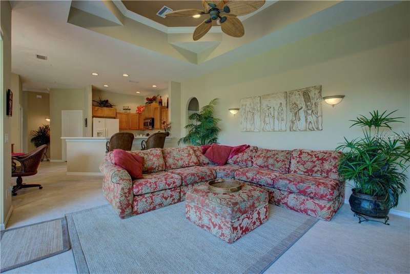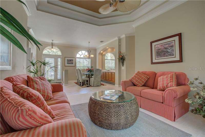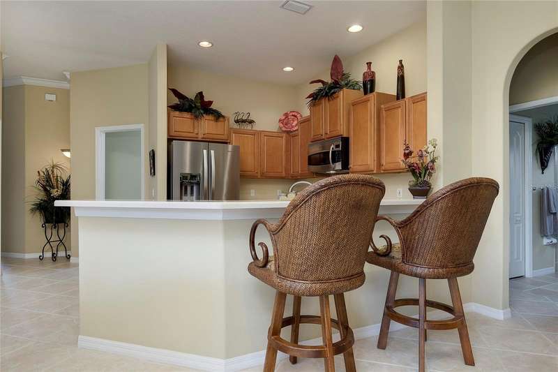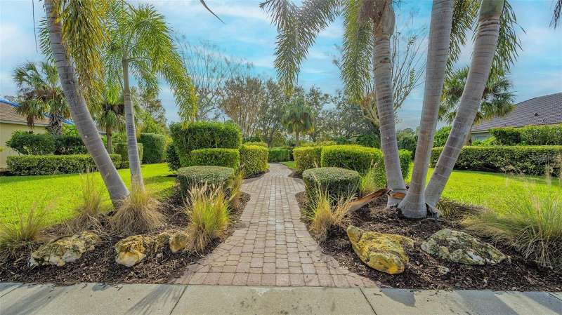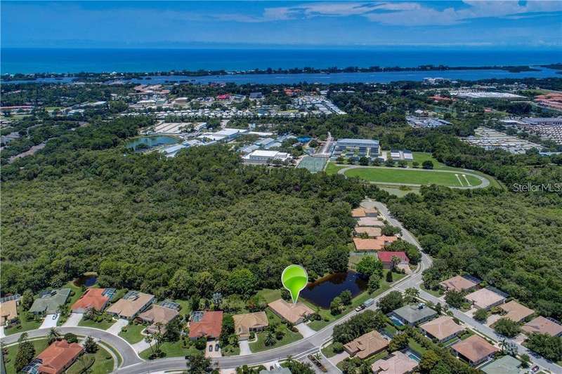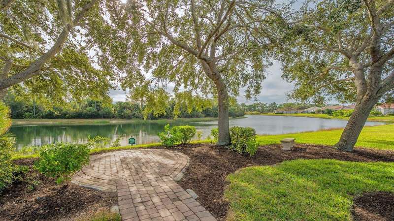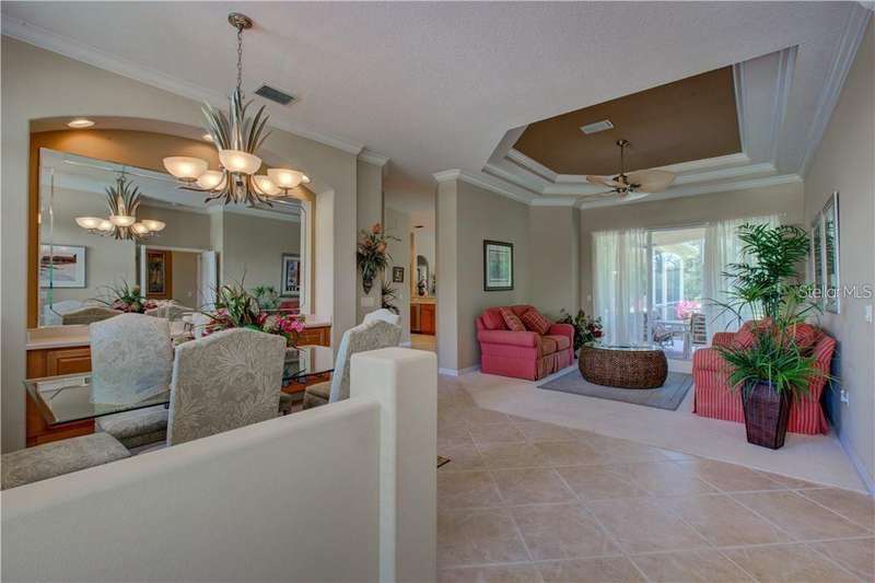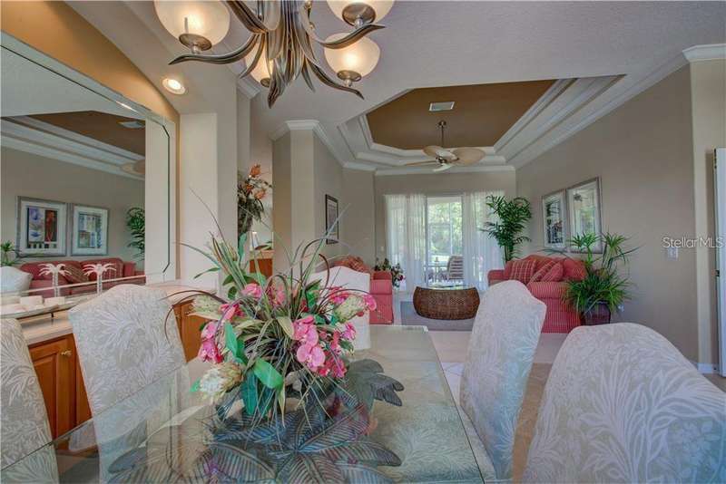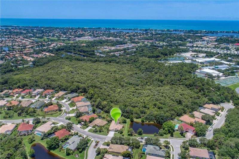 Under contract-accepting backup offers. Built by Rutenberg Homes, this residence offers high tray ceilings and a smart, open layout. The formal living and family rooms, along with the en-suite primary bedroom, open to the lanai. The dining room features custom built-ins, two guest bedrooms share a bath, and a private in-law suite/office includes its own bath and lanai access. The kitchen, with newer appliances, a breakfast bar, and an eat-in nook, connects to the family room with an electric fireplace. The lot backs to a wooded preserve with a pond on one side. A heated community pool is just a 3-minute walk away. Additional features include a drilled well for sprinklers, exterior taps, a three-car garage with EV charger, and new central heating/AC (March 2025). Walk to Pine View School for the Gifted, close to the Legacy Trail, Gulf beaches, Oscar Scherer State Park, and boating. Optional Turnkey. Seller will consider all offers.