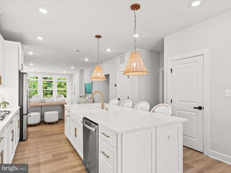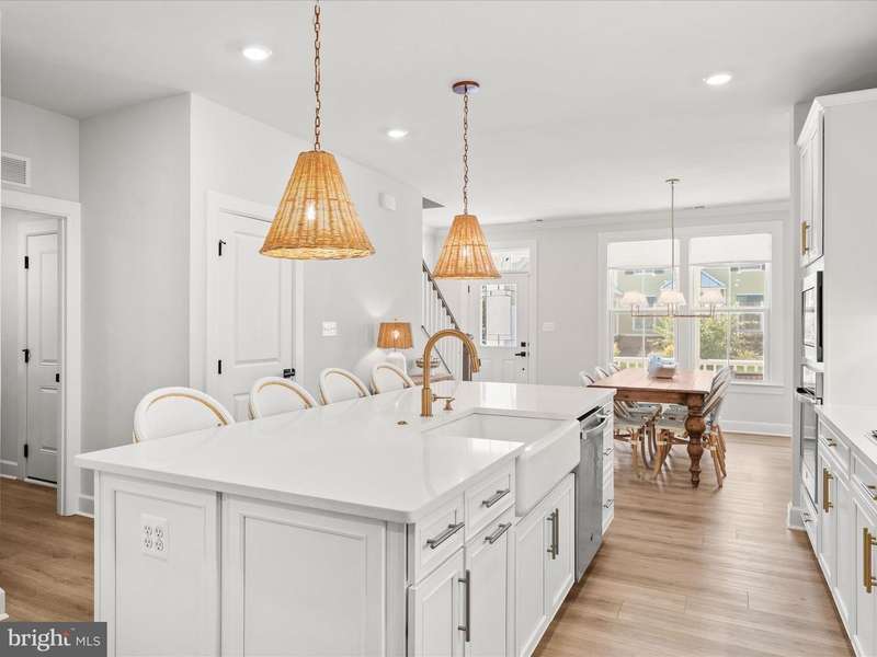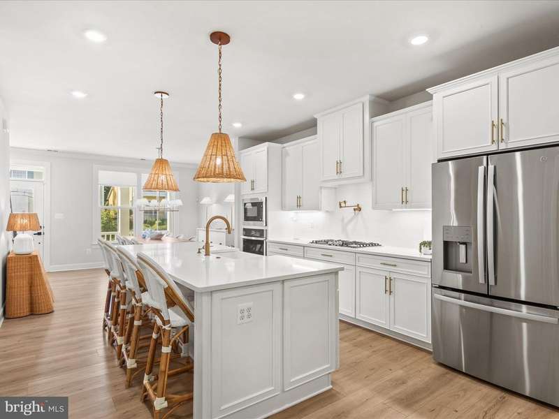 Welcome to 22179 Dune Circle, a stunning end-unit townhome in the highly sought-after resort community of The Peninsula. Less than two years old, this property has served as a second residence, used primarily for weekend getaways and has never been rented. The home shines like new and is filled with thoughtful upgrades, stylish finishes, and an abundance of natural light. From the moment you arrive, the curb appeal and side-load two-car garage set the tone for the quality within. Inside, luxury vinyl plank flooring flows seamlessly throughout, complemented by bright neutral paint and high ceilings that create a fresh, open feel. The formal dining room is enhanced by a statement Serena & Lily chandelier and transitions into the heart of the home, the gourmet kitchen. Here, you'll find 42""Â? Timberlake soft-close cabinetry, quartz countertops, upgraded champagne bronze hardware, under-cabinet lighting, a farmhouse sink, and GE stainless steel appliances including a gas cooktop with a pot filler. Stylish Serena & Lily pendant lights illuminate the oversized island, making it an ideal spot for entertaining. The kitchen flows into the inviting living room and a sun-splashed sitting area, highlighted by walls of windows and Serena & Lily sconces. Step outside to a private patio and enjoy peaceful tree-lined views. The entry-level primary suite is a retreat of its own, featuring a large walk-in closet and spa-like ensuite bath with dual vanities topped in quartz, matte black hardware, an extra-wide tiled shower with bench seating, and a private water closet. Upstairs, a spacious landing leads to three generously sized bedrooms and a versatile family room. One bedroom features its own ensuite bath, another offers an oversized walk-in closet, and a third opens to its own private balcony. The family room, accessed through French doors from the hallway, includes sliding doors to a covered balcony, perfect for enjoying fresh air, evening breezes, and serene wooded views. Every room is enhanced with recessed lighting, and the upgraded bathrooms showcase designer fixtures and finishes. Additional highlights include a finished and painted garage with epoxy floors, Leaf Filter gutter guards, upgraded lighting and electrical throughout, attic storage with pull-down stairs, and an exterior gas line for grilling. Thoughtful touches such as extra outlets, a dedicated circuit for the garage refrigerator, and TV wiring for the upstairs porch ensure both convenience and comfort. This home is offered with several included features for the next fortunate owner: washer and dryer, refrigerator in the garage, two storage shelves, Weber gas grill, five flat screen TVs (including a Samsung Frame TV in the family room), and designer Serena & Lily light fixtures. All appliances are as new as the home itself. Living at The Peninsula means enjoying an unmatched resort lifestyle. Community fees include lawn care, snow removal, trash service, Verizon Fios high-speed internet, HD cable, and 24-hour security. The centerpiece is the Jack Nicklaus Signature Golf Course and clubhouse, offering indoor and outdoor dining, a wine and billiards room, golf lounges, pro shop, putting greens, and bocce courts. Lakeside Village features a fitness center, full-service spa, game room, indoor and outdoor pools, including an adult-only heated pool, wave pool, and kiddie splash area, along with tennis, pickleball, miniature golf, a dog park, and a private bay beach. All of this is just 13 miles from downtown Lewes and the Rehoboth Beach boardwalk. With all this home has to offer you'll enjoy the ultimate in coastal lifestyle, whether as a year-round residence or a luxurious retreat.