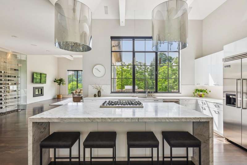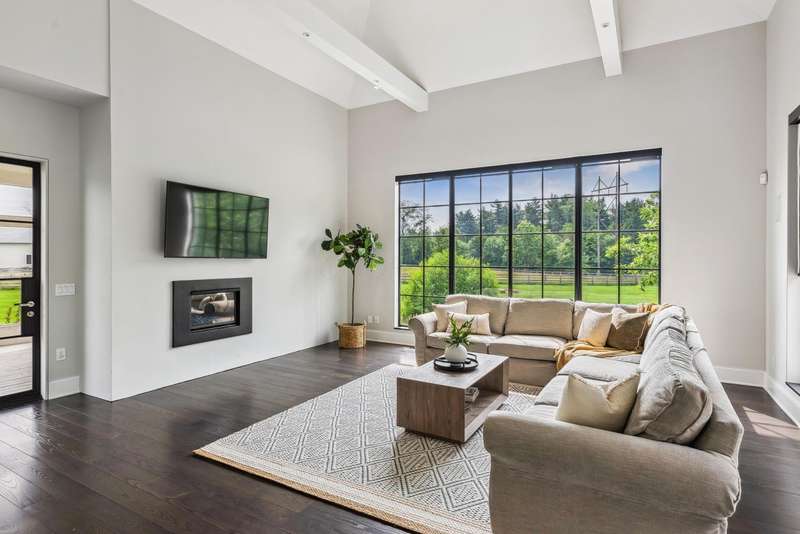 Experience luxurious living in a beautifully updated custom home on 6.1 pristine acres of peaceful countryside which includes a beautiful, stocked pond. With striking Hope's custom steel windows, smart home Control4 integration, and stunning Carlisle ash wood floors, every detail has been thoughtfully curated. Ceilings are exceptionally high and the floorplan is open and flooded with natural sunlight. A main-floor owner's suite offers sweeping views, spa-like bath, and a generous closet while the 2nd level offers 3 family bedroom suites-all large with excellent closets. Enjoy a fully finished lower level with fitness and media rooms plus a full guest suite. The kitchen is a work of Italian craftsmanship with marble, quartz, Viking appliances, a huge island and custom temperature-controlled glass encased wine display. This home was designed for entertaining in style including 3 outdoor spaces that include a large, screened room. Also included are 4 oversized garage spaces, the original 4 horse barn has been casually converted to a party space while maintaining the stalls, hay loft, tack room and wash bay offering exciting potential as a guest house or poolside retreat. And to cap it off, the 80 X 100 radiant heated arena with state-of-the-art footing is ready for your horses but could easily house a fabulous car collection! See A2A remarks.