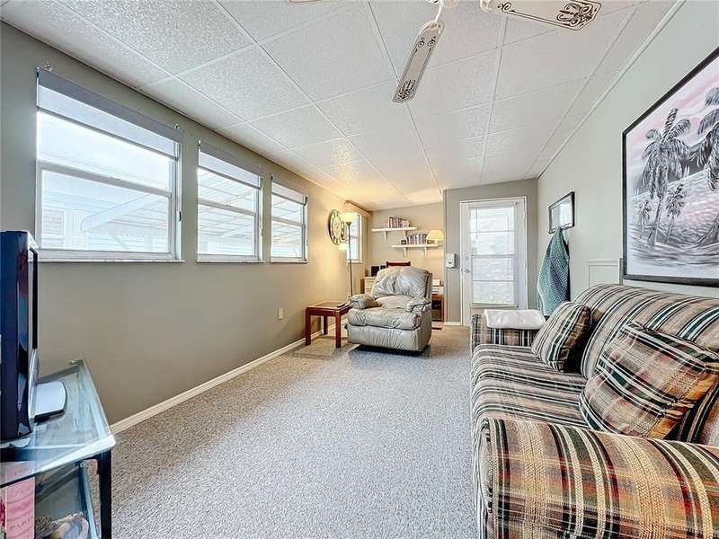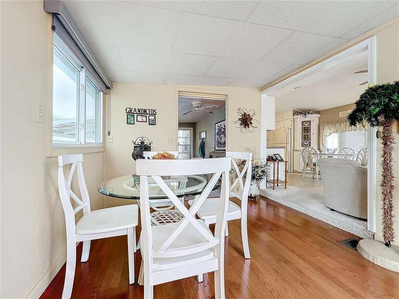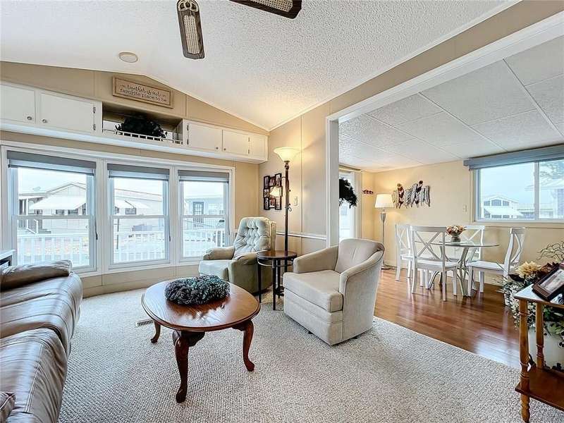 BRIGHT AND CHEERFUL MOBILE HOME IN ACTIVE 55+ COMMUNITY. One bedroom, one bathroom home sold turn-key. Enjoy the ample front deck on this welcoming home! When you enter the front of the home, there is a welcoming bonus area that could be used as dining or extra seating. Enjoy all the natural light in the eat-in kitchen and connected living room. The large family room has sliding doors that offer separation for sleeping options, and could easily become a true second bedroom. The bathroom has a Bathfitter shower and linen storage. The tilt-in vinyl windows add to the ease of maintenance. This well-kept property features a covered parking area which is currently used for outdoor seating. Room to park multiple vehicles. Shed with laundry and extra storage. Central A/C. Sold for CASH ONLY. Sugar Creek Country Club has LOW HOA FEES OF $525 PER QUARTER which include internet, cable, grass mowing, water, sewer and trash. There are 2 swimming pools, heated spa, clubhouse, tennis, pickleball, shuffleboard, a fitness room, and workshop. There is an active social calendar during the winter months. SO MUCH TO OFFER! Sorry this is not a dog lot.