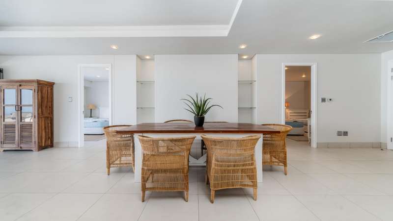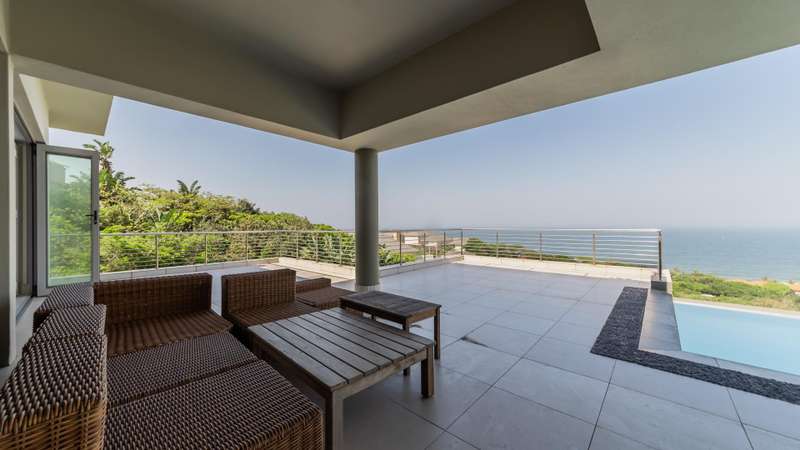 This luxurious 3-bedroom apartment is set within one of Simbithi?ÇÖs most exclusive sectional title developments, offering the perfect blend of elegance, comfort, and coastal sophistication. As you enter, you?ÇÖre welcomed by a spacious open-plan living area and an elegant kitchen featuring a center island and discreet scullery, ideal for both style and practicality. The living space flows effortlessly onto a partially covered patio with a private swimming pool and breathtaking sea views, perfect for entertaining or relaxing. The main bedroom is expansive, boasting incredible sea views, ample cupboard space, and a luxurious en-suite bathroom. Both second and third bedrooms are en-suite, with one offering sea views and sliding-door access to the balcony. Additional features include two secure underground parking bays with storage cupboards, lift access, air conditioning throughout, backup water supply, and pet-friendly approval for two small dogs. Residents enjoy Simbithi?ÇÖs world-class facilities, including tennis, squash, and padel courts, a 25m lap pool, community centers, fishing dams, hiking and biking trails, horse riding, and a championship golf course.