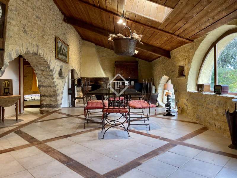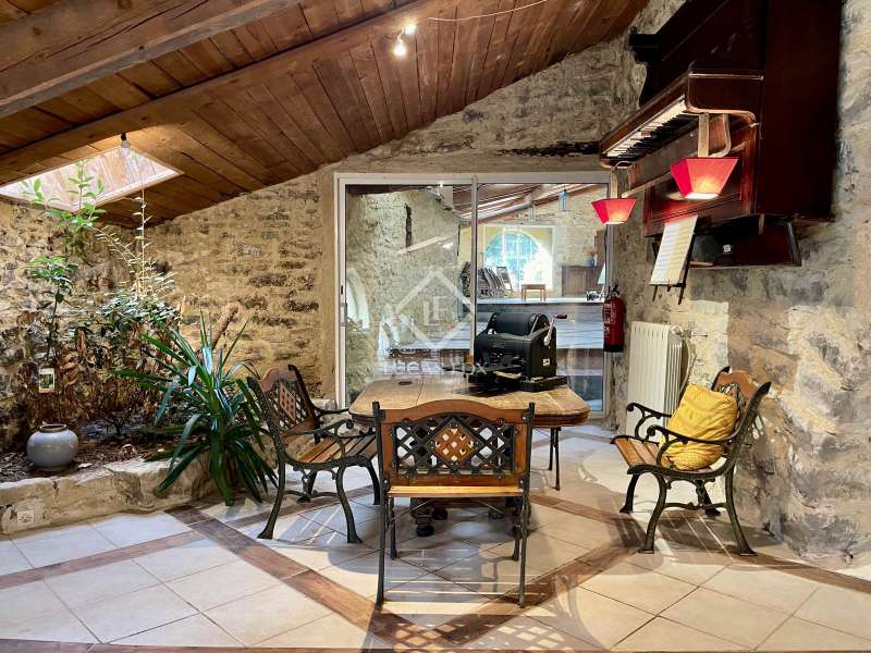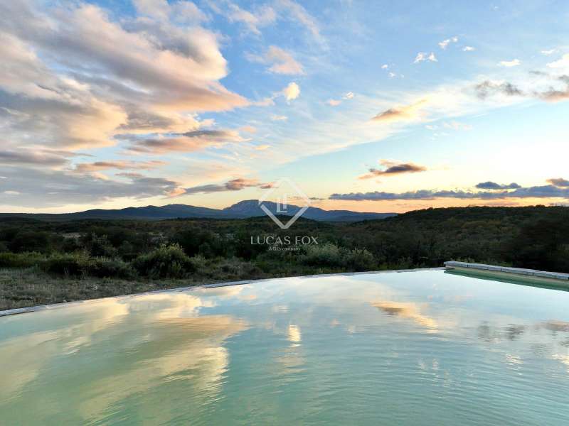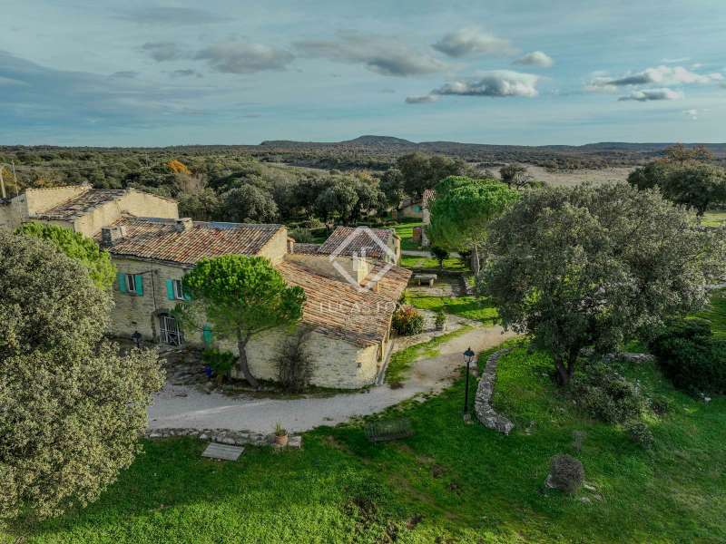 Lucas Fox International Properties, about thirty minutes north of Montpellier, near Saint Mathieu de Treviers, exceptional farmhouse with breathtaking views of the Pic Saint-Loup and the hinterland. The 1,500 m² property sits on over 10.5 hectares of contiguous land and comprises six farmhouses, five of which are used as gîtes. This complex is ideal for all your events, receptions, seminars, bed and breakfasts, gîtes, and eco-villages. It boasts two reception rooms: a fully equipped discotheque that can accommodate 80 people, and an outdoor lounge with a capacity of over 120 people, featuring a bar, high-end sound system, a fully equipped kitchen, restrooms, and a games room. The main farmhouse has a surface area of over 350 m², and the working farms are between 100 m² and 250 m². The property is sold furnished, and some of the works of art will delight collectors. Enjoy an outdoor infinity pool with panoramic views of Pic Saint-Loup and its surrounding countryside. You'll also have access to a double garage, a large semi-covered parking lot, and a helipad. The six farmhouses have been completely renovated, with a roof less than 5 years old. The remarkable architectural elements have been preserved and highlighted. All the farmhouses are independent in terms of installations such as: electrical panels and heat pump (installed in 2023) coupled with oil heating. Horizontal drainage ensures water autonomy at 80% of the property's needs over a year thanks to a tank of more than 120,000 liters. The property aims to be energy passive since 41 solar panels were installed in 2022, creating an excess of energy production. History: The first buildings were erected over 1,000 years ago, including an old sheepfold, a silkworm farm, and a stable, among other things. Over time, they were shaped according to the needs of ancestral activities on this plain where sericulture, transhumance, and agricultural exploitation reigned. Today, these same arable lands are rich and can be used for market gardening, winegrowing, or truffle farming. Environment: With no neighbors and no noise or light pollution, the property is located in the heart of the scrubland and some of the most beautiful views in the region. The property faces southwest, allowing you to admire sublime sunsets throughout the seasons. Important: Urban planning regulations are very favorable to the estate and its activities. The entire property complies with the standards governing Public Buildings (ERP). Just 30 minutes from Montpellier, 15 minutes from all amenities and the hiking trails of the Grand Pic Saint-Loup, 45 minutes from the airport, train stations and one hour from the beaches. Information on the risks to which this property is exposed is available on the Géorisques website: www.georisques.gouv.fr.