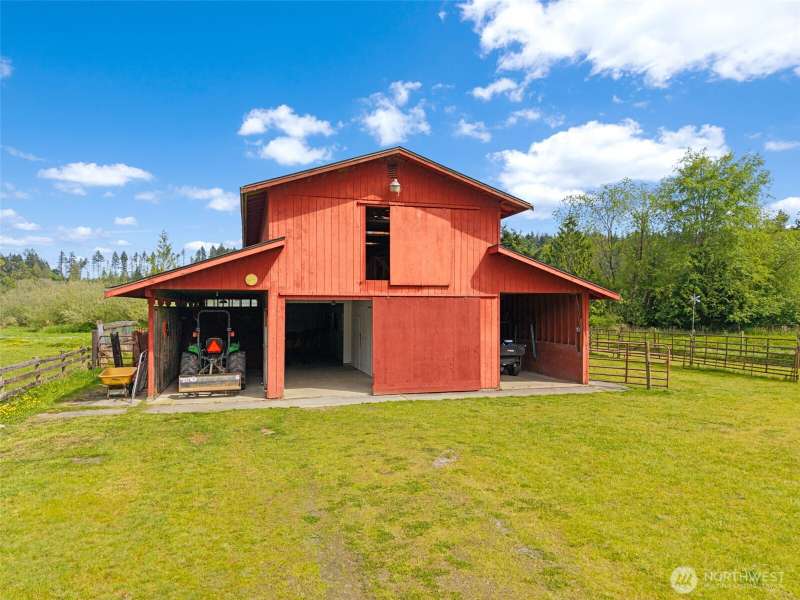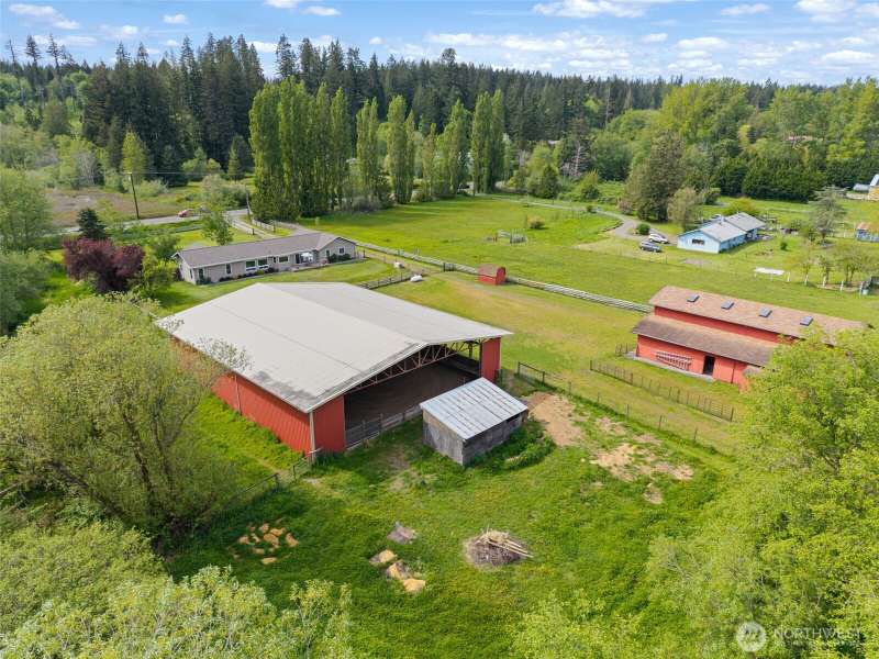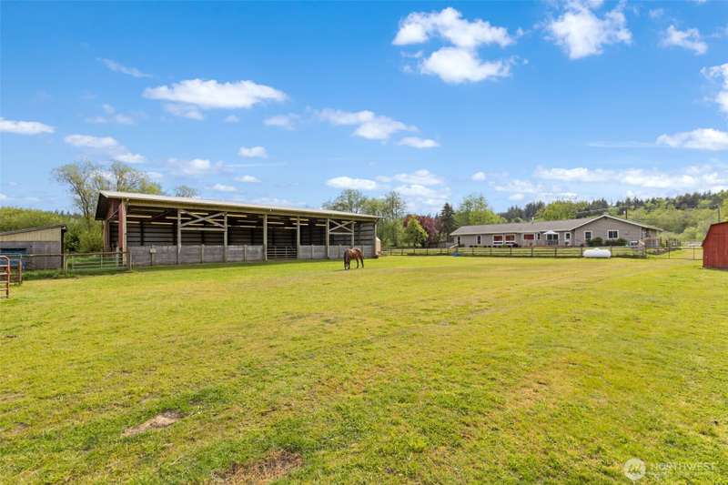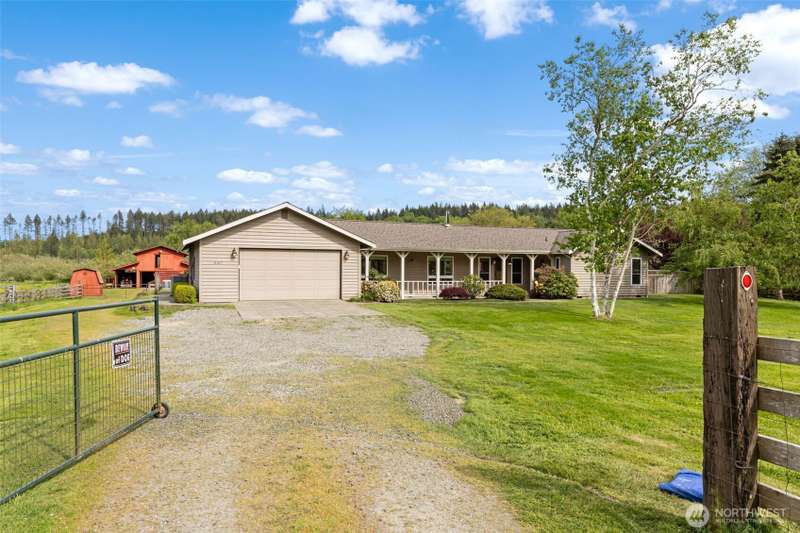 9.87 acres of beautiful equestrian property on Blackjack Creek. 70x84 lighted indoor arena, barn with up to 5 stalls, tack room & giant hay storage makes the property highly usable for all your farming plans. Greenhouse & gardens plus ample pastures for grazing & haying. 1,800sq ft home with lovely updates. Oversize picture window in the renovated kitchen provides a pastoral view. Farm house feel with vaulted ceilings & all the creature comforts. Spacious primary w/5 piece en-suite with soaking tub. 2nd bedroom w/attached full bath. Bonus space w/exterior entry cabinets & sink. Great for farm use, or finish for 3rd bedroom. Wide gated entry, fully fenced with ample parking & large yard. Automatic generator, and so much more!