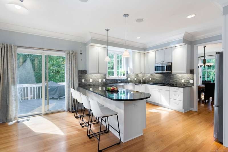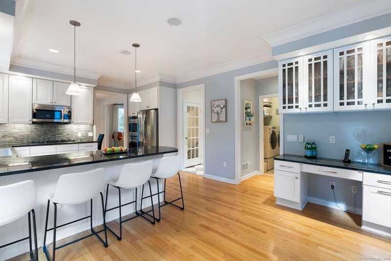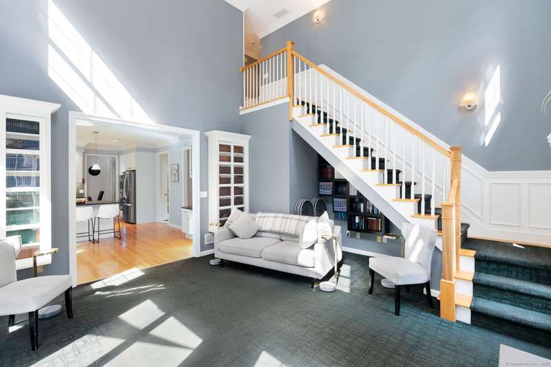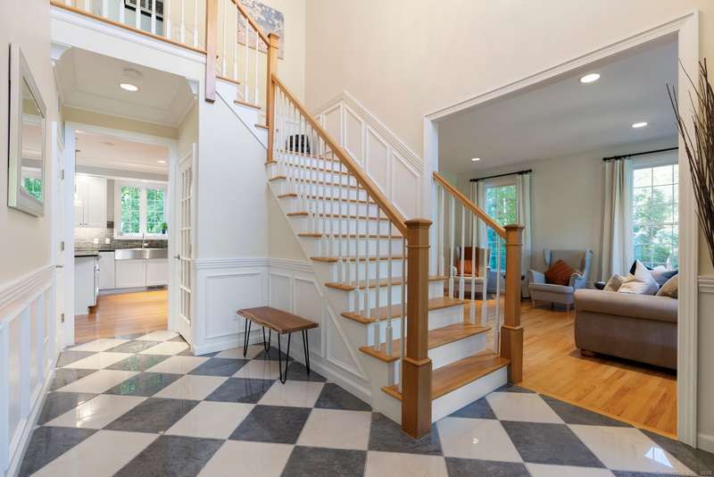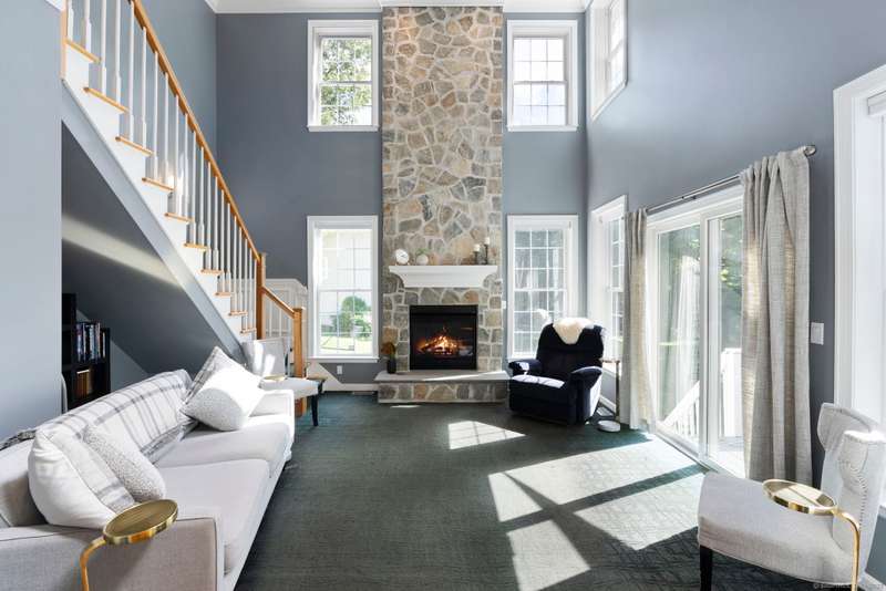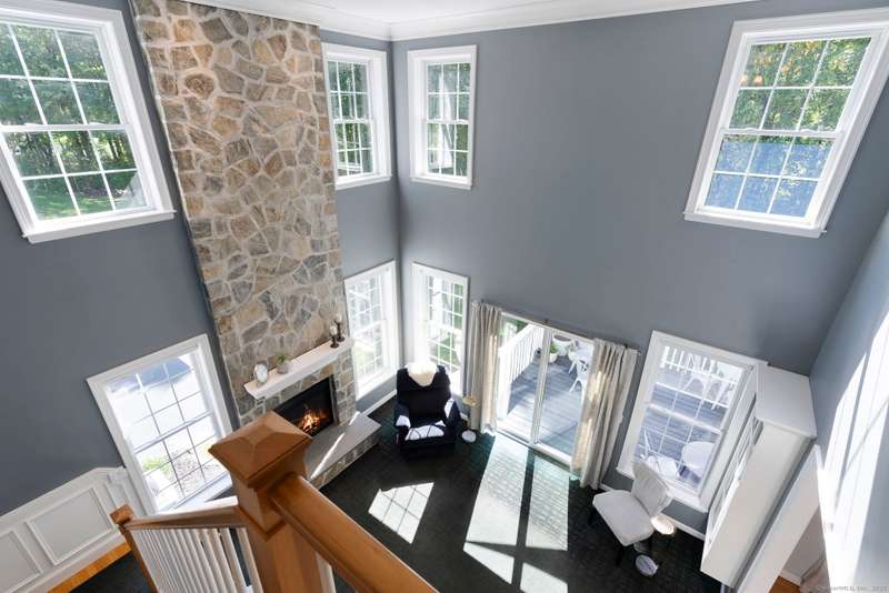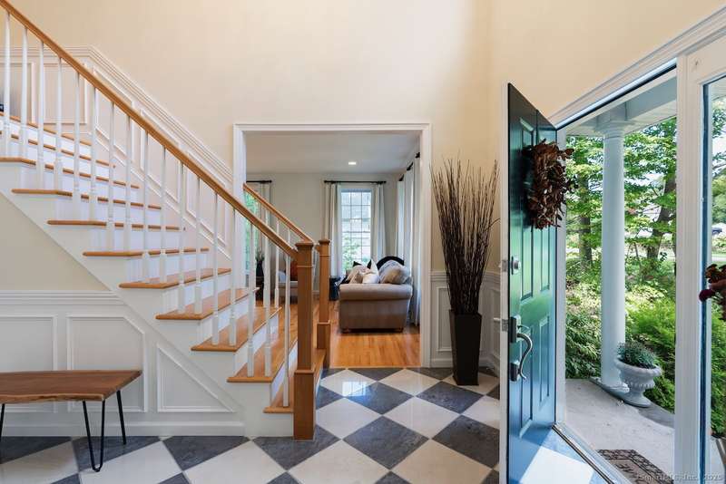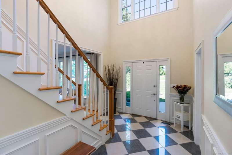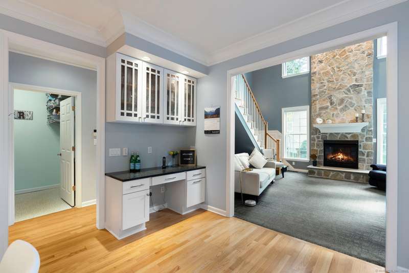 An Absolutely Stunning Colonial - Truly MOVE-IN Ready - Just Unpack and Enjoy. Entering the home, you are greeted by a checkerboard marble tiled 2 story foyer filled with natural light and white trim. To the right, you'll find the formal living and dining rooms with hardwood floors and plenty of windows. The Heart of the Home - the Kitchen, is graced with white cabinetry, granite, stainless steel appliances including a propane fueled range, a double wall oven, built in microwave and an oversized 42" country style stainless sink. The area is finished by an eat-in area and a coffee bar. The Great Room is a fantastic gathering space with custom built-in floating bookcases with glass doors and the back staircase to the 2nd floor. A floor to ceiling stone chimney stuns as it soars 18' into the air - with a propane fueled fireplace. The first floor is finished off with a laundry room, drop zone and a walk-in pantry, along with a 2 car garage. Upstairs is host to the primary suite with cathed