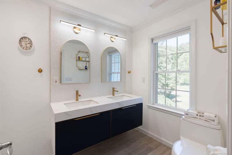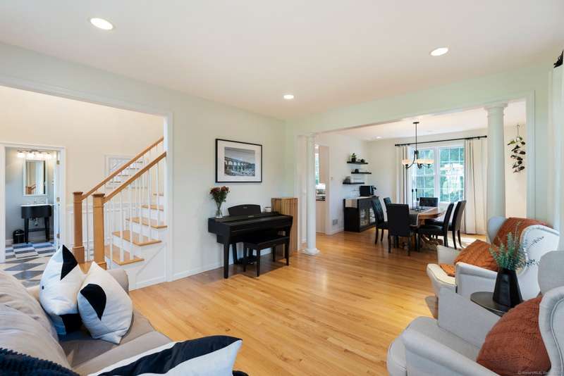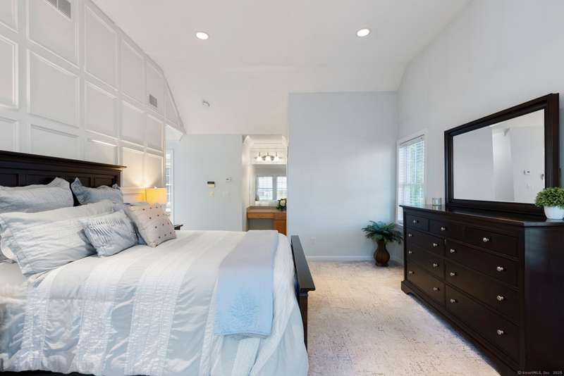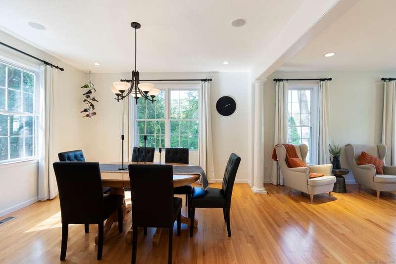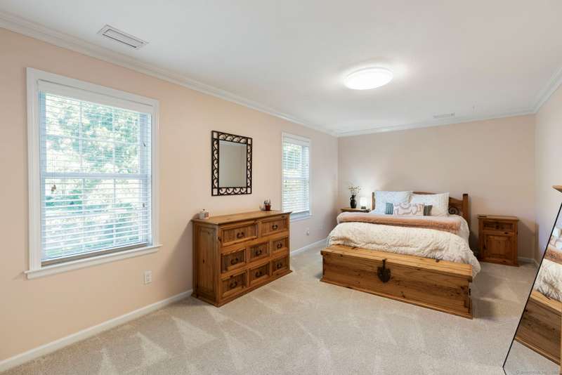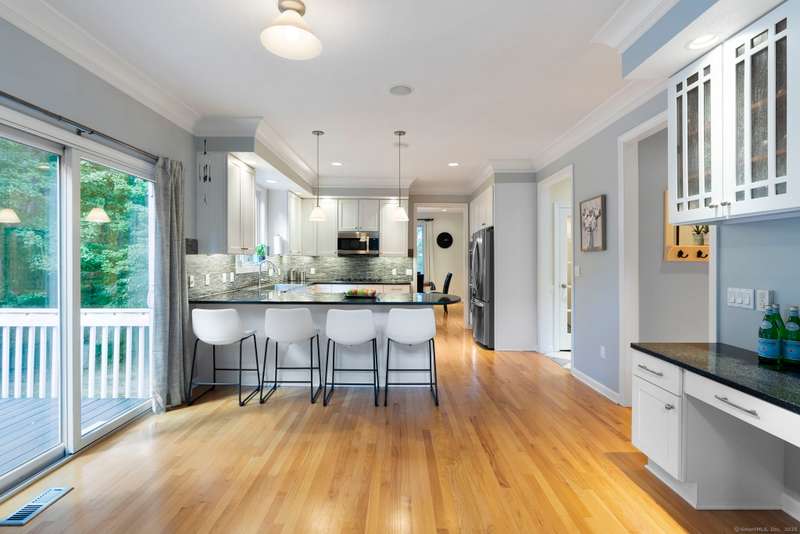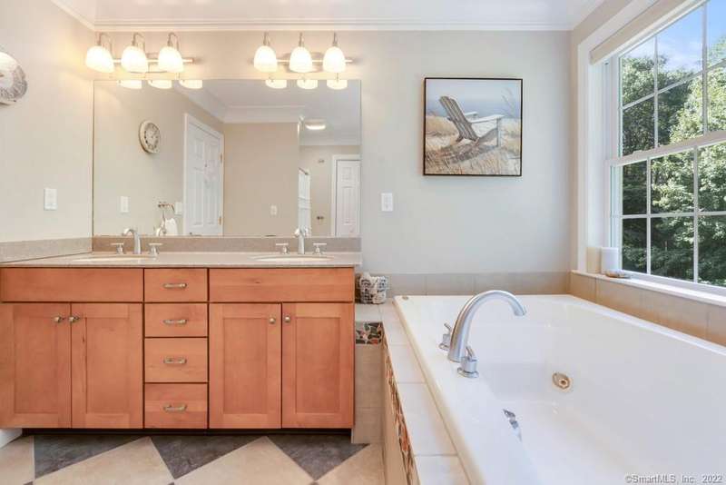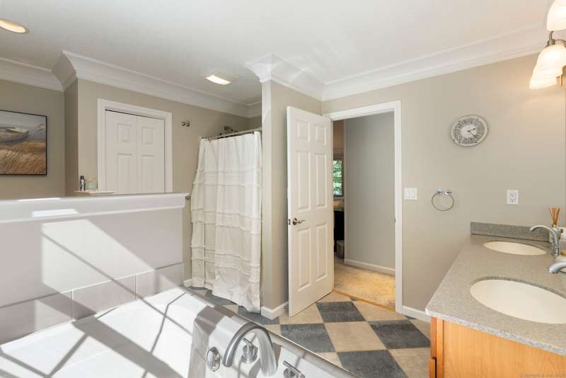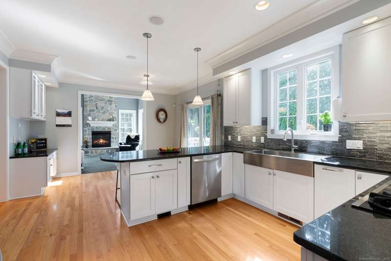 An Absolutely Stunning Colonial - Truly MOVE-IN Ready - Just Unpack and Enjoy. Entering the home, you are greeted by a checkerboard marble tiled 2 story foyer filled with natural light and white trim. To the right, you'll find the formal living and dining rooms with hardwood floors and plenty of windows. The Heart of the Home - the Kitchen, is graced with white cabinetry, granite, stainless steel appliances including a propane fueled range, a double wall oven, built in microwave and an oversized 42" country style stainless sink. The area is finished by an eat-in area and a coffee bar. The Great Room is a fantastic gathering space with custom built-in floating bookcases with glass doors and the back staircase to the 2nd floor. A floor to ceiling stone chimney stuns as it soars 18' into the air - with a propane fueled fireplace. The first floor is finished off with a laundry room, drop zone and a walk-in pantry, along with a 2 car garage. Upstairs is host to the primary suite with cathed