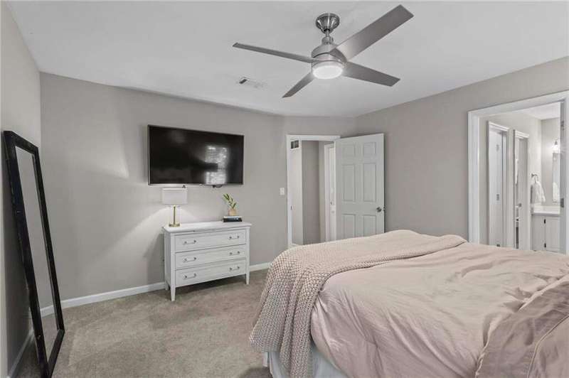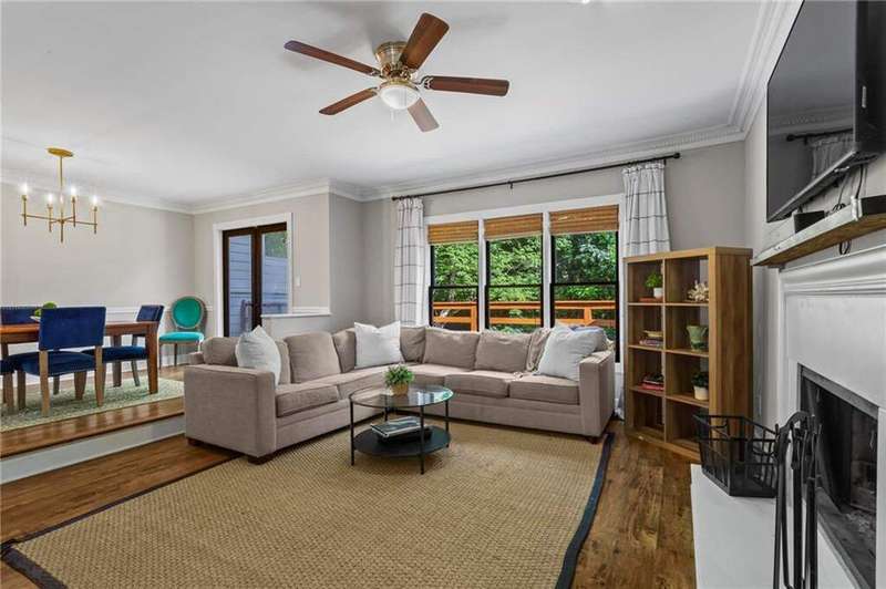 Welcome to 28 Huntington Place Drive! This charming 3-bedroom, 2.5-bath brick end-unit townhome offers a rare combination of space, privacy, and convenience in an unbeatable location. Step inside to find a large living room with a cozy fireplace that flows seamlessly into the spacious dining area-perfect for entertaining. The living space opens to an expansive deck overlooking a private wooded backdrop, creating a serene retreat right at home. The kitchen is spacious and features white cabinetry, a pantry, and elegant marble countertops. Upstairs, the primary suite features an updated bathroom and dual closets, while two additional bedrooms share a full bathroom with updated countertops. A two-car garage and ample basement storage provide practical functionality and convenience. Community features ample, convenient parking for guests and takes care of all lawn maintenance. Huntington Place is a small community centrally located near many shopping, dining, and recreational options. No rental restrictions making this a great opportunity for an investment property! Outdoor enthusiasts will love being less than 2 miles from the Chattahoochee River and Riverside Park, while vibrant Canton Street in Downtown Roswell is only 2 miles away. Plus, quick access to GA 400 and Sandy Springs makes commuting and exploring the city a breeze. Don't miss the opportunity to make this beautiful townhome your own or purchase as an investment property!