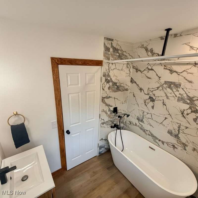 Step inside this stunning 4-bedroom, 2.5-bath modern home with an open concept design and abundant recessed lighting throughout. The spacious third floor features a private bedroom perfect as a master suite, while the second floor offers three additional bedrooms and a luxurious full bath with ceramic tile, a soaking tub and a rainfall shower. Enjoy cozy evenings by the fireplace in both the living room and the finished basement. The basement also boasts an impressive home theater complete with a 110-inch motorized projector screen and massaging theater seating. With brand-new windows, doors and a hot water tank, this home is move-in ready. Outdoor spaces include a balcony, a well-lit back porch, a fully fenced yard and a brand new two car garage. Modern style, thoughtful updates and plenty of storage make this home truly exceptional.Photos are shown with virtual staging to demonstrate potential furniture layout.