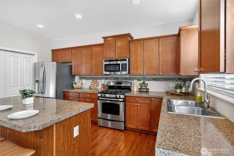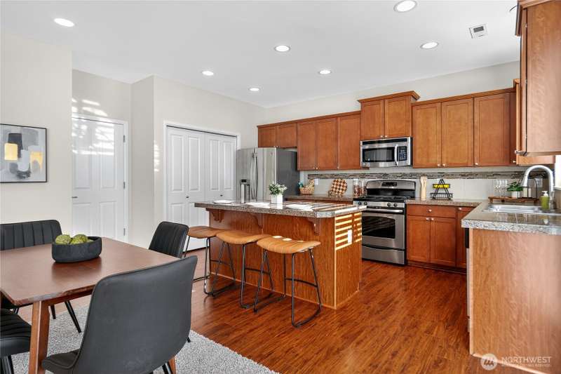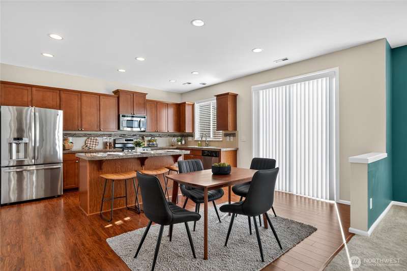 Welcome home to this gorgeously designed 2,663 sq ft property in the desirable Lake Meridian area. This open-concept residence features 5 spacious bedrooms + a den/office, 2.5 baths, 3-car garage, a newer A/C, EV charger, built-in speaker in the living room, and a bonus room—perfect for modern living. The main level offers a seamless flow between the kitchen, dining, and living areas, ideal for entertaining or everyday comfort. Upstairs, the generous primary suite includes a private bath and walk-in closet, complemented by four additional bedrooms for guests or home office needs. Home is located on a quiet street with plenty of street parking. Convenient location near shops, park, and restaurants, and easy access to freeway 18.