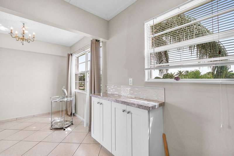 Top-floor corner unit in Century Village Boca Raton featuring 2 bedrooms, impact windows, and an updated kitchen with granite counters, white cabinets, and stainless appliances. Newer mechanicals. No upstairs neighbors. Easy to show and priced to sell. HOA includes cable, internet, and water. Century Village offers a clubhouse, fitness studio, theater, tennis, pickleball, bocce, and more. A must-see.