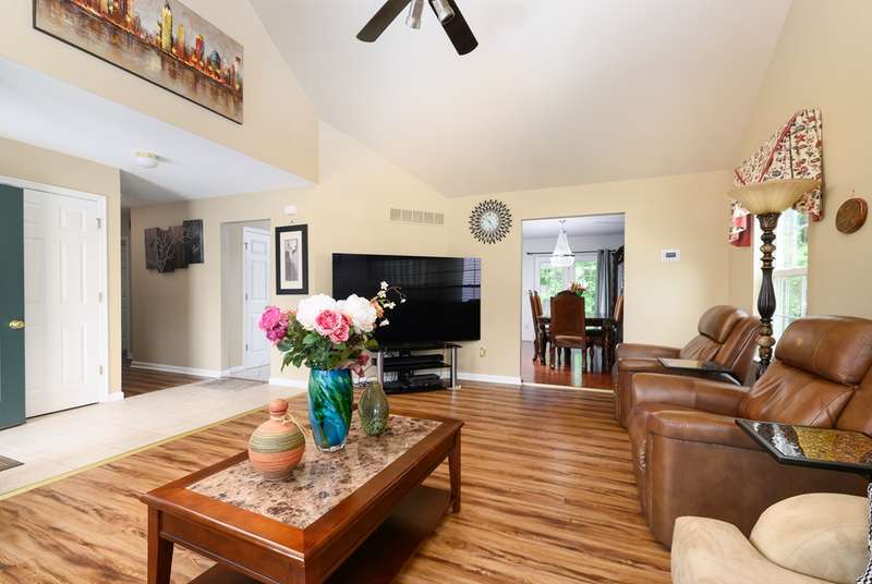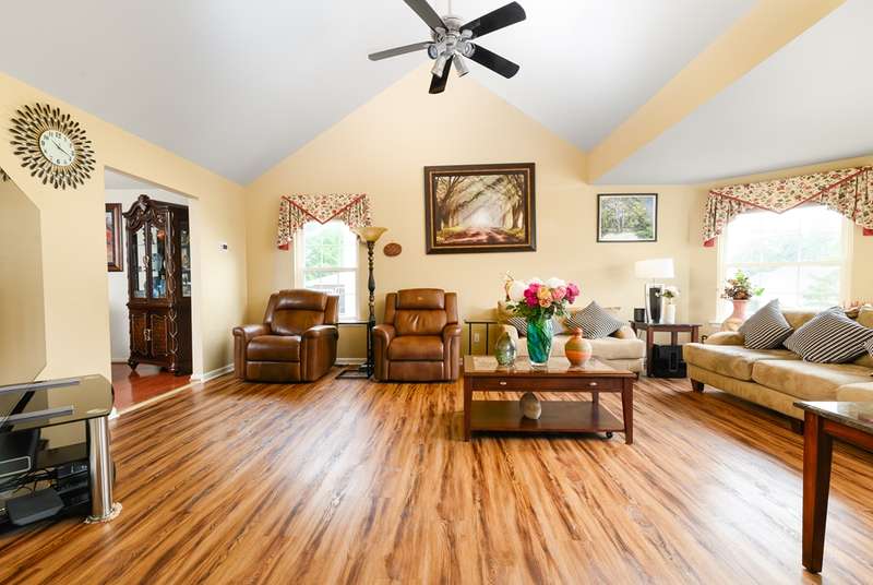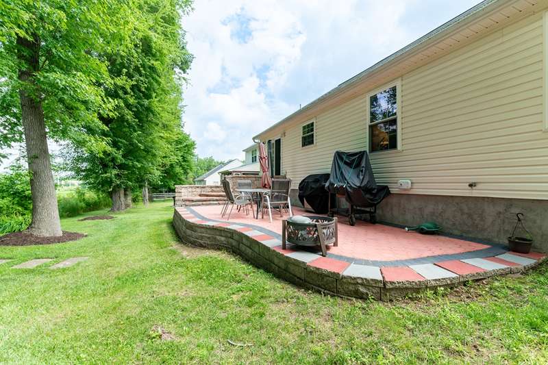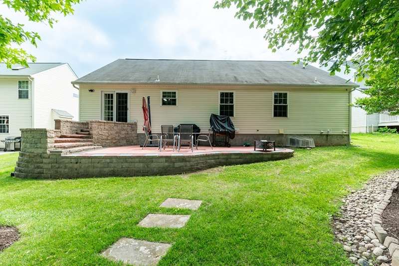 Located within the Newark Charter 5 mile radius, this well-maintained ranch offers bright, open living in a location close to everything. The sun-filled living room features a bay window and flows into the dining area with hardwood floors and access to a private, tree-lined backyard with a paver patio. The kitchen provides plenty of storage, prep space, and a center island for easy day-to-day living. Down the hall are the main level laundry and three bedrooms, including a spacious primary suite with cathedral ceilings, walk-in closet, and private bath. One bedroom is currently set up as a home office. The sprawling finished basement includes a large family room, full bath, and a flexible bonus room for exercise, hobbies, or guests as well as an ample storage space. A new gas furnace was installed in 2018, and gutter guards help keep exterior maintenance simple. Comfortable living, practical updates, and a peaceful setting. Brand new garage door opener with remotes and keypad installed on 8/8. Come see this home asap!