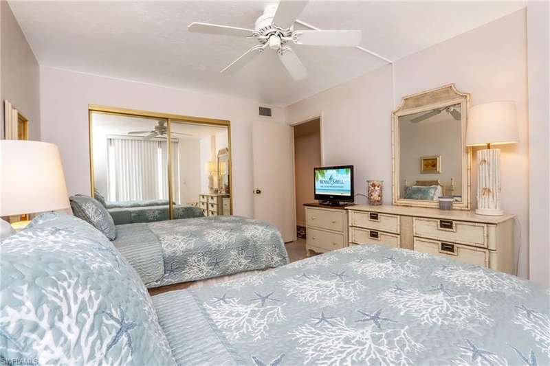 Nestled along the shore of Little Hickory Island, Seascape is a condo association of 3 buildings with amazing gulf views. Enjoy this 2-bedroom, 2-bath, 5th floor condominium. Western exposure to a take in the stunning sunsets from your unit. Features include a comfortable living area with sofa, chairs, flat screen TV, dining for 4 people and fully equipped kitchen. Primary bedroom with new vinyl flooring, king bed, and ensuite bathroom. Guest bedroom with two twin beds and guest bathroom in hallway. Wireless internet and cable included for your convenience, plus a Washer and Dryer in the unit. Amenities include a large swimming pool and lounging area, walking access to miles of beach, tennis and pickle-ball courts and stunning sunsets. The property also includes kayak access to the bay or the gulf.