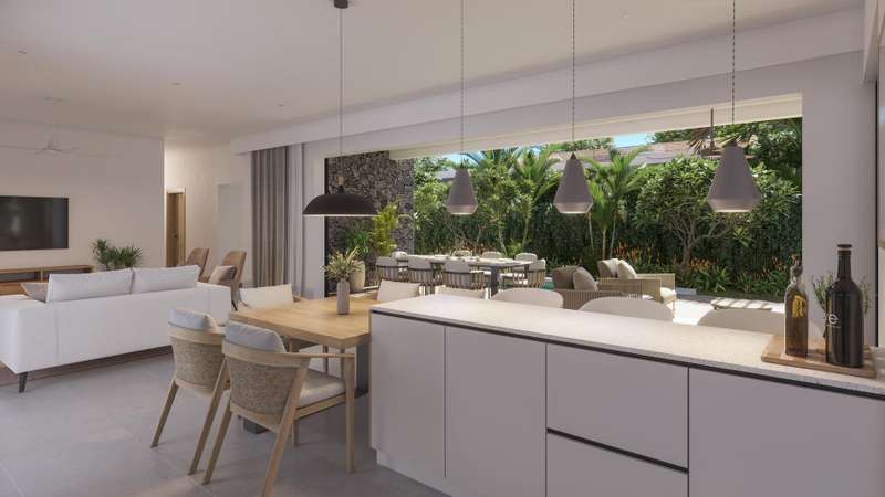 The eight Aloes Bleu villas are perfectly integrated into the estate's lush natural surroundings. They have a double east-west orientation, optimising the entry of natural light throughout the day and creating a warm and welcoming atmosphere. Offering five different floor plans, Aloes Bleu villas allow you to choose the ideal layout for your lifestyle. Each villa features a bright living room with open-plan lounge, dining room and kitchen opening onto a large covered terrace and elegant private pool. The three en-suite bedrooms ensure comfort and privacy, with particular attention paid to the master suite, which features a dressing room and outdoor shower. These villas are the epitome of modern comfort combined with elegant, functional architecture. Interior living space: 149 m² Total built area: 298.1 m² Land: from 629 to 768 m² Palmaris enjoys optimum sunshine all year round, providing the ideal setting for leisure activities and a relaxed lifestyle. Owners also benefit from privileged access to a prestigious 18-hole golf course in the immediate vicinity. Palmaris, living naturally, quite simply.