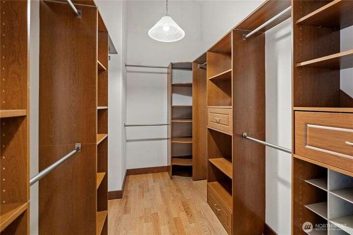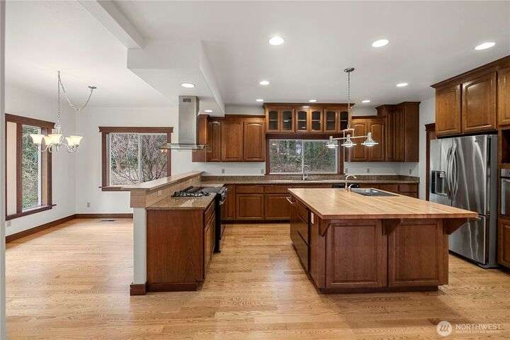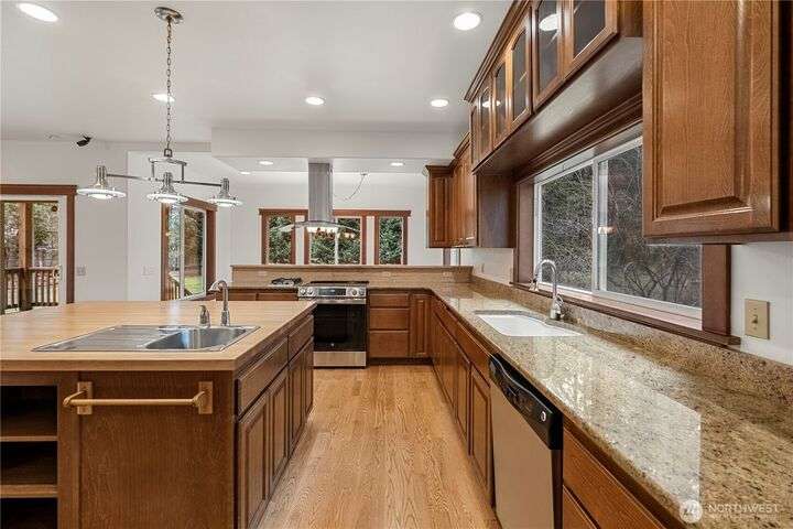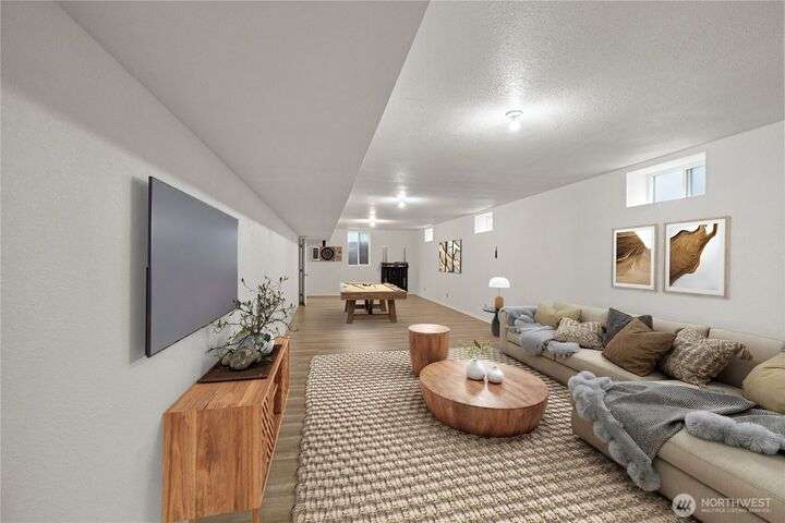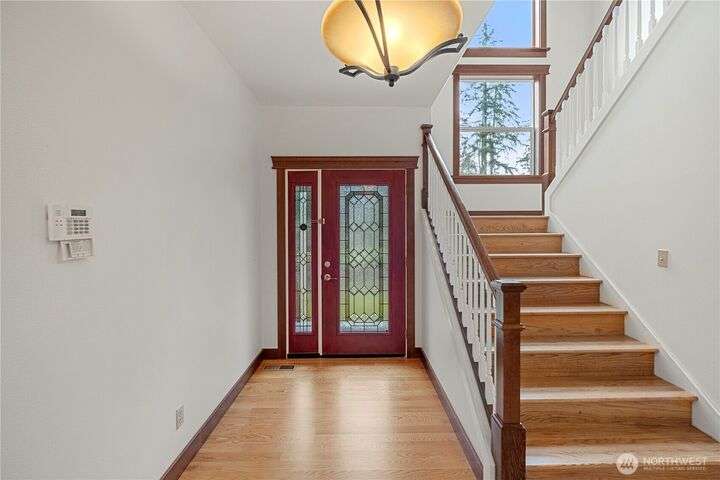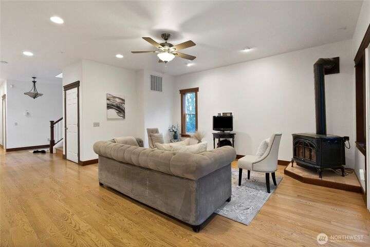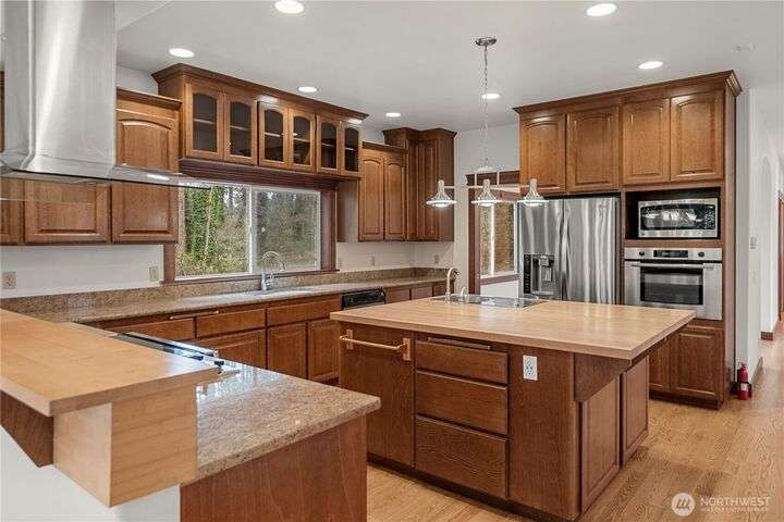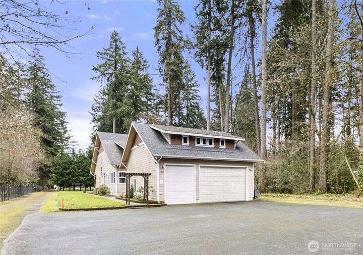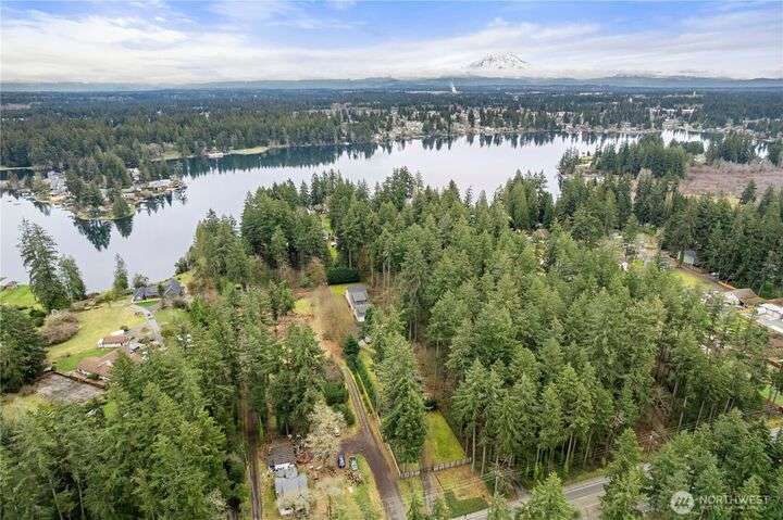 Stunning custom-crafted home, full finished basement on 1.15 private acres! Gated Entry. Minutes to JBLM. Multi-generational living. 4730'sf, Built 2009. 4 spacious bedrooms, 3 baths, 3-car garage with loft. RV Parking. Main floor features family room, propane fireplace, formal living, dining rooms, well-equipped kitchen, stainless steel appliances. Fresh interior paint and refinished hardwoods. Security System. Upstairs Expansive primary suite with vaulted ceilings, den, dual closets & covered deck. Second suite offers ADU potential, kitchenette, covered deck. Finished basement, 8' ceilings, fitness room, bonus space, game rm, systems rm. Heat pump A/C, generator hook-up, sprinkler & security systems. Near Spanaway Lake. Welcome!