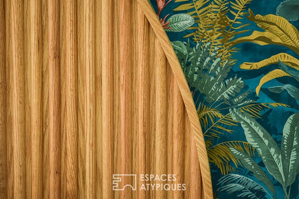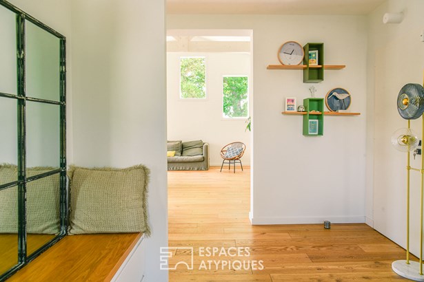 L'entree donne le ton a la decouverte de ses meubles sur-mesure et de son sol en chene fil conducteur de la visite.