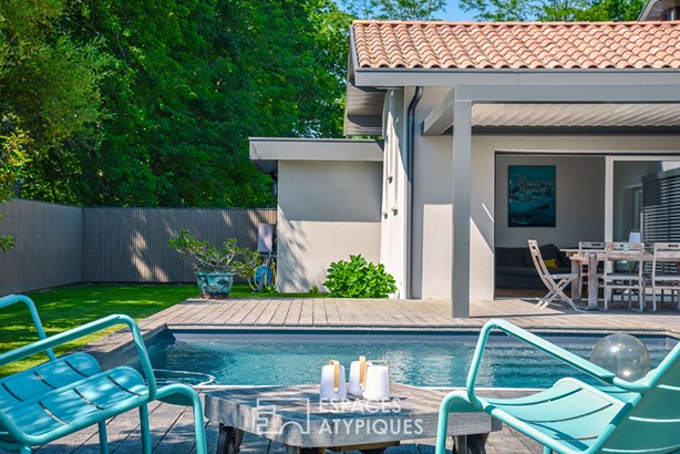 A quelques minutes a pied des commerces et des ecoles, cette villa resolument moderne offre un confort actuel et un coup de coeur certain pour une vie a l'annee ou pour une residence secondaire.