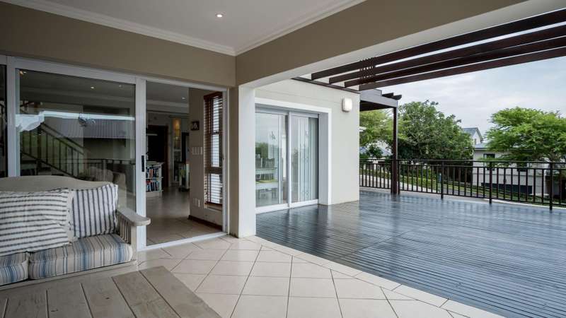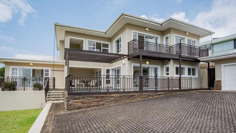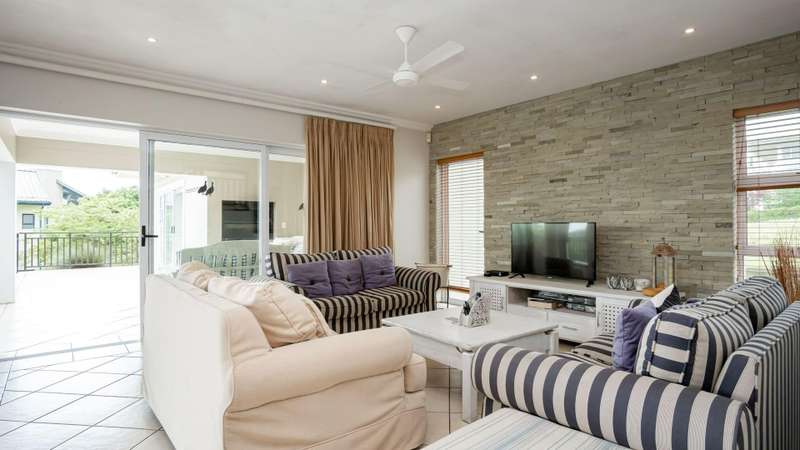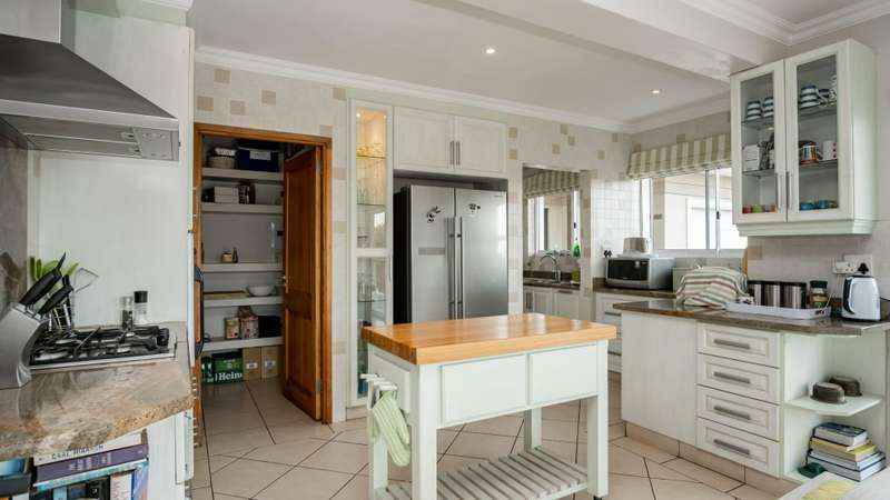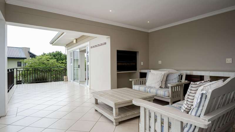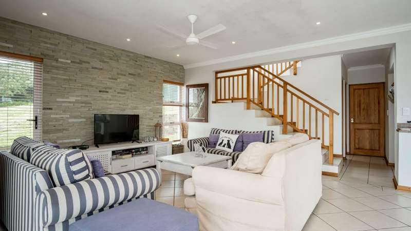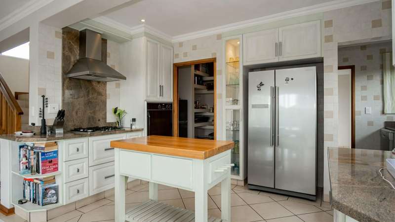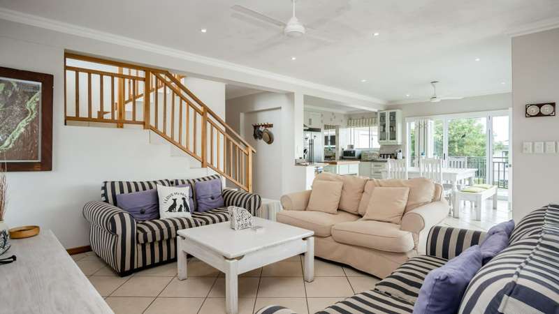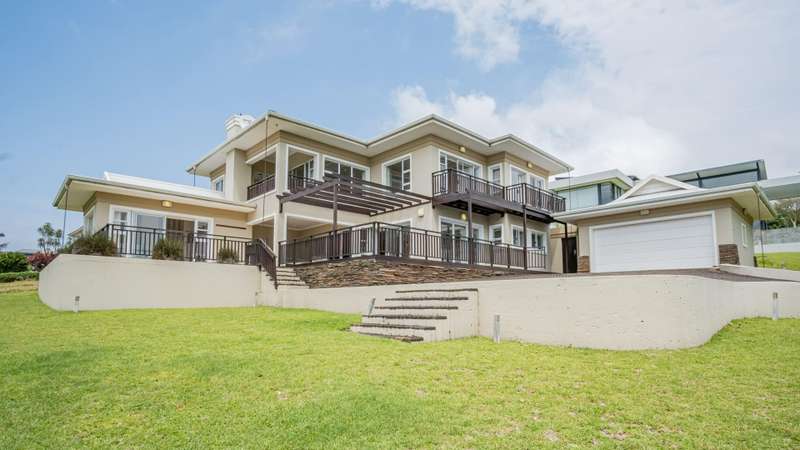 Wonderfully Located Home in Secure Estate Dual Mandate - Enter into the inviting living area comprising a lounge, dining room, kitchen, walk-in pantry, scullery, guest loo with 2 practical storage rooms conveniently situated in this area. The contemporary kitchen enjoys granite tops, a gas hob with extractor, an eye-level oven and a centrally located butcher's block. Sliding doors lead out to a generous covered patio, perfectly protected from the elements. The lavish guest suite is located on the lower level of the home and enjoys an en-suite bathroom featuring a shower, basin and toilet. The upper level of this home comprises 3 more bedrooms, all of which are ocean-facing with sliding doors leading out to private balconies. The main bedroom enjoys sweeping views and features a "shower with a view" in the full, en-suite bathroom, and a commodious, walk-in wardrobe. The other 2 bedrooms share a full bathroom offering modern finishes. This home features shutters, blinds and ceiling fans throughout, a double garage and ample uncovered parking.