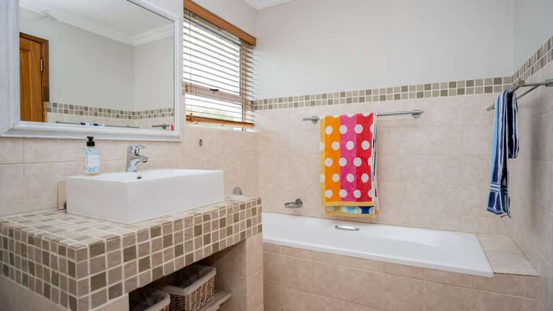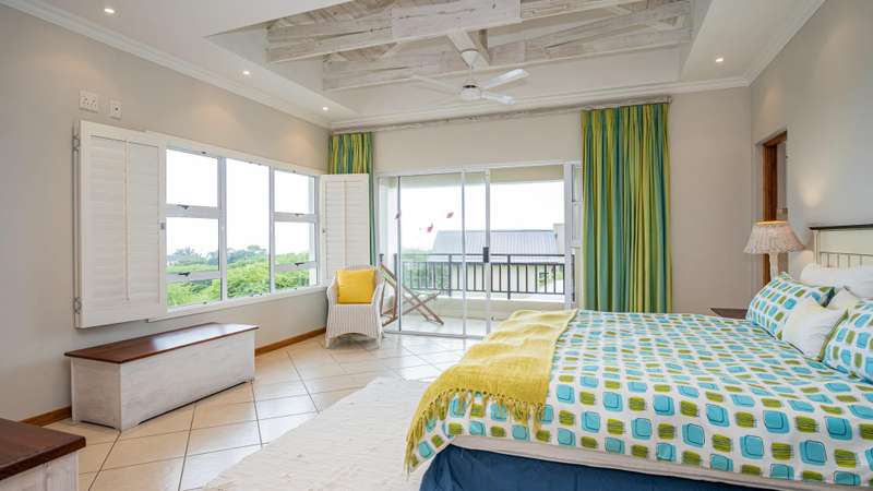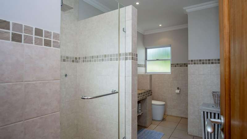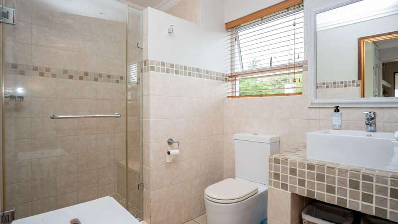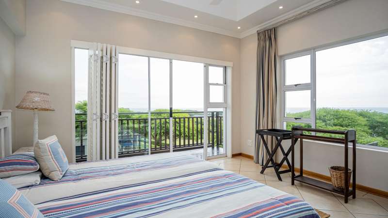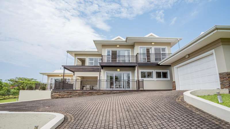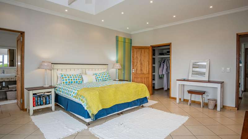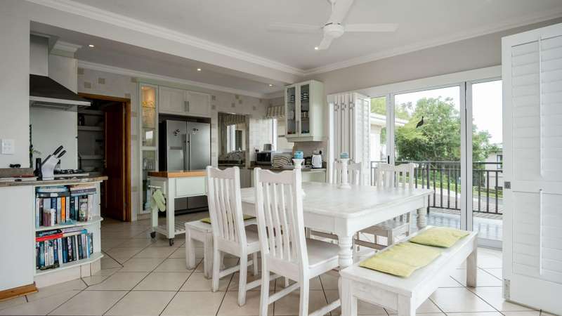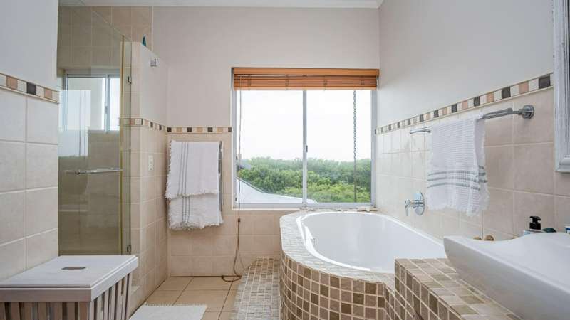 Wonderfully Located Home in Secure Estate Dual Mandate - Enter into the inviting living area comprising a lounge, dining room, kitchen, walk-in pantry, scullery, guest loo with 2 practical storage rooms conveniently situated in this area. The contemporary kitchen enjoys granite tops, a gas hob with extractor, an eye-level oven and a centrally located butcher's block. Sliding doors lead out to a generous covered patio, perfectly protected from the elements. The lavish guest suite is located on the lower level of the home and enjoys an en-suite bathroom featuring a shower, basin and toilet. The upper level of this home comprises 3 more bedrooms, all of which are ocean-facing with sliding doors leading out to private balconies. The main bedroom enjoys sweeping views and features a "shower with a view" in the full, en-suite bathroom, and a commodious, walk-in wardrobe. The other 2 bedrooms share a full bathroom offering modern finishes. This home features shutters, blinds and ceiling fans throughout, a double garage and ample uncovered parking.