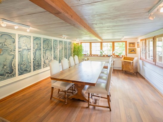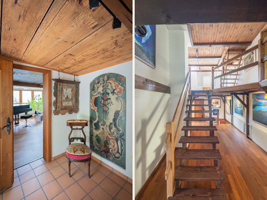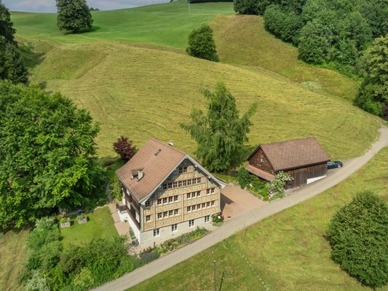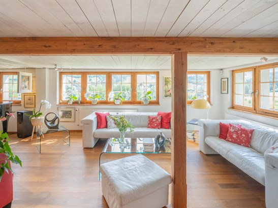 Nestled in the gentle rolling hills of St. Peterzell, the charming residence “Sonnental” offers a spacious floor plan of approximately 386.57 m² and features 11 rooms, combining generous living space with historic character. The peaceful rural setting provides pure relaxation with plenty of room for family, nature, and creative uses. The generous garden, sunny terrace, and barn create a unique ambiance for those who value space and individuality. Thanks to a separate entrance, the additional office is ideal for working from home or quiet creative pursuits. The living area’s fireplace adds warmth and coziness on cooler days. Despite its idyllic location, public transport is easily accessible. Perfect for families, entrepreneurs, or anyone seeking a distinctive home in a natural setting – whether as a primary residence or a second home.
