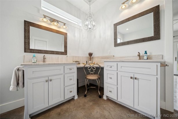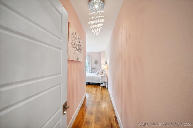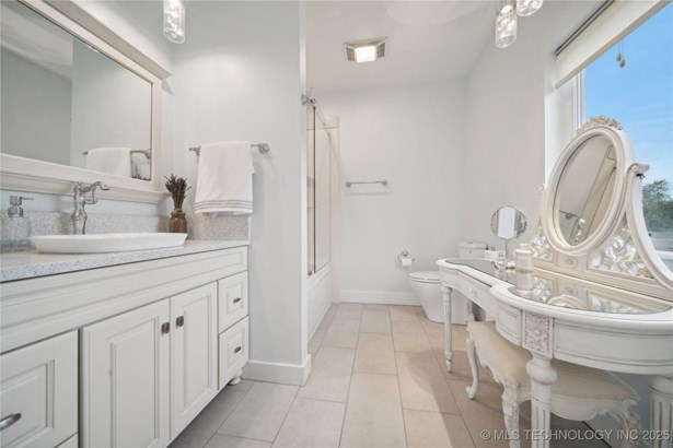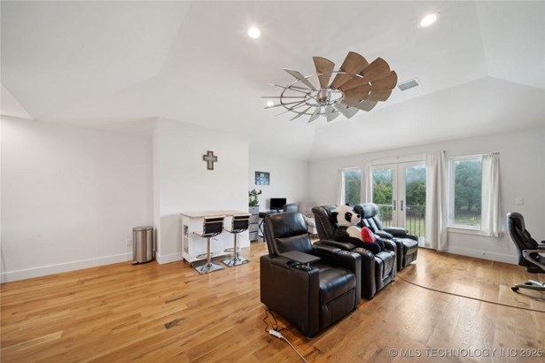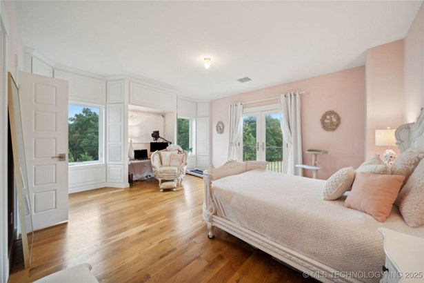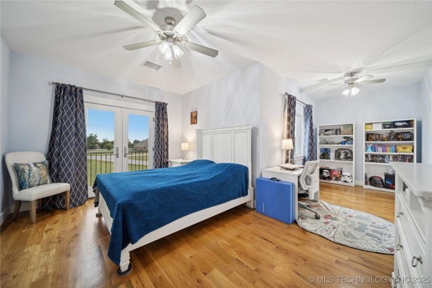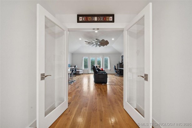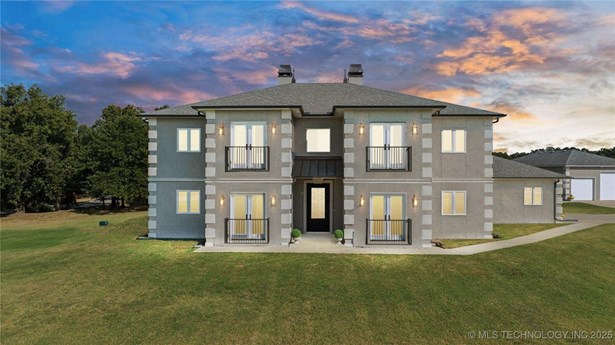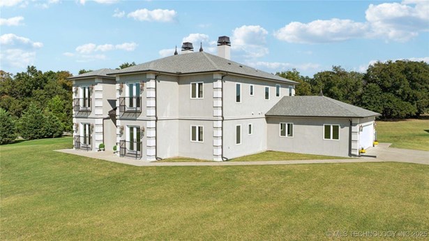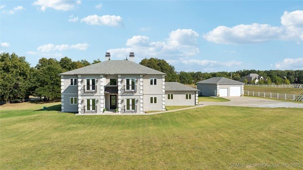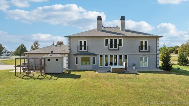 Step into this European inspired custom built home and shop located on 2.1 +/- acre lot in Broken Arrow's Blue Springs addition! A well thought out plan with attention to detail including a stunning two story entryway with two room located off the front; perfect for a study and sitting room. The welcoming living room with fireplace gives private views from the wall of windows providing perfect natural light. Come see the custom kitchen with a large island, granite, spacious eating area and a Viking 5 burner cooktop that's perfect for entertaining. The downstairs has sealed concrete floors and the upstairs features white oak hard woods for easy functionality. More charming features include: 2 bedrooms down, hobby room, tv/flex room, game room with a mini kitchen and 5 spacious bedrooms all with private baths and walk in closets. Also included on the property is a 2800sf (30x50) shop with three overhead doors and one side entry door. Both home and shop exterior walls are built with 2x6, interior walls 2x4, post tension slab on house & shop, the driveway is Rebar with tighter reinforced Rebar on the larger overhead garage door side.500-gallon owned propane tank that is dual system heat pump and electric when not using propane. Geo-spring hot water tank piped with gas converter from propane to gas and a circulation pump installed. The home also has a thermostat-regulated humidifier. The outdoor pet run can be easily converted to a chicken coop or removed. The backyard has endless possibilities with the hot tub and inviting yard ready for your personalization.