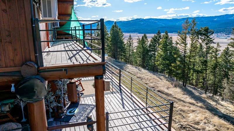 Motivated seller now offering seller financing! $750k down, carry the rest for 5 years at 5% interest only! Reapply every year to show proof! Discover the Montana mountain charm with this custom log home on 20 parked-out acres overlooking the breathtaking Flathead Valley. Built with full timber construction, this home showcases craftsmanship and strength, featuring a covered wrap-around porch ideal for taking in the panoramic views. Inside, you'll find a warm and inviting atmosphere with two wood-burning stoves and thoughtful rustic details. The primary suite offers a private retreat, complete with a balcony to savor sunrises and sunsets. This property is securely equipped with bulletproof doors, screens, and windows-providing peace of mind. An upgraded well ensures reliable water access. Outdoor enthusiasts will love the hot and cold outdoor shower, perfect after a day of hunting on your own property, and the greenhouse for year-round gardening.