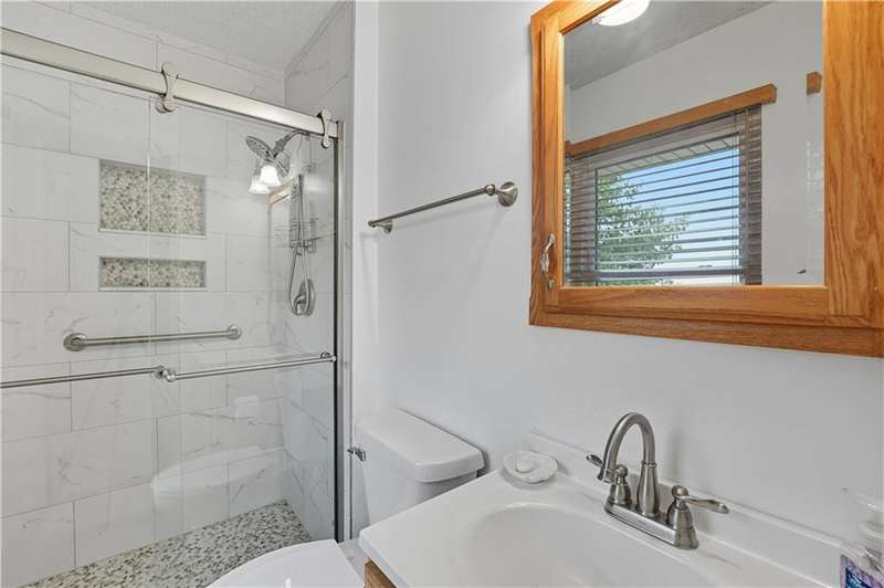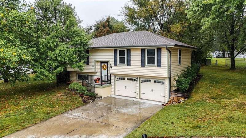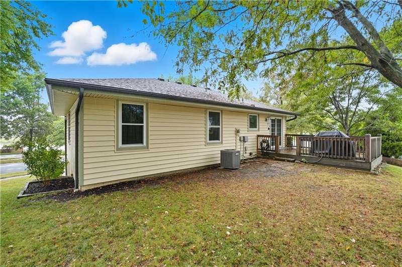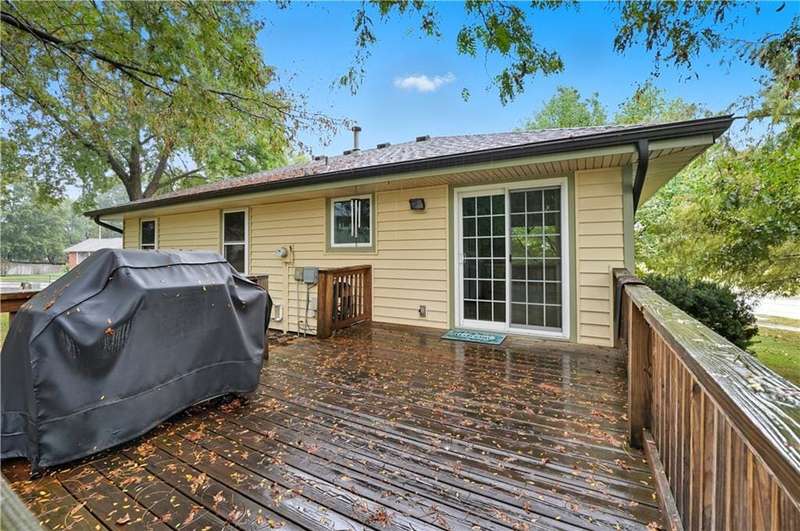 Maintenance-free vinyl siding and a level driveway welcome you to this move-in ready home! Enjoy a treed yard and wood deck perfect for outdoor living. Inside, the main floor features an open entry, living and dining rooms with beautiful wood floors, plus two updated baths showcasing stunning tile showers with glass doors. The newly finished lower level offers a full bath and walk-in closetideal for a guest suite, home office, or additional living space. Excellent location near schools, shopping, and freeways, just minutes from downtown and KCI Airport.