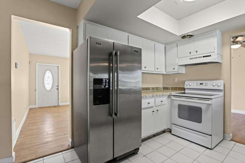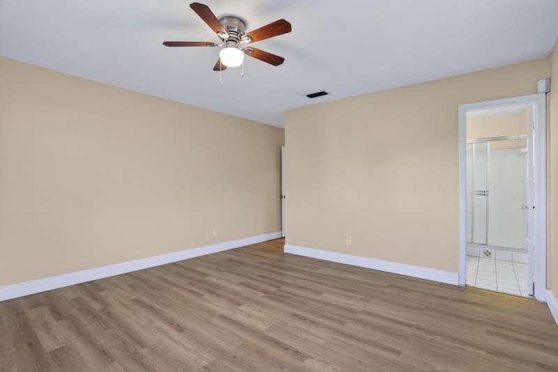 Discover the charm of this delightful 2-bedroom, 2-bathroom home, perfectly situated on a spacious corner lot with a privacy fence. Inside, you'll find a versatile bonus room ideal for a den or home office, along with a generous Florida room where you can unwind while enjoying views of the lush backyard and tranquil waterway. Freshly painted inside and out, this home features updated travertine kitchen countertops, four new ceiling fans, and new vinyl flooring in both bedrooms, offering comfort and style throughout. Ready to move-in. Located in this vibrant 55+ community, you'll enjoy access to a clubhouse, pool, fitness room, and more all just minutes from shopping and dining.