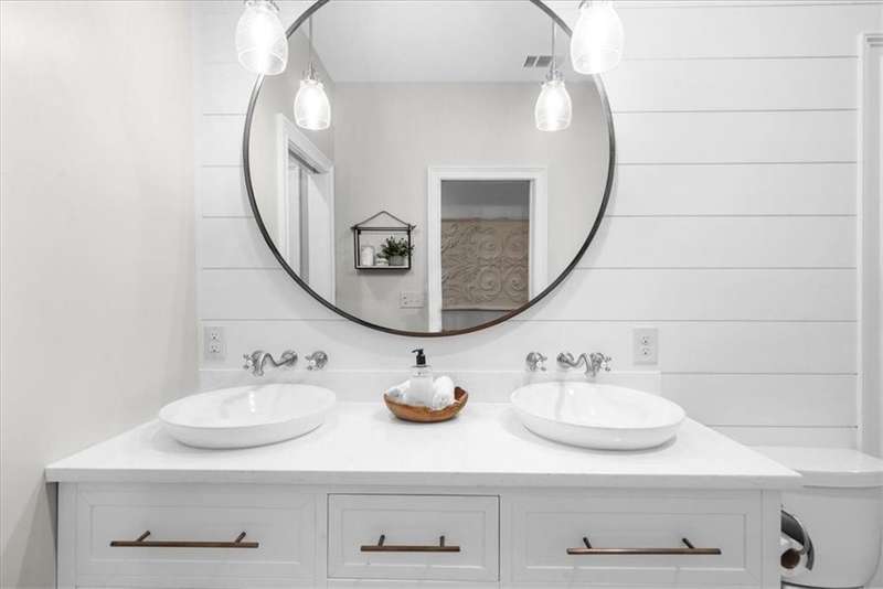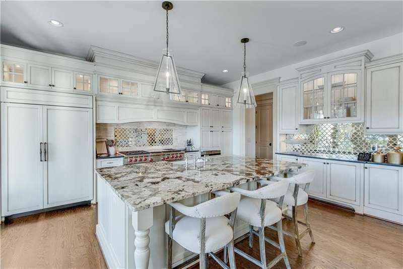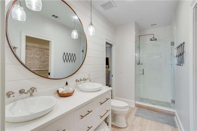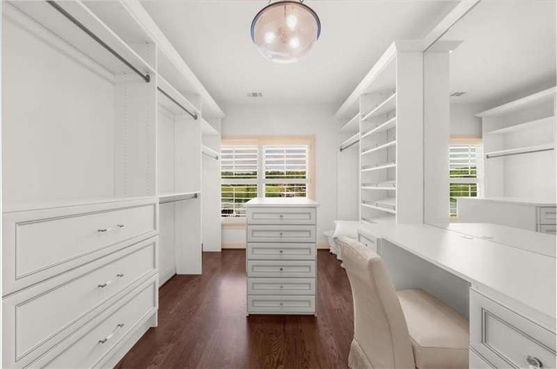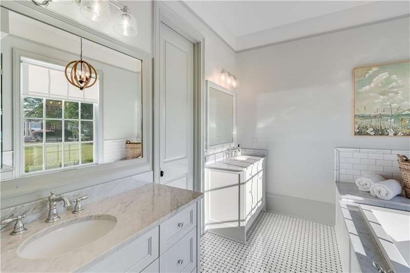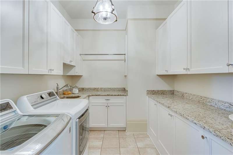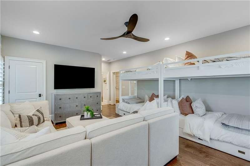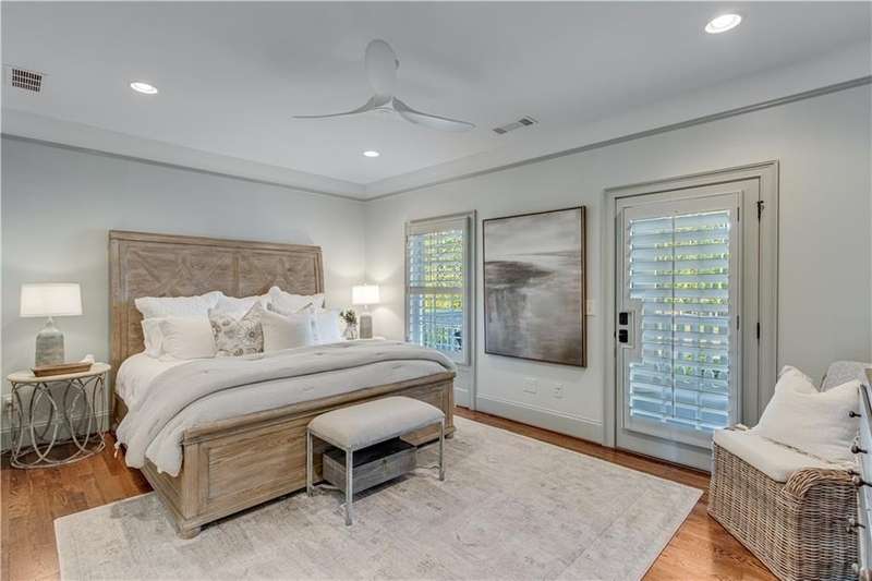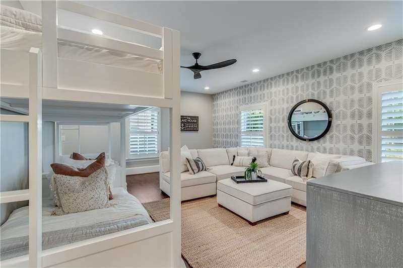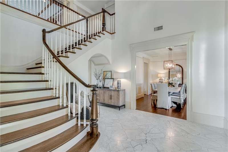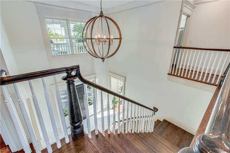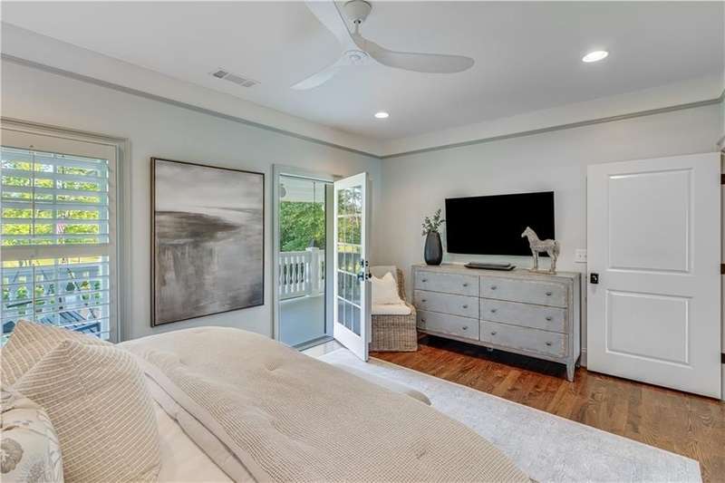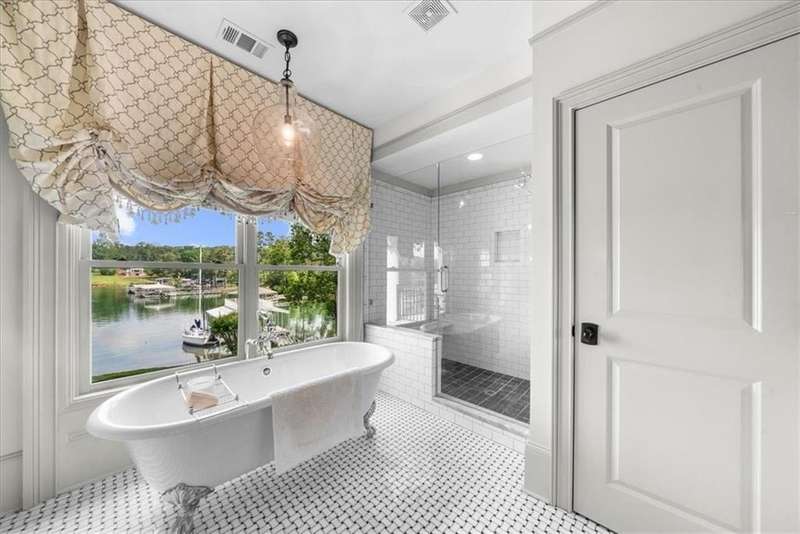 Southern coastal living meets lakefront luxury in this spectacular gated home on Lake Lanier. Live the lifestyle you've been dreaming of! Situated on a quiet peninsula street in the sought-after Six Mile Creek area, this one-of-a-kind property offers 270-degree stunning water views and a rare, level, grass-to-water lot. The CORPS line is IN the water, allowing full use of the fenced backyard right to the beautiful rip rap shoreline. Enjoy over 1,900 square feet of covered outdoor living across four spacious covered porches, with breathtaking sunrises or sunsets from every room. French doors in every space, including ensuite bedrooms, open to covered verandas for seamless indoor-outdoor living. Just steps from the home, a private 32'x32' twin-slip dock with party deck awaits your boats and jet skis! Equipped with a boat lift, jet ski ports, and irrigation pump for irrigating to the yard, making lake life easy. Entertain or relax from the upper party deck enjoying nightly sunsets. Inside, the home features a grand two-story marble foyer, soaring ceilings, hardwood floors, detailed millwork, and updated lighting. The main level includes a formal dining room, home office or media room, and an open-concept great room with gas fireplace that flows into a chef's kitchen with a large island, Wolf professional range, and SubZero refrigerator. French doors lead to a covered porch with automatic remote control screens. There are two primary suites, one on the main level and one upstairs-plus three additional private ensuites, a guest suite, and a spacious bonus/bunk room share a full bath. A gathering room with wet bar and porch access is perfect for relaxing. Additional highlights: oversized garage with half bath, whole-house generator, security system with cameras, two tankless water heaters, foam insulation, natural gas, and Forsyth County senior property tax exemptions available at age 65.
