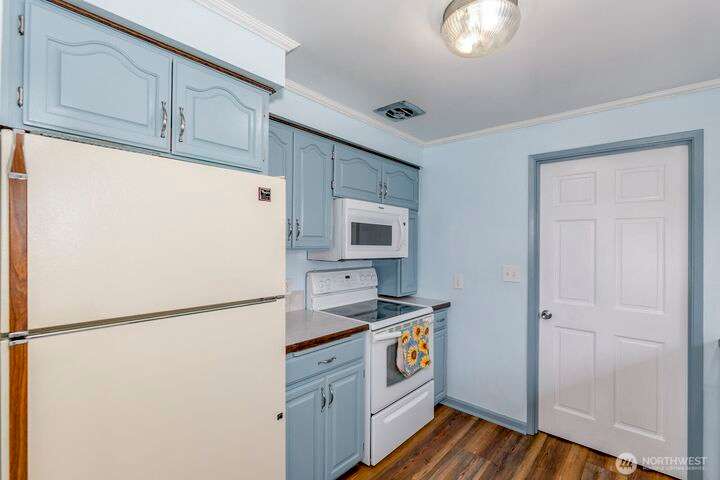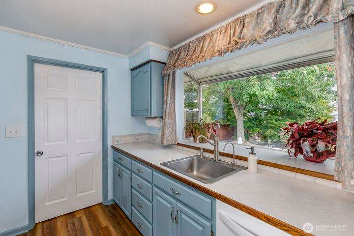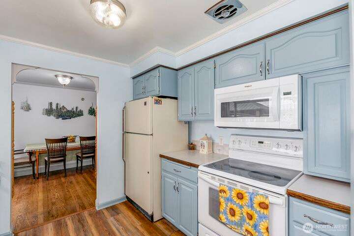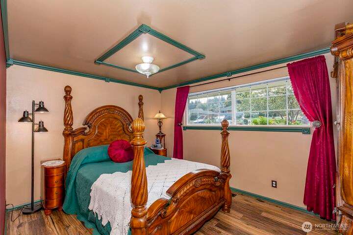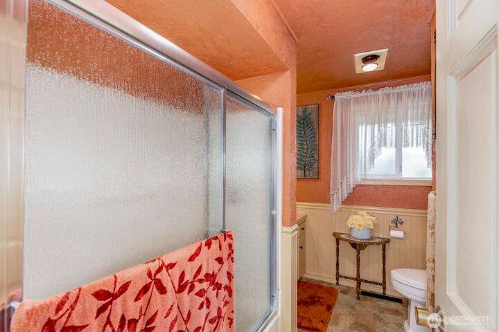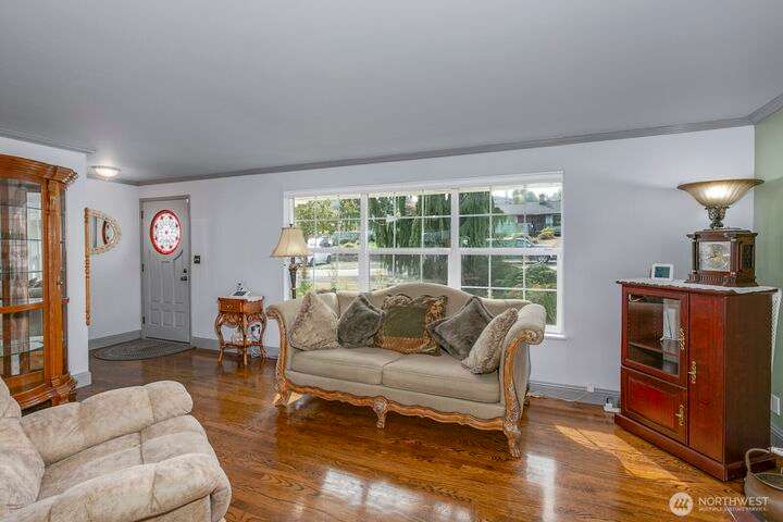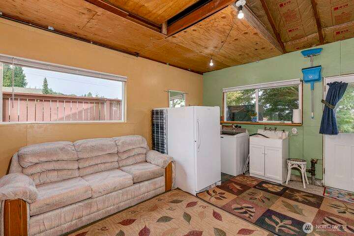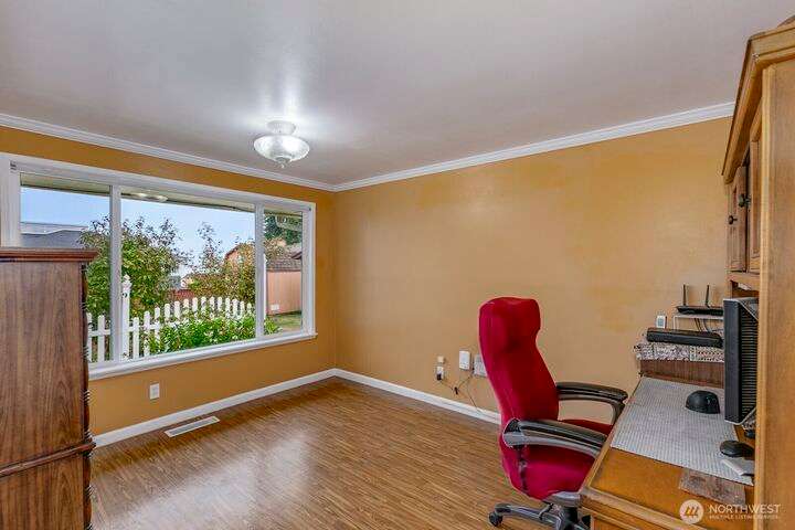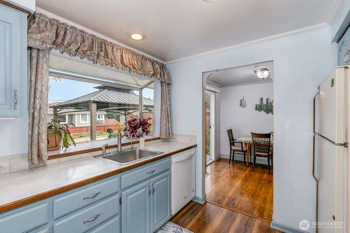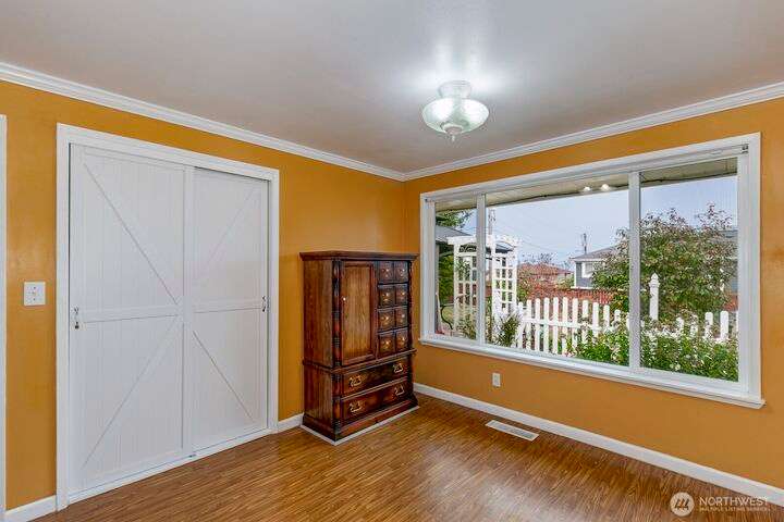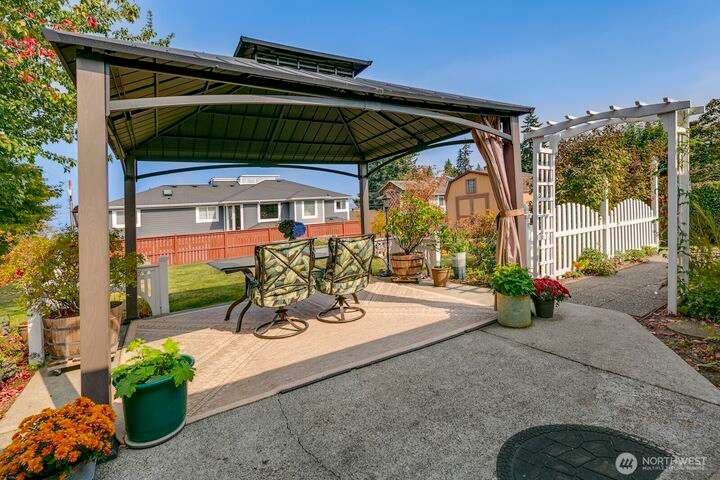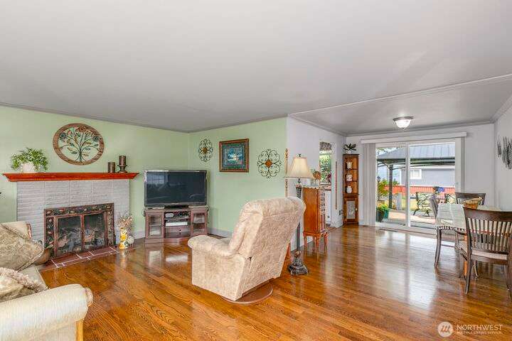 Fantastic opportunity off of Mukilteo Blvd (by Harborview Park)! This one-story home sits on a large level lot (.28 acres) that features a covered patio, two sheds, and some views of Puget Sound, the Olympic Mountains, and city fireworks! This quaint rambler offers two bedrooms, a full bathroom, gorgeous hardwood floors, a gas fireplace in the living room, and a kitchen with huge garden window that looks out over the expansive back yard. A great location - equidistant from Everett's exciting Waterfront Place and old-town Mukilteo's restaurants and beach. The garage has been partially finished and is great for an office or second TV room. Extra storage and RV parking. Don't miss out on this home!