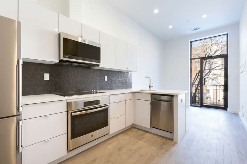 These premium, sunlit residences feature high ceilings, over-sized windows, light-grey oak hardwood flooring, deep closets, with central air & heat systems in each unit. The smartly laid out kitchens feature top of the line GE-Profile kitchen appliance packages, Grohe- fixtures, Caesar stone counter tops and modern chevron-patterned back-splashes.