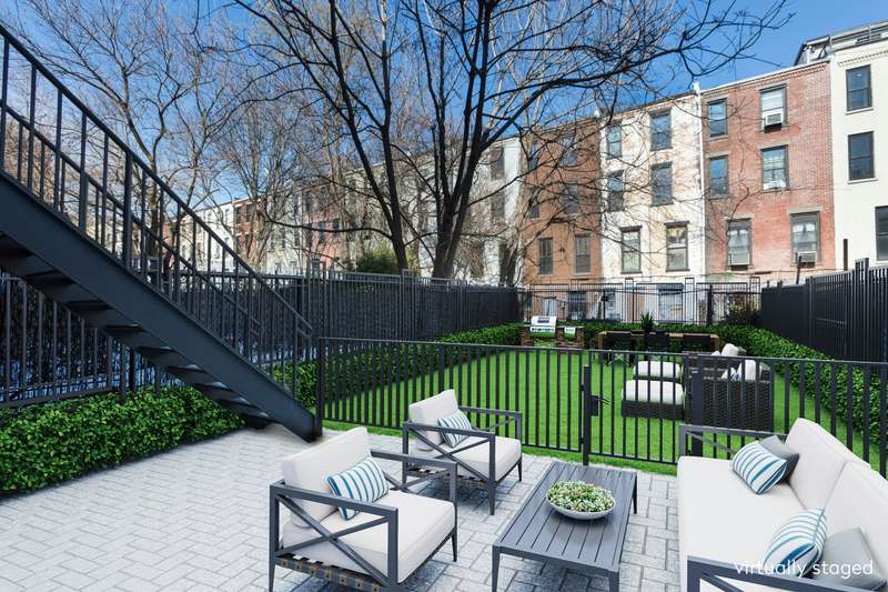 Immediate Move in. Showing by appointment only. This unit is the apartment dreams are made of- With the coveted brownstone living on a picture book tree lined street, location is everything. Gut renovated building - with washer/dryer on lower level. The private backyard space is perfect for entertaining and multiplies your living space.