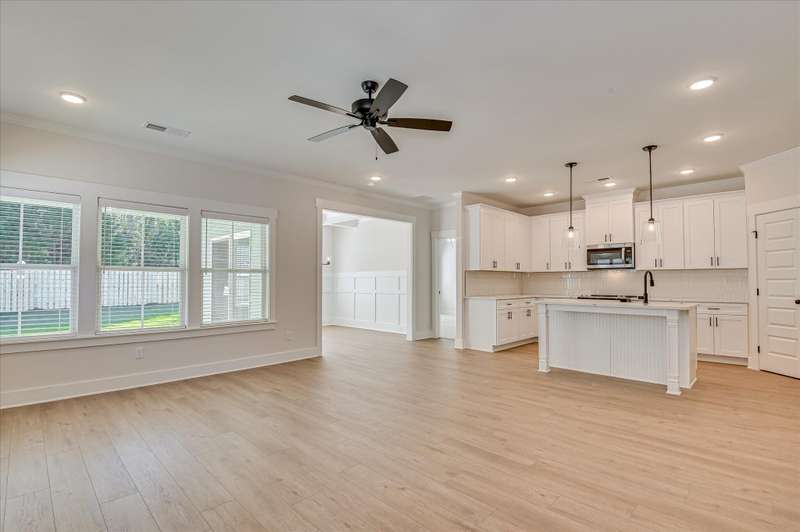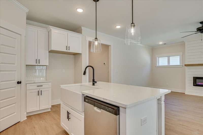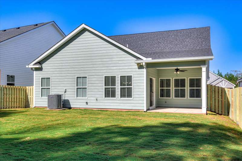 The Finlay plan by South Georgia Homes is a beautifully designed single-level home offering functional living with stylish finishes throughout. Nestled on a homesite that backs up to green space, this 3-bedroom, 2-bath home delivers comfort, convenience, and charm in every detail. Step inside to find durable LVP flooring flowing through the foyer, living room, kitchen, and dining area. The open-concept living room is filled with natural light and connects to a gourmet kitchen featuring granite countertops, a trendy backsplash, stainless steel appliances, and luxury lighting fixtures. Perfect for both entertaining and everyday living. The spacious owner's suite is a true retreat, complete with a spa-inspired ensuite bath featuring his and her vanities, a soaking tub, and a separate walk-in shower. Two additional bedrooms share a full hall bath, ideal for guests or family. Enjoy peaceful mornings or relaxing evenings on the covered front and back porches, overlooking a meticulously landscaped yard with a full irrigation system for easy maintenance. Located in The Sanctuary, a thoughtfully planned community offering a community garden, walking trail, playground, sidewalks, and street lighting, you'll enjoy both comfort and connection. Conveniently situated near shopping, dining, multiple parks, medical facilities, and SRS, this home offers the lifestyle you've been looking for. Don't miss your chance to own this brand-new gem—schedule your private tour today!