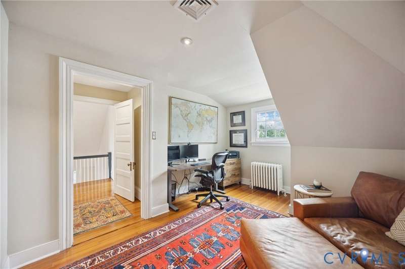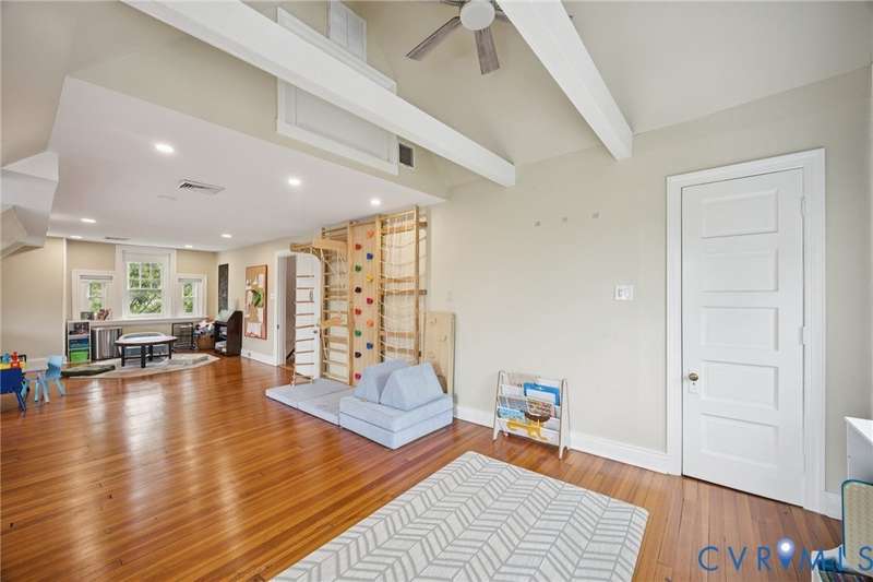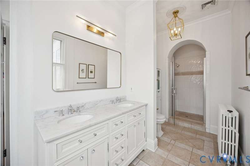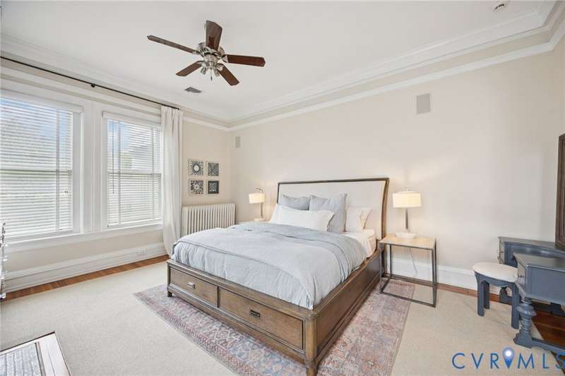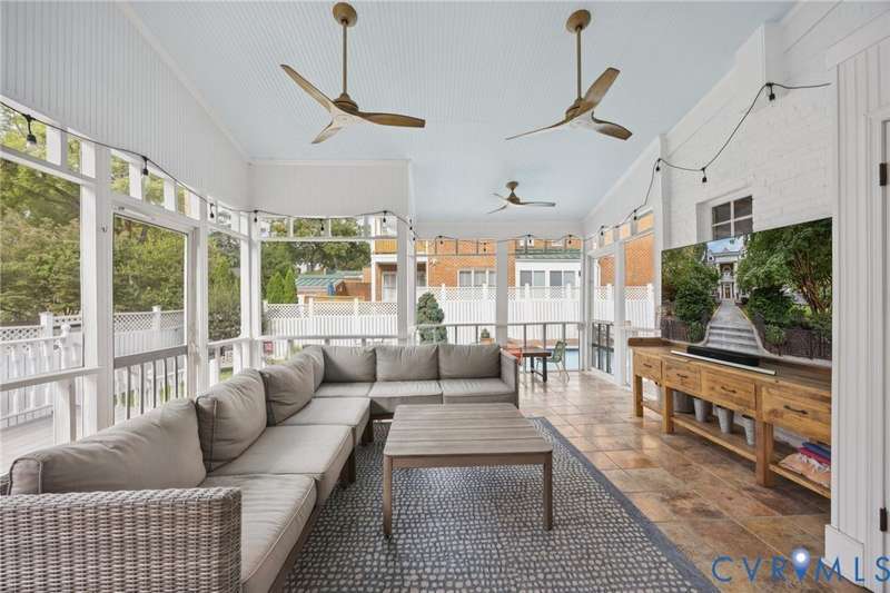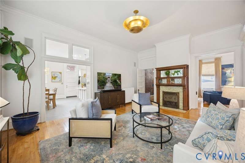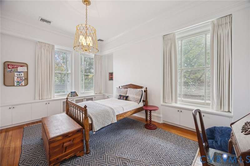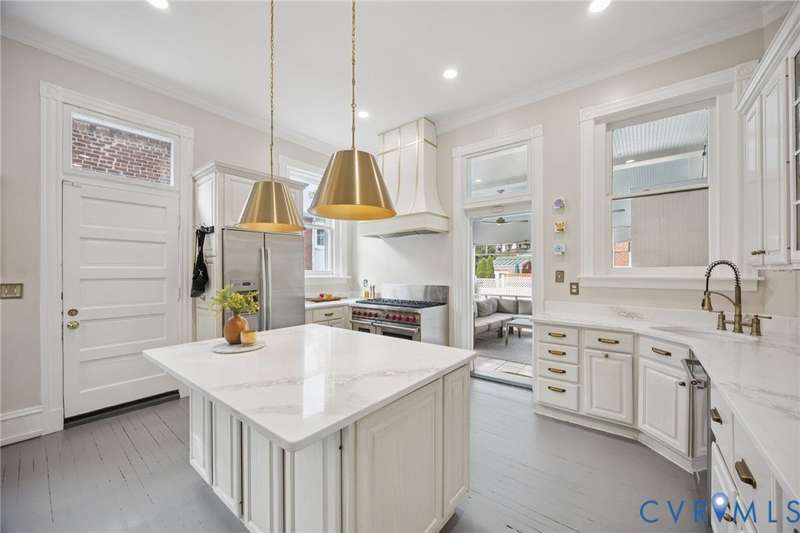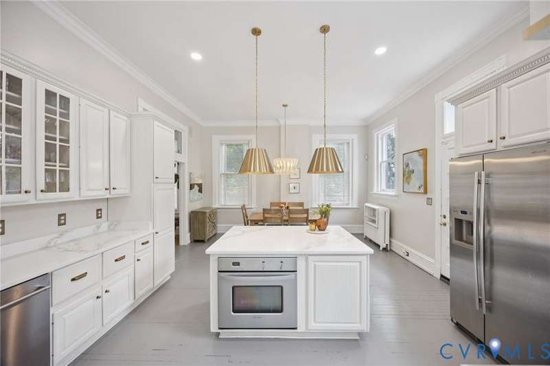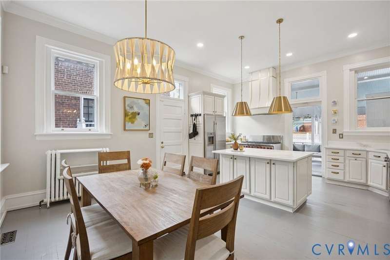 This stunning Wiley Anderson-designed Classic Revival historic home blends timeless architecture with luxurious modern updates, offering graciously scaled rooms, stately columns and exquisite millwork throughout. A grand entry and center hall welcome you into oversized formal and informal living spaces, ideal for elegant entertaining and casual living. The spacious family room opens to a large, updated eat-in kitchen featuring quartz countertops, a center island, stainless appliances, Wolf range with professional hood and a spacious breakfast area. The kitchen opens to an expansive screened porch overlooking a private yard with an in-ground Gunite pool with retractable safety cover. Upstairs, the grand staircase leads to a luxurious primary suite with a walk-in closet and an updated bath with double vanity. Three additional bedrooms with large closets, two renovated full baths, a laundry room and a sun-filled studio or office complete the second level. The third floor boasts a fifth bedroom, full bath and a bright, airy rec room with tall ceilings. A detached guest or carriage house offers a separate retreat with its own bedroom, bathroom, kitchenette and living room. Set on a beautifully manicured lot with mature landscaping, the property includes two separate flat green lawns ideal for play or garden space and offers potential for off-street parking accessed via a private alley. Enjoy the walkability to the VMFA, Carytown and numerous great restaurants and coffee shops. A rare opportunity to own an architecturally significant home that effortlessly combines classic elegance with everyday comfort.