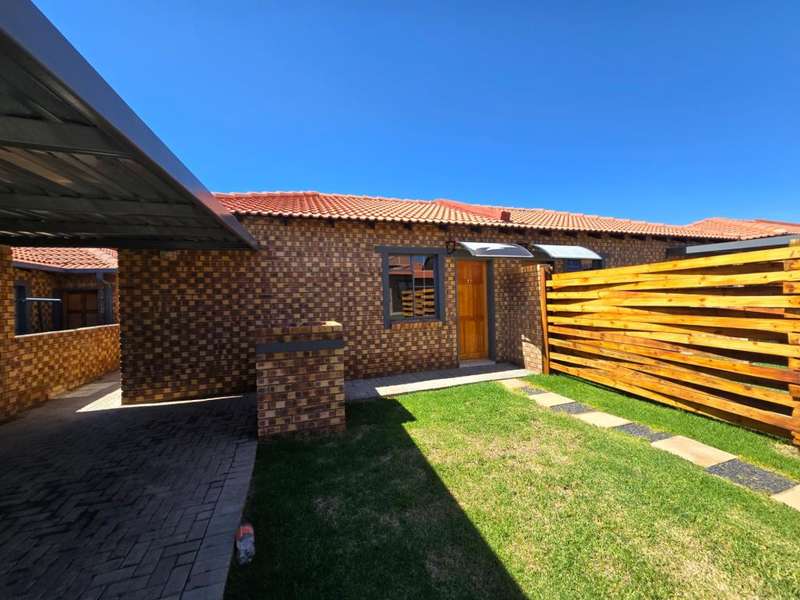 Modern 2 Bedroom Townhouse in Secure Complex TYPE 14 Welcome to this stunning brand-new 2 bedroom townhouse, perfectly situated in a secure lock-up-and-go complex. This modern gem offers the ultimate in convenience, comfort, and style. Exterior Features: - Single carport for secure parking - Outside braai area for entertaining - Neat and cute garden in front and paved backyard - Tarred and illuminated roadways within the complex Interior Features: - Spacious living area with open-plan kitchen - Fitted kitchen with electric hob and oven, and ample cupboard space - 2 bedrooms with fitted wall closets - Modern 1 family bathroom Complex Amenities: - Secure and gated complex with 24-hour surveillance security - Peaceful and private residence - Easy access to main road R580 and Evander town - Close proximity to amenities, including Sasol Garage and new shopping center Inclusive Offer: - Bond and transfer costs inclusive in the selling price Ideal For: - First-time buyers seeking a secure and convenient lifestyle - Families and couples desiring a peaceful and private residence - Investors looking for a rental income opportunity - Those seeking a modern, low-maintenance home Call the agent today to schedule a viewing and make this stunning townhouse your dream home!
