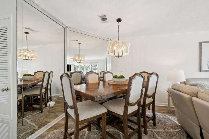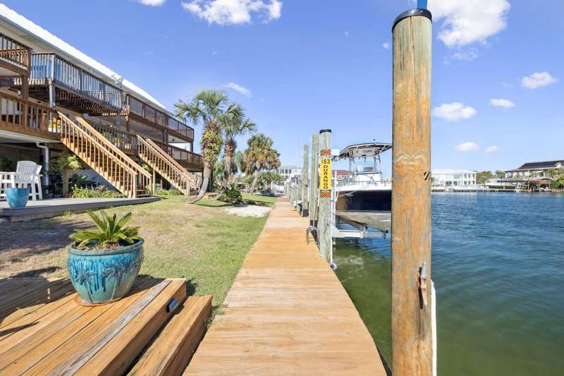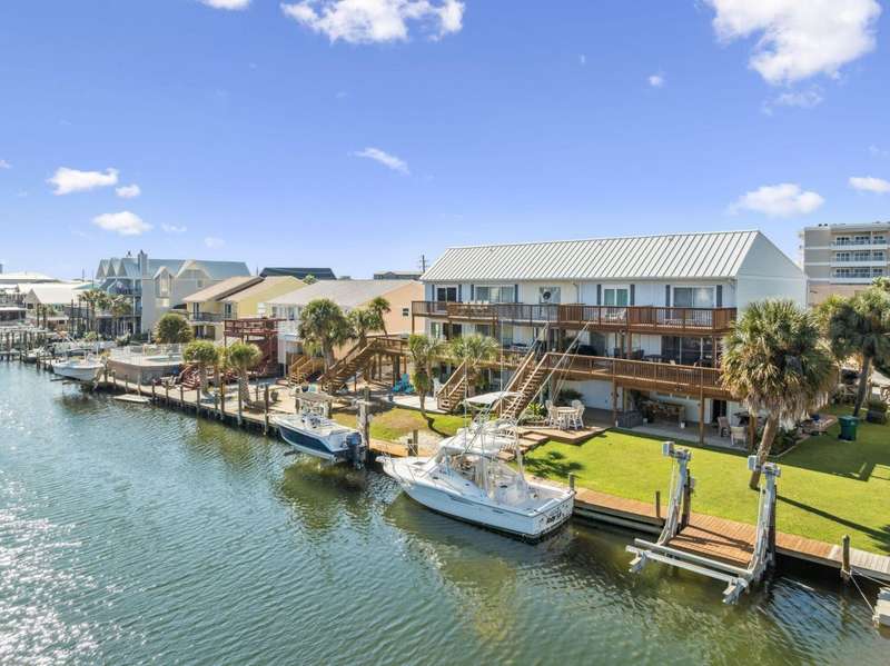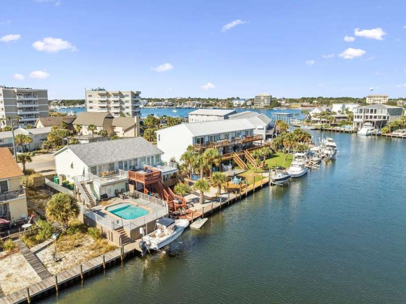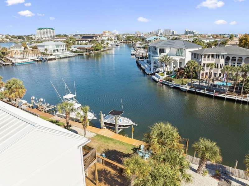 Nestled along the serene canals of Holiday Isle, this stunning three-story waterfront home offers the perfect blend of luxury, comfort, and the ultimate Destin lifestyle. Featuring 3 bedrooms, 3.5 bathrooms, and breathtaking harbor views from nearly every level, this residence captures coastal sophistication at its finest.The main level showcases an open-concept living area filled with natural light, complemented by a gourmet kitchen with high-end appliances, custom cabinetry, and a spacious island perfect for entertaining. Elegant finishes and a modern coastal design create a timeless atmosphere throughout the home. The primary suite offers a peaceful retreat with a private balcony, walk-in closet, and a spa-like bathroom featuring dual vanities, a soaking tub, and a separate shower. Each additional bedroom provides ample space, private baths, and beautiful views for family and guests alike.Step outside to enjoy true waterfront living with two expansive balconies, a 30-foot private dock. Whether relaxing with morning coffee or taking in sunset views, every moment here feels like vacation.Additional features include a garage, ample storage, and furnishings that convey, making this home completely move-in ready. Just minutes from Destin's white sand beaches, Harbor Boardwalk, fine dining, and world-class fishing, this property offers the perfect combination of tranquility and convenience.
