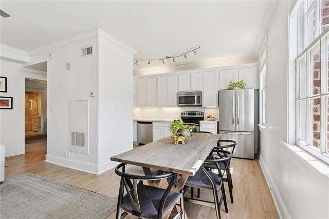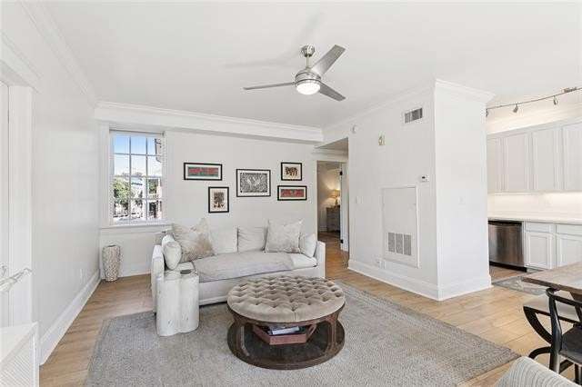 One of only two units in the association with windows on all sides, this unit provides plentiful natural light rarely found in condo living. Renovated to true turn key condition, this Lower Garden District condo is ready to move in and enjoy. Coliseum Square Park is across the street, which is known for its historic homes. Both bedrooms offer en suite bathrooms with the generous primary suite featuring a customized walk in closet and large laundry room with built in shelving and additional storage. The kitchen offers a proper pantry with undercarriage lighting and a new refrigerator. New HVAC recently installed. As you approach the unit’s entry door, the private storage closet is directly adjacent for ease of use. Green spaces with manicured landscaping surround the building, all behind the property’s iron gates, with al fresco lounging under the pergola awaits. One reserved and assigned parking space included behind electric entry gate. Close to Magazine St. shopping, nearby amenities such as Spyre Center with lap pool 1 block away, renowned Hotel St Vincent 2 blocks away, restaurants and public transport. Short distance to Saints games and parade routes as well! This association is warrantable for conventional financing. Welcome.