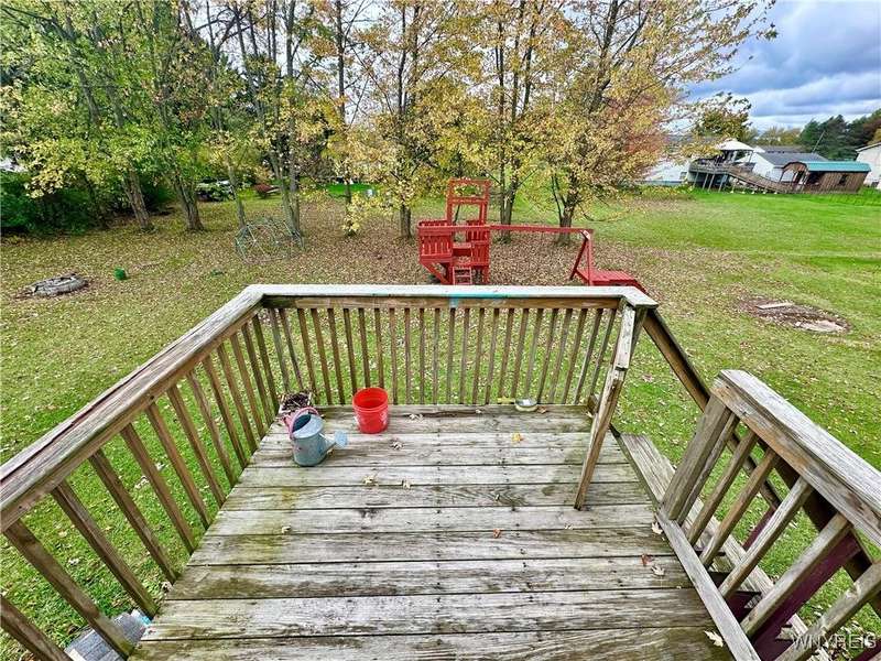 Welcome home to Cottage Court in Town of Lockport! Updates are abundant: maintenance free vinyl siding, new tear-off roof (2023), full basement drain tile (2019), luxury vinyl flooring (2020), carpets (2023), and hot water tank (2024). Raised ranch opens to inviting kitchen with living/dining room combo. Three spacious bedrooms with primary including dedicated full bathroom. Back door leads to deck overlooking your park-like backyard. Huge, dry basement may be converted to additional living space, bedroom/bathroom, whatever you like! Don't miss out on this fantastic opportunity!OFFERS DUE: MONDAY, NOVEMBER 3RD AT 1PM.