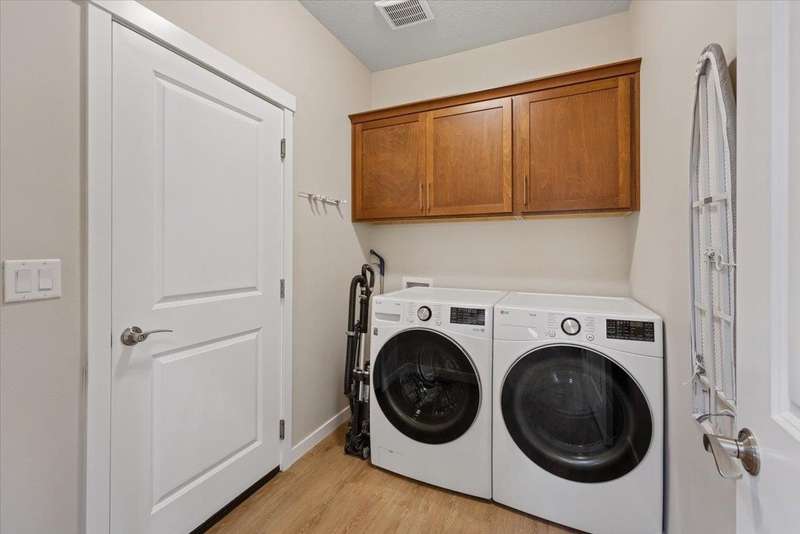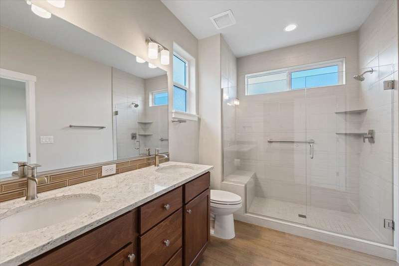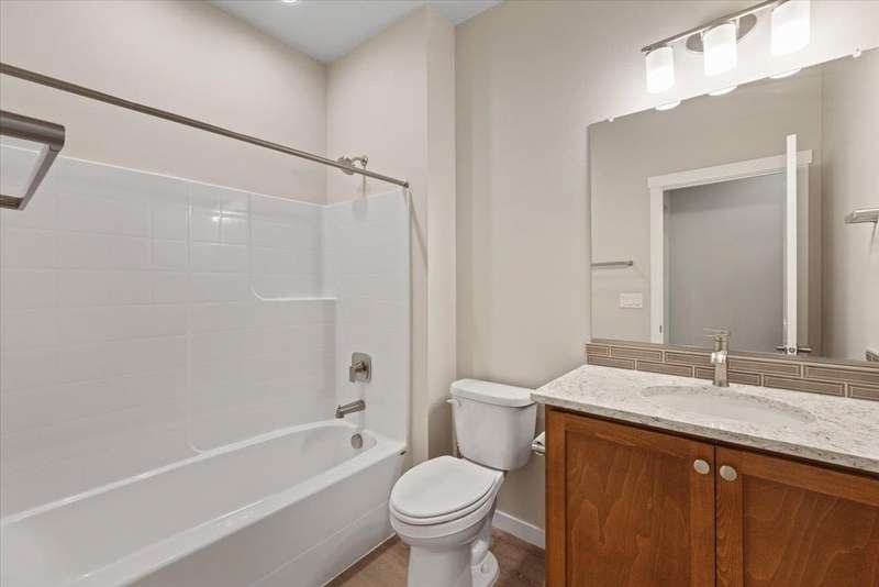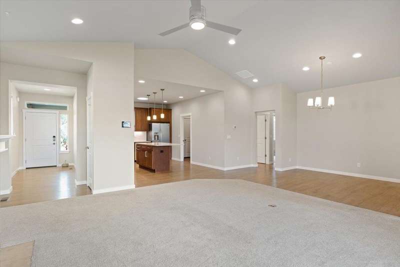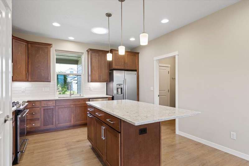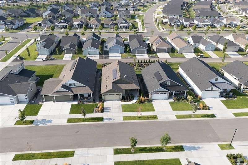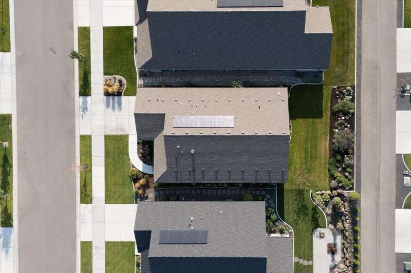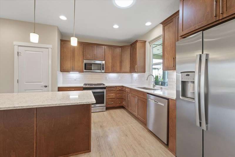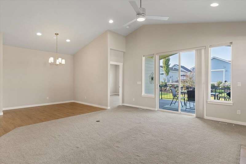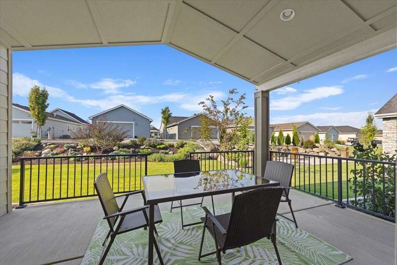 Why wait to build? Enjoy this nearly new Springfield rancher on a premium lot in the Trutina 55+ Community at Liberty Lake. The open layout features numerous upgrades including quartz countertops, upgraded cabinetry and plumbing fixtures, gas range, Solatube for extra light in kitchen, additional windows in garage and luxury vinyl plank flooring for easy care. The great room's gas fireplace creates a warm gathering space, while the primary suite offers a private retreat with a fully tiled mud-set shower, dual vanity, and generous closet. Enjoy morning coffee on the covered patio overlooking the beautifully landscaped yard. Solar panels add to the energy efficiency of this low maintenance home. Residents of Trutina enjoy access to a vibrant community lodge, an indoor saltwater pool, hot tub, fitness center, movie room, community kitchen, gathering spaces, pickleball, gardens, and a covered patio with river and trail views.