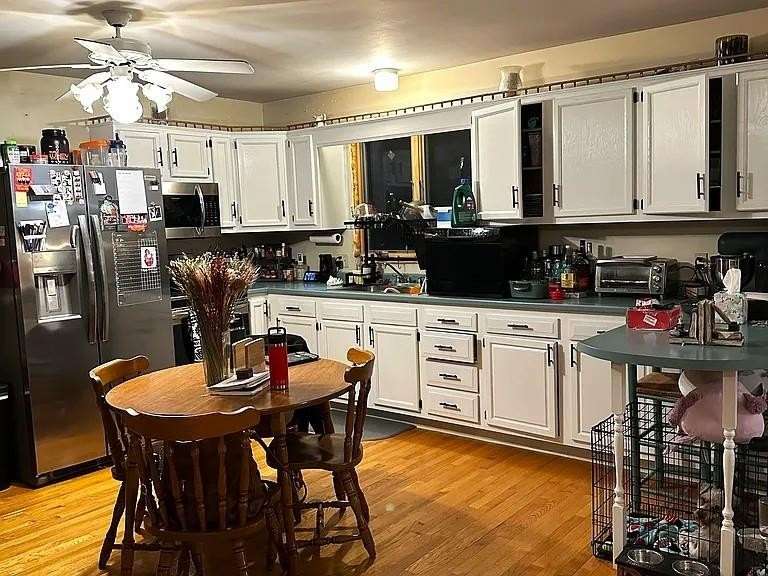 Versatile Colonial in prime Cumberland location walking distance to Tucker field and Cumberland High. Home features 2544 square feet of above grade living area. Full 1000 sq ft in-law with great room and 2-beds. Two newer kitchens with main house having custom cabinets and concrete countertops. Hardwoods/Laminate throughout, open floor plan, fireplace and pellet stove. Gas heat, vinyl sided exterior, new roof, huge shed and above ground pool complete the package. This home has the space and with 2-kitchens 5-beds 2 full baths and a half bath this home has the versatility for any buyers needs as an in-law, great space for adult kids and teenagers or even uncle Bob and Aunt Betty. Don't want the second kitchen then convert that space to a 28X16 master suite the possibilities are endless with over 2500 sq ft above grade.