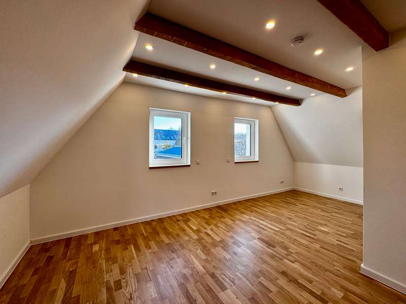 This beautiful, extensively renovated detached house at Rosenweg 11 combines the charm of its original architectural style from 1934 with state-of-the-art living comfort. On a generous plot of 560 m² and a living space of approx. 146 m², spread over 7 rooms, you can enjoy a harmonious combination of elegant furnishings, generous space and a fantastic garden. Rosenweg, a quiet cul-de-sac, ensures an absolutely relaxed living atmosphere. Entrance area - welcome home: As soon as you enter the house, you will feel the inviting elegance of the spacious entrance area. There is not only enough space for a checkroom here, but also a large checkroom area of its own to keep things tidy and organized. The combination of high-quality floor tiles, a modern downlight system and elegant design elements creates a stylish ambience. The tasteful staircase connects all three levels and is a real eye-catcher. First floor - living, cooking and enjoying: The open-plan living and dining area forms the heart of the house. Large, floor-to-ceiling patio doors flood the room with natural light, offer a fantastic view of the expansive garden and provide direct access to the spacious terrace - a perfect place to spend relaxing hours outdoors. The high-quality real wood parquet flooring creates a warm and inviting atmosphere. The kitchen is already fully prepared for the installation of a high-quality fitted kitchen with cooking island. All connections are available so that you can customize your dream kitchen. This spacious room design makes the kitchen a central meeting point for family and friends. The separate guest room is located in the entrance area on the first floor. This offers a variety of uses, whether for guests, as an office or as an additional room for individual needs. The luxurious daylight bathroom rounds off the first floor: it impresses with a glazed shower, a modern bathtub and elegant fittings - a real place to relax. Second floor - comfort for the whole family: The upper floor offers space and comfort for the whole family. There is a spacious master bedroom and two beautiful children's bedrooms. All rooms are fitted with high-quality real wood parquet flooring and offer a cozy atmosphere. The exposed wooden beams lend the rooms additional charm, while the characteristic mansard roof provides a special coziness. A modern guest WC with skylight completes the upper floor perfectly and provides additional comfort. Basement - practical and versatile: In the basement, you will find well thought-out and practical solutions. The spacious laundry room is equipped with a platform for washing machine and dryer - ideal for everyday needs. There is also a versatile hobby room and an additional room that is ideal as a home office, fitness room or for hobbies. Outdoor area - A garden for dreams: The spacious garden is an absolute highlight. With its size and design options, it is ideal for families who want an outdoor retreat. The large terrace, which directly adjoins the living area, invites you to spend relaxing hours. A garden shed creates additional storage space and the parking space right next to the house provides convenience. Experience this extraordinary home and be inspired by its elegance, fantastic location and diverse possibilities! Arrange a viewing appointment today Please only use the inquiry form to contact us quickly with a meaningful application for the apartment on offer. Due to the increased demand, please do not make any telephone calls. Thank you very much!