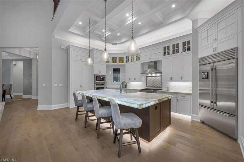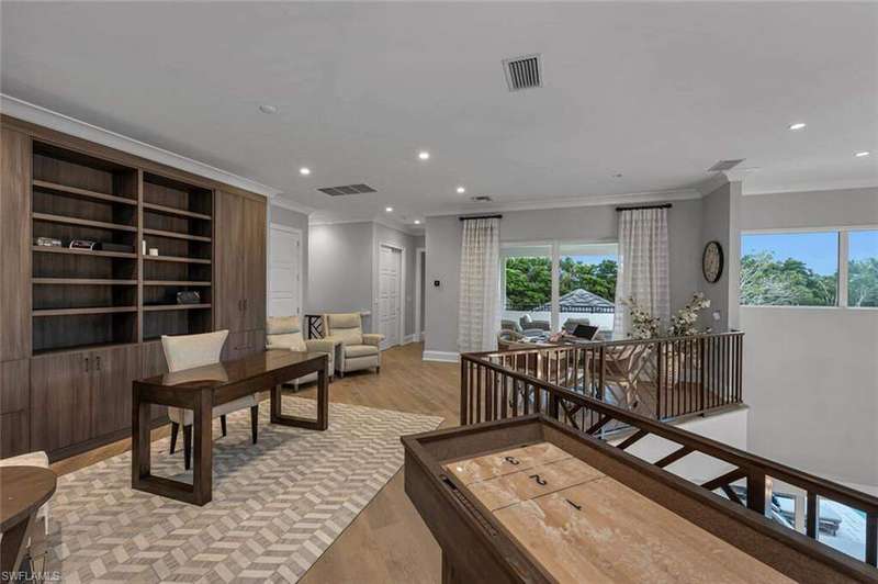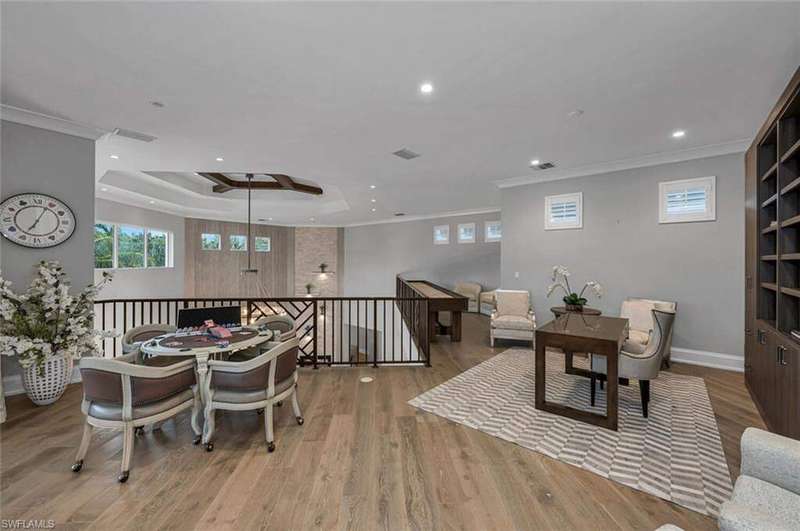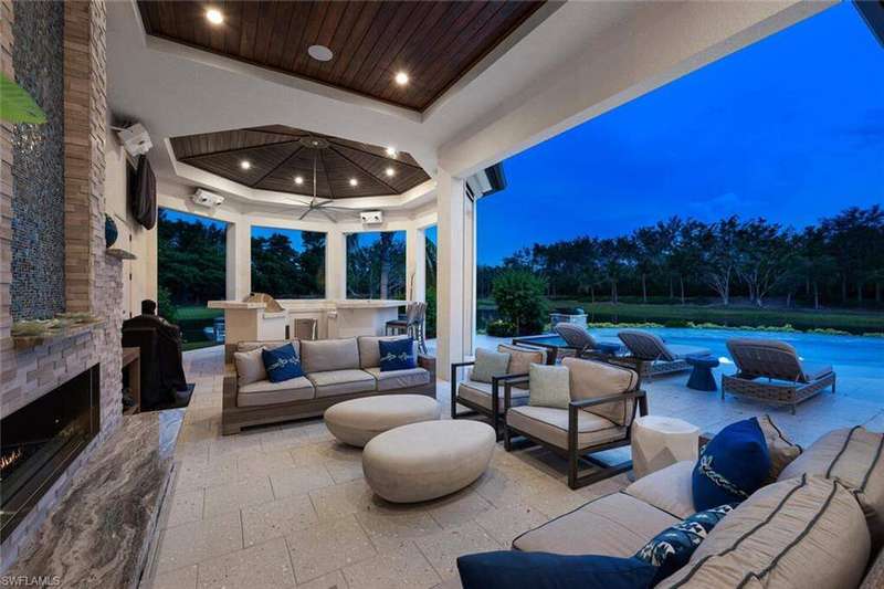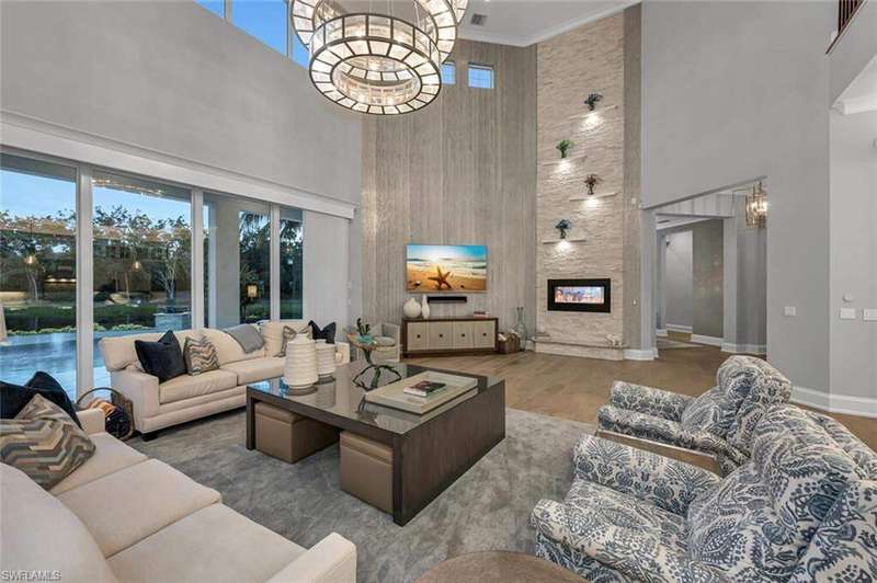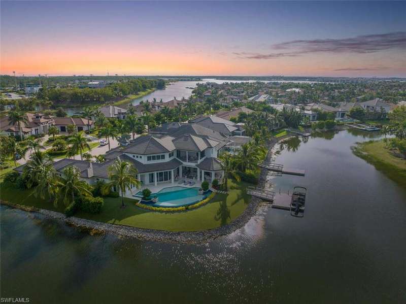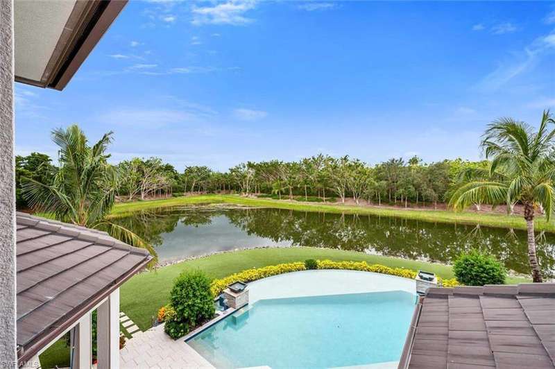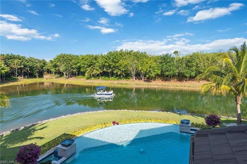 The ultimate waterfront lifestyle awaits in this exclusive Estate property with private dock in Miromar Lakes Beach & Golf Club. Perfectly designed on a private peninsula waterfront homesite, this magnificent 5-bedroom residence showcases exquisite architectural details. The centerpiece is a soaring, open-concept great room with grand chandelier & lighted 24-foot dual-sided linear gas fireplace. Design features include white oak wood flooring, tongue-and-groove and wood beam ceiling details, designer tile, open concept gourmet kitchen, butler's pantry, and back-up generator. The primary suite offers a gracious bath with dressing area, steam shower, 3 walk in closets including a hers dressing room and separate entry. The second-floor with elevator access includes a game room, en suite bedroom, and open-air balcony. The outdoor oasis offers living room, fireplace, cooling system, electric screens, fully turfed yard with sprinkler system, wrap-around bar with grill and resort-style saltwater infinity edge pool, spa, outdoor shower, private dock. Tesla charger, AC garages, and home gym which can be converted back to additional garage. This is the perfect property for a discerning buyer looking to immediately begin enjoying the Miromar Lakes lifestyle and its unparalleled waterfront living. As the only southwest Florida community with miles of beach, boating, golf, and resort-style amenities in one picturesque destination, it offers a truly remarkable lifestyle. Water-ski, paddle board, kayak, sail, or fish on the 700-acre freshwater lake, unwind at the wellness spa, play the Arthur Hills "Signature" championship golf course, hone your tennis, or pickleball skills, or simply relax in the dreamy beachfront cabanas. Located minutes from Southwest Florida International Airport, world-class beaches, shopping, and dining.